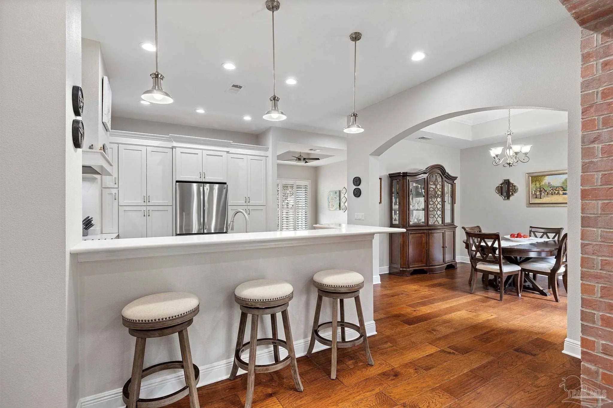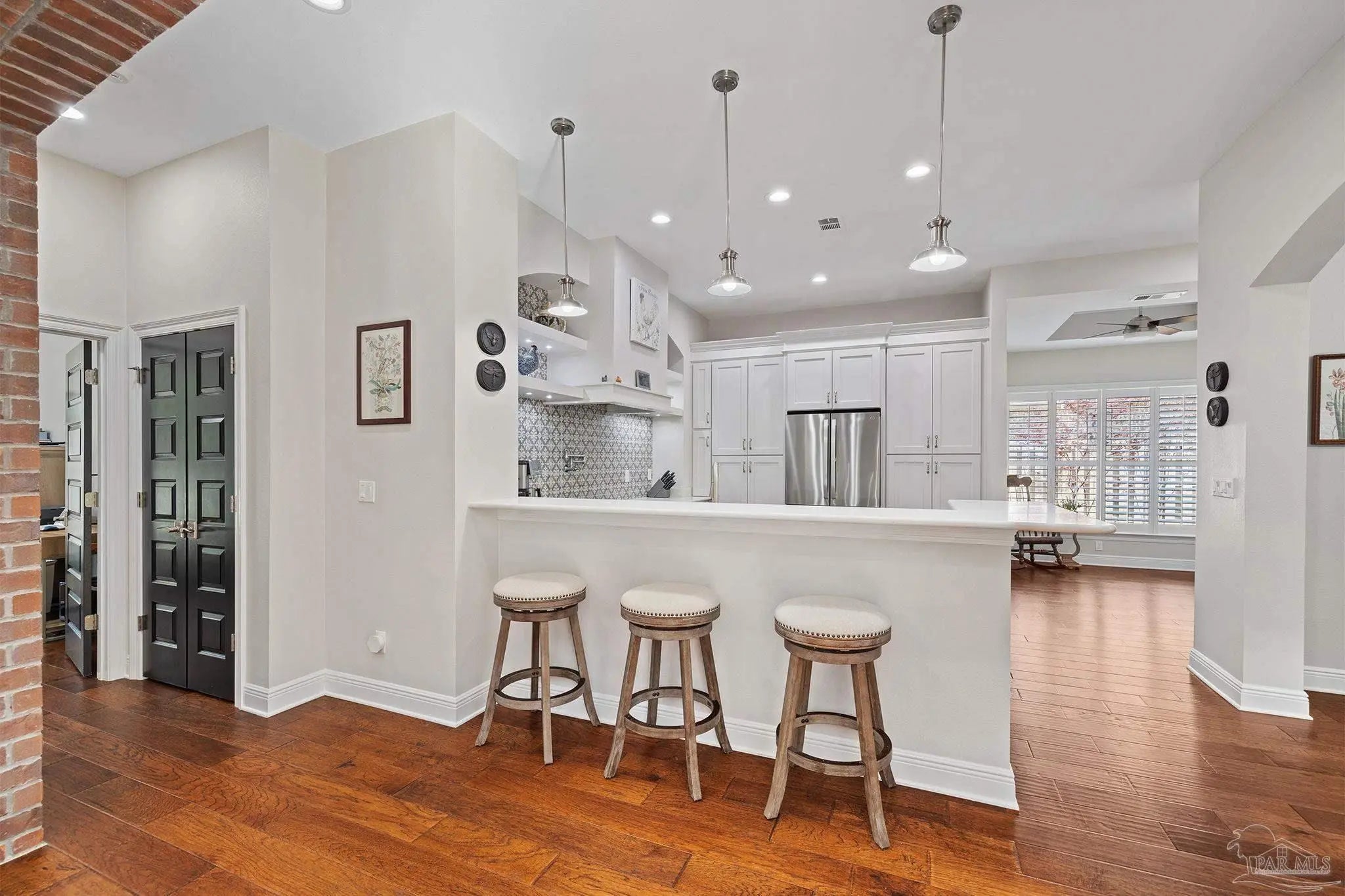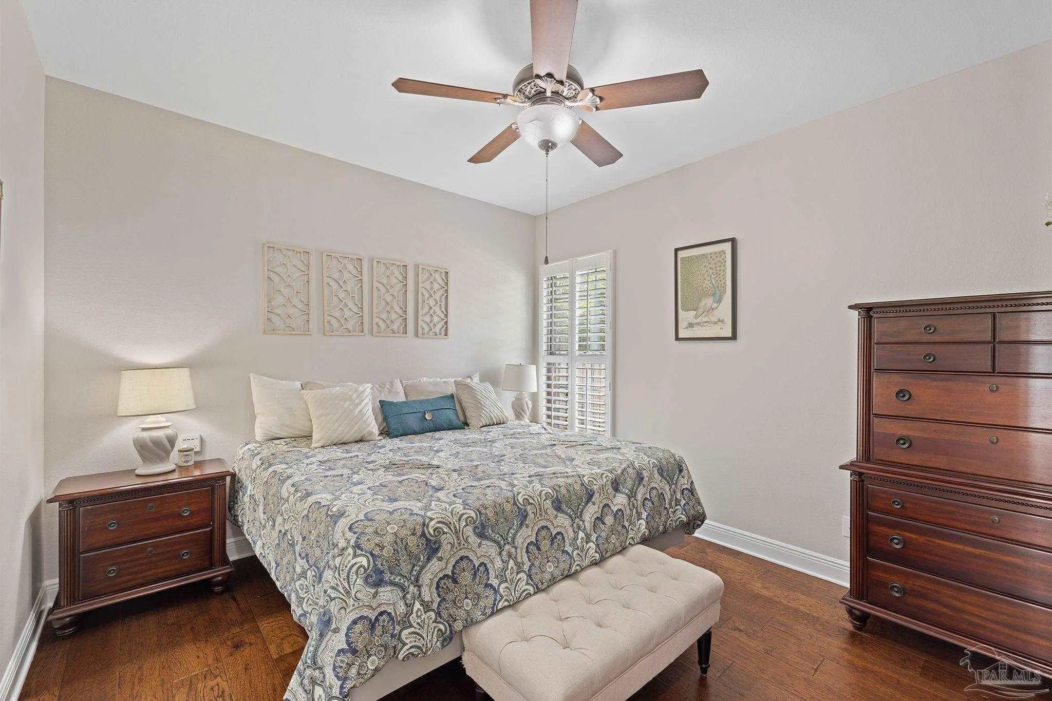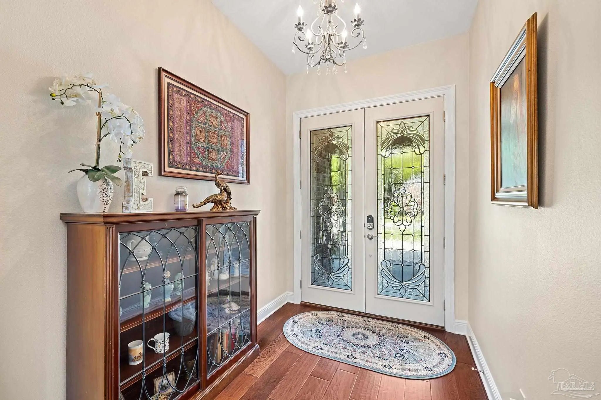 Stop the scroll! Rare opportunity to own a semi-custom masterpiece on a prime corner lot in Pensacola's premier gated community, Nature Trail. This 5-bedroom, 3-bathroom sanctuary blends high-end architectural detail with the peace of mind of a whole-house generator installed 2023 and HV/AC 2023. The Architectural Excellence of the Hardwood floors, soaring trayed ceilings, and elegant plantation shutters throughout give an interior WOW factor. The Designer Great Room features floor-to-ceiling large picture windows that frame a "park-like" view, anchored by a stunning brick accent wall and fireplace. The Chef’s Dream Kitchen is an open-concept layout featuring a massive entertaining island, NEW 2025 designer stainless appliances, formal dining, and a sunny breakfast nook. The Master Bedroom is a spacious retreat with trayed ceiling, double doors that lead out to the courtyard, while the master en-suite has heated floors and has been updated adding quartz counter tops, tile shower and custom linen cabinet. An updated Laundry Room with custom cabinetry and quartz countertops is a beautiful addition. Looking for Flex Space? A dedicated media/bonus room perfect for a home theater, gym, or executive office is sure to please. The outdoor courtyard lets you escape to a private, courtyard-style patio featuring an outdoor double-sided fireplace—the ultimate setting for coastal evenings. Situated on a manicured corner lot with a 3-car garage and a sprawling, scenic backyard gives you plenty of space and privacy. Nature Trail Lifestyle: Enjoy exclusive access to the 6,000 sq. ft. Lodge, resort-style pools, fitness center, tennis courts, and 400+ acres of hiking trails and seasonal family events. Move-in ready luxury with unmatched curb appeal. Schedule your private tour of 5917 Dahoon Dr. today!
