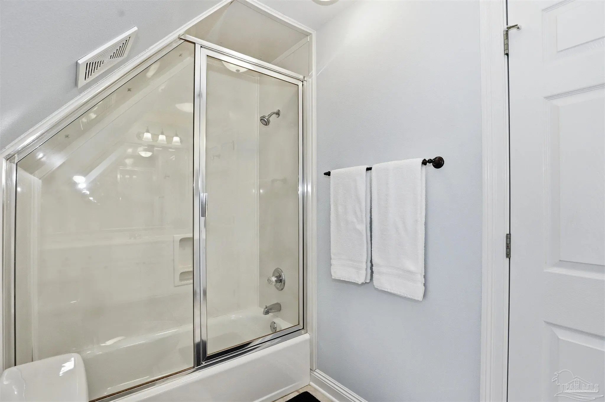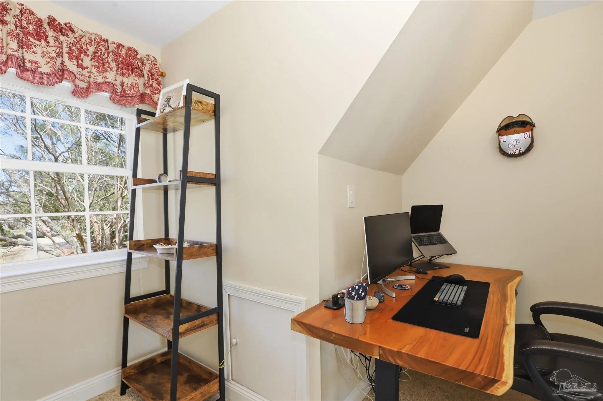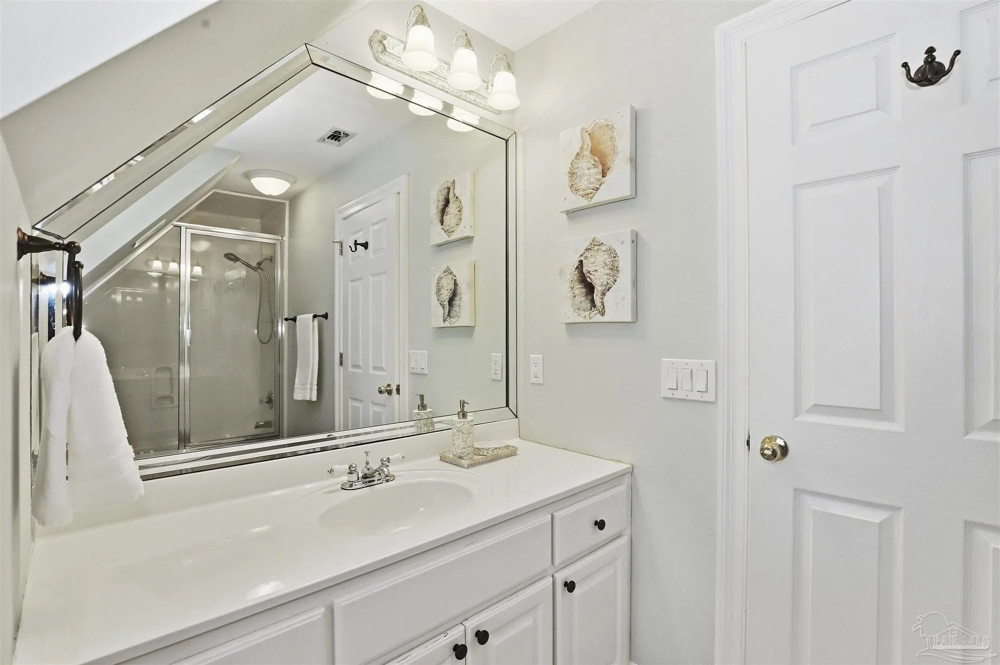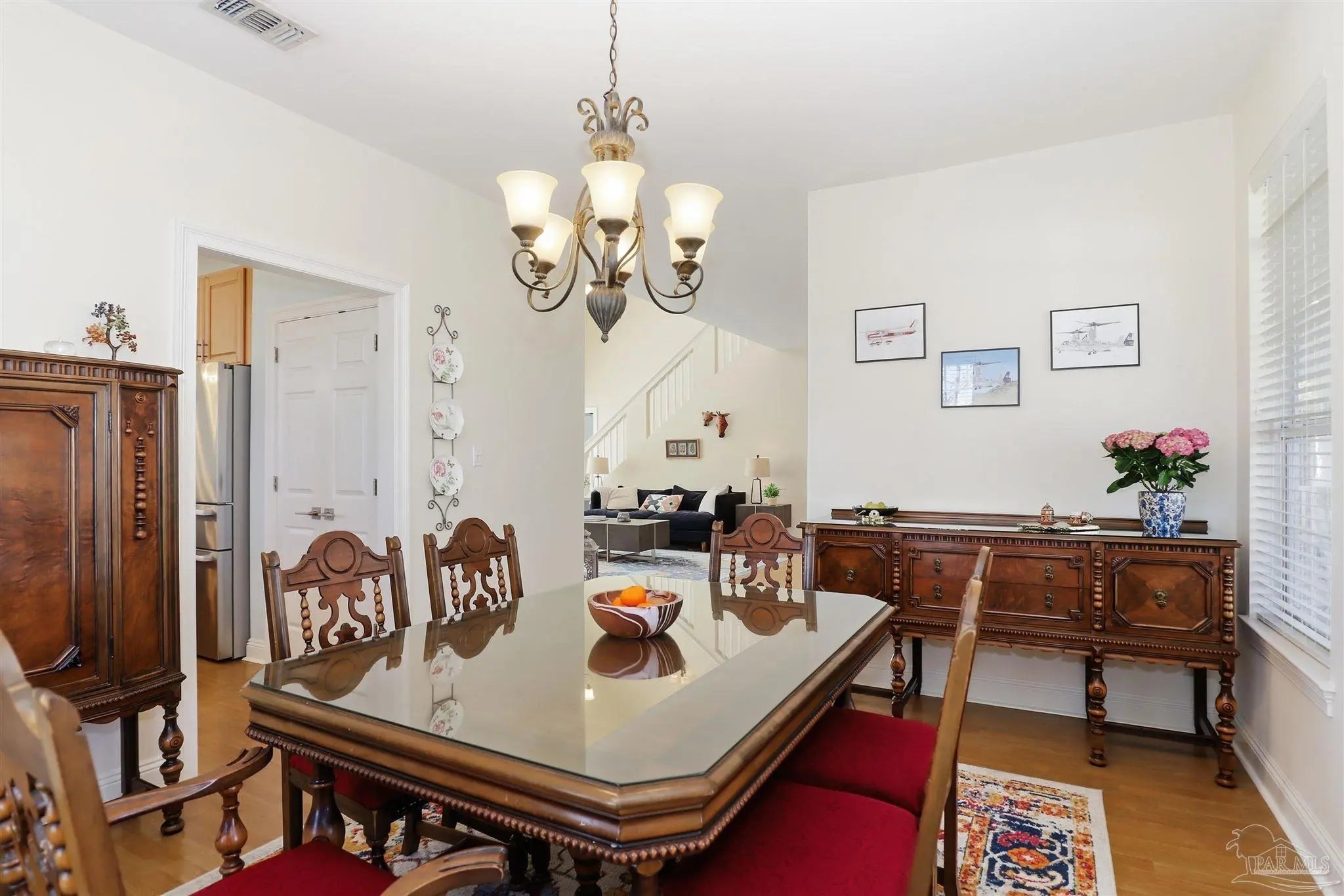 Updated Gulf Breeze Home. 3BR/3.5BA w/ gourmet kitchen, quartz countertops, pantry & gas cooktop. High ceilings, 0.32 acre lot & 2-car garage. Step into the welcoming foyer where you’ll find a convenient half bath and coat closet, ideal for guests. The dining room overlooks the covered front porch, while the living room features soaring two-story ceilings, built-in cabinetry, and a wood-burning fireplace, all overlooking the large open back deck. The beautifully updated kitchen offers a Bosch five-burner gas cooktop, farmhouse sink, stainless steel appliances including a Bosch refrigerator, built-in microwave, pantry, and a charming breakfast nook with bench seating. A hallway nearby leads to the oversized laundry room with utility sink and additional storage, as well as access to the two-car garage. The first-floor primary suite features two oversized closets and a well-appointed bath with double vanity, water closet, and custom walk-in shower. Upstairs, you’ll find two bedrooms each with ensuite bath along with a dedicated home office space. The fenced backyard includes a covered porch and open deck, perfect for relaxing. This home is located just blocks from the 55-acre Soundside Preserve with access to the Sound, offering a wonderful coastal lifestyle.