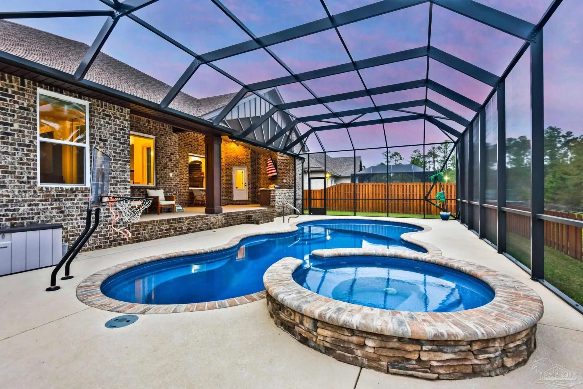- Heated, In Ground, Pool/Spa Combo, Salt Water, Screen Enclosure