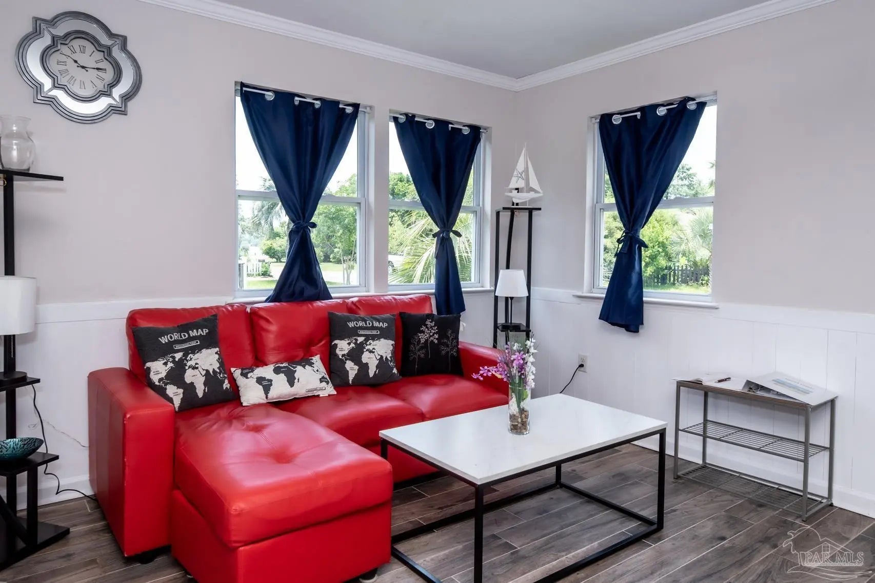 Fully Furnished! Welcome to this beautifully furnished 3-bedroom, 2-bath home, perfectly tailored for those who love a serene coastal lifestyle! Located just around the corner from the water, it’s the perfect spot to bring your kayak or paddleboard and enjoy outdoor adventures. This incredible move-in-ready home is filled with tasteful neutral colors, an abundance of natural light, and breathtaking water views that will captivate you. The meticulously maintained interior features a flowing split floor plan with brand-new wood-look tile throughout—no carpet anywhere! The stunning kitchen is a chef’s dream, complete with custom cabinets, quartz countertops and a full quartz backsplash, a farmhouse sink, and sleek stainless steel appliances. The master suite offers a private retreat with a spacious bath, featuring a walk-in shower, a large vanity, and plenty of closet space. Two additional bedrooms are located on the opposite side of the home, sharing a stylishly updated hall bath with a tiled shower and matching tile floors. Step outside to the spacious front deck, where you can relax with stunning water views and enjoy a front-row seat to the thrilling Blue Angels aerobatic demonstrations. The fully fenced backyard includes an outbuilding with a covered patio or carport and secure storage, perfect for all your gear and hobbies. This home is a true gem, offering comfort, style, and a lifestyle centered around the water. Don’t miss your chance to make it yours! Pets allowed with pet screening and owner approval only. Apply online. $75 App fee per adult, half off for active-duty military. Subject to credit check, background check, employment verification, and rental verification, and rental verification. CERTIFIED Funds!