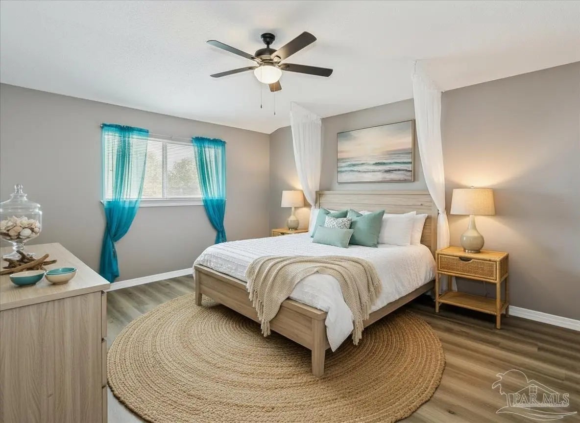 You’ll love this updated 2-bedroom, 2.5-bath townhome with ensuite baths in each bedroom, located in Navarre. Freshly painted with new LVP flooring, no carpet, and a bright kitchen with new appliances. Major updates include a new roof (2022), high-efficiency HVAC with UV light (2024), water heater (2025), and garage door opener. Enjoy your fenced backyard and deck—perfect for entertaining or relaxing. Low HOA dues ($250/quarter) cover lawn care, termite bond, and sprinklers. Great location just minutes from Navarre Beach, shopping, and dining—perfect for first-time buyers or a second home!