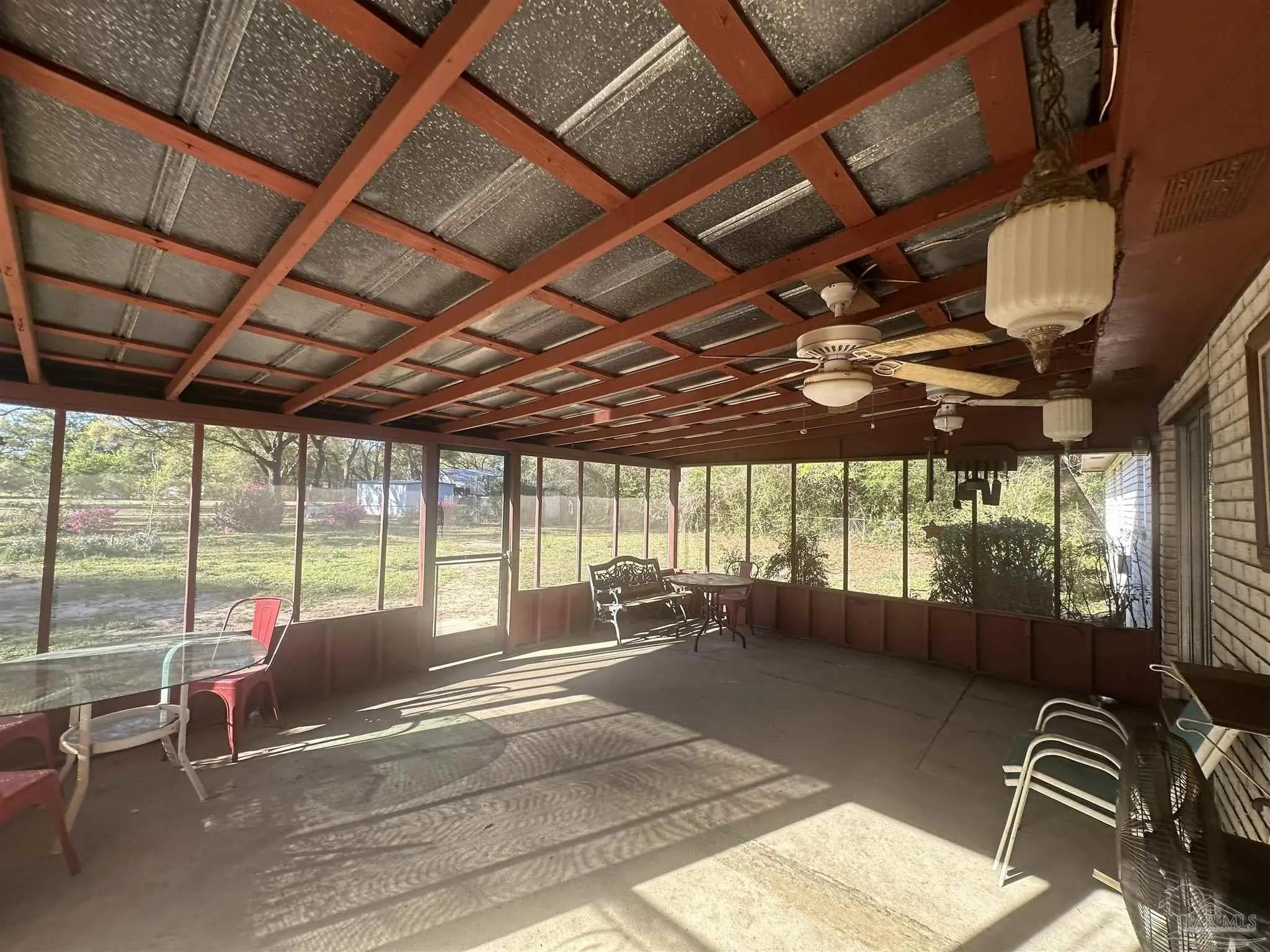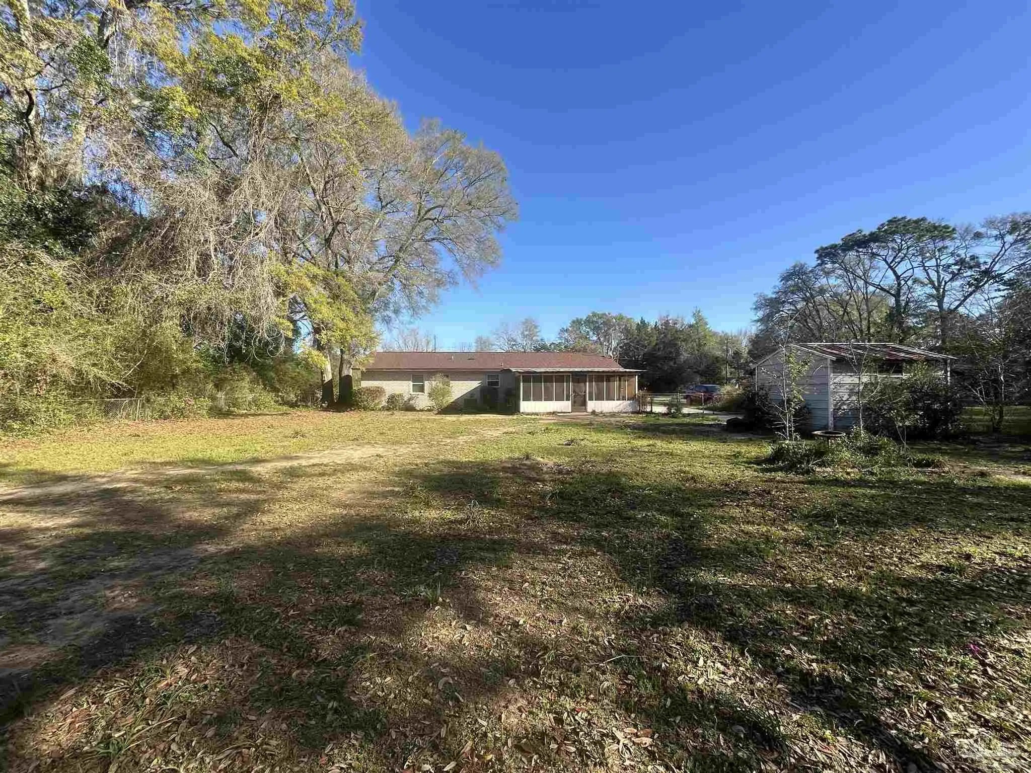Welcome home to this charming 3b/2ba with BONUS room brick home situated on almost 1/2 acre. This classic solid home offers comfortable living spaces and thoughtful updates (2025 WH/ROOF 2020/HVAC updated 2023 Electric Panel & hurricane shutters. ) Fully fenced large back yard. Two detached buildings, one with electric. Additional Lot space, once cleared would make a great spot for Large detached garage, MIL suite or RV/ boat storage. Centrally located in a rural setting yet close to all the conveniences. Utility room located off of kitchen with washer and dryer connections and additional storage. Large screened in porch with ceiling fans and electric for added enjoyment. Step out into the large, fenced in yard with mature flowers and azaleas, plenty of room for a pool and garden. Two detached buildings, one with full electric