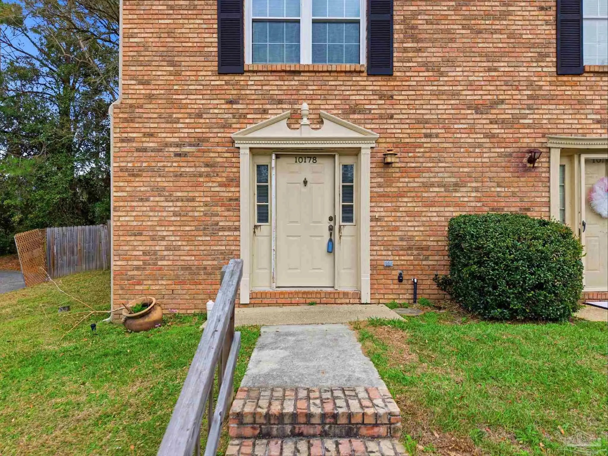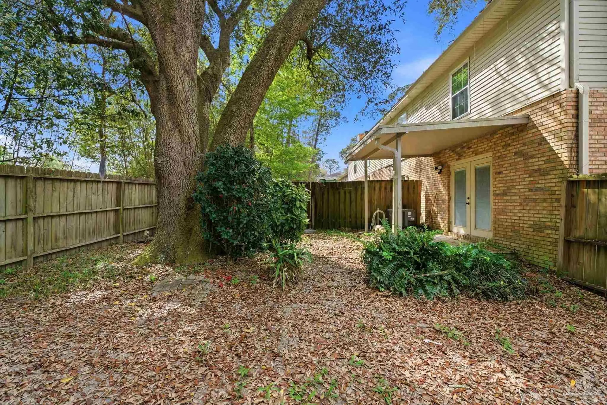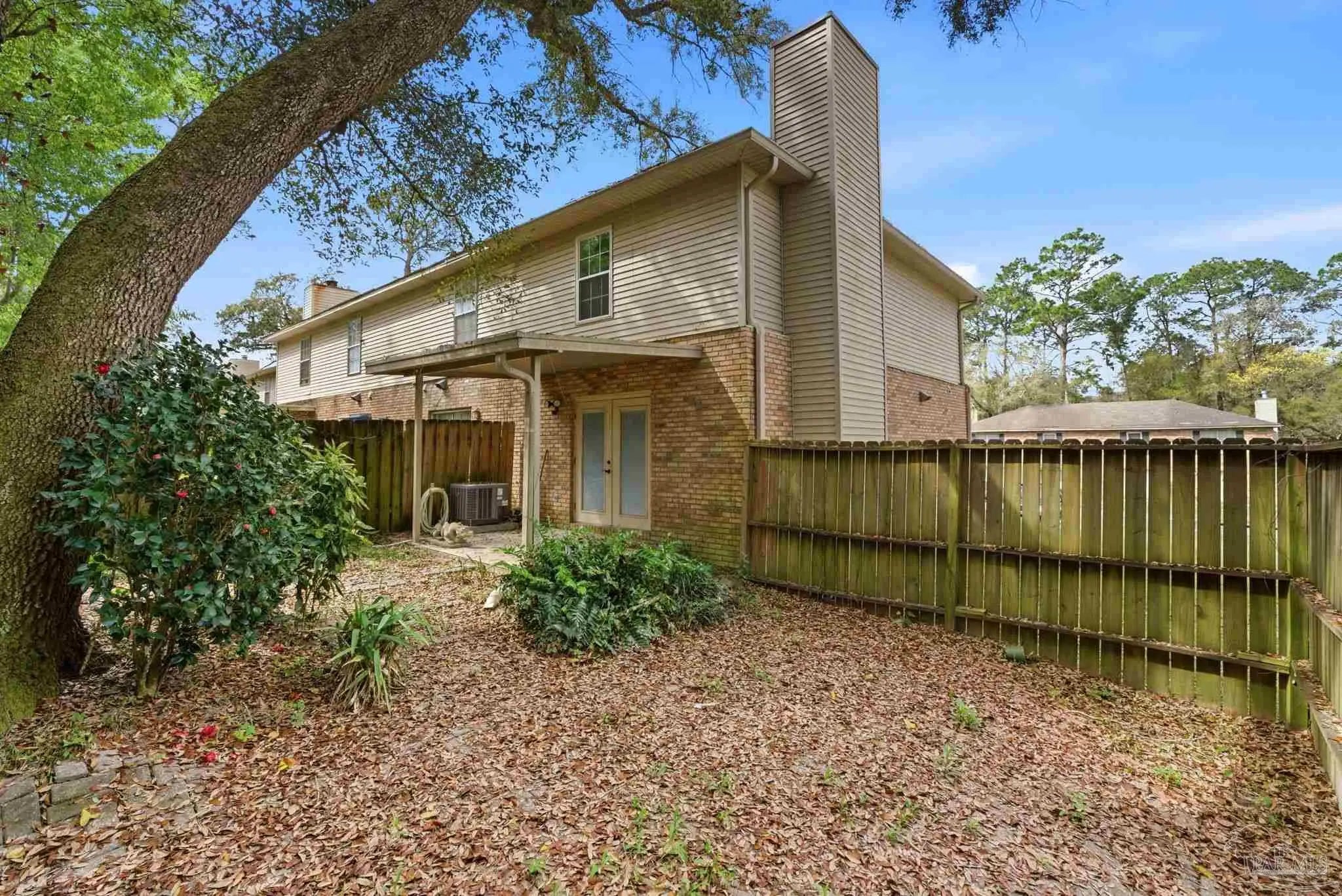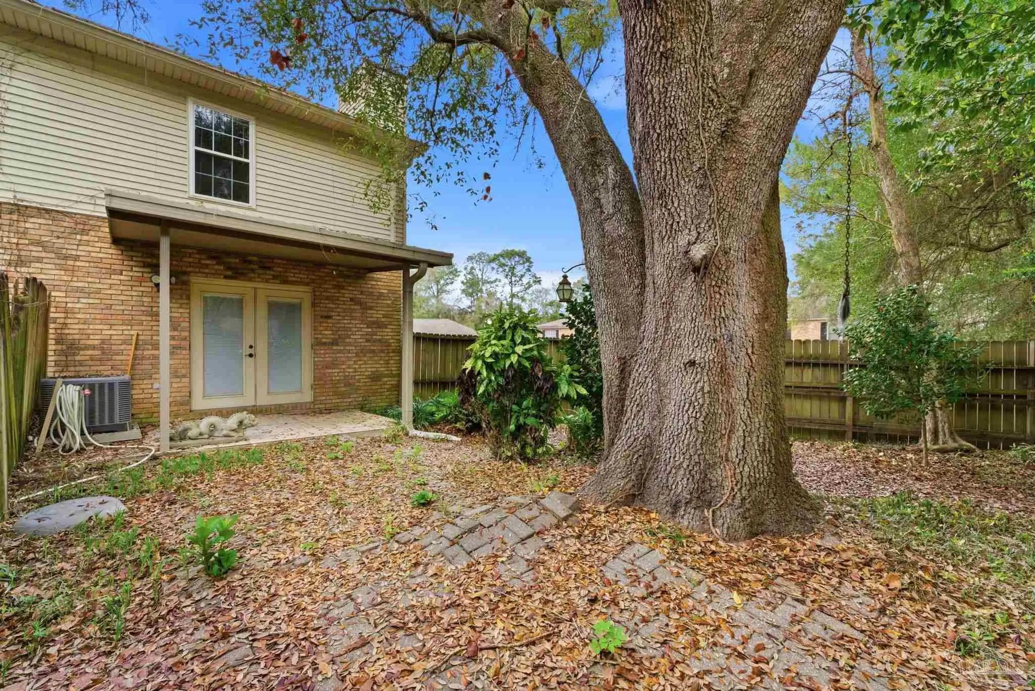 Tucked beneath mature trees on a quiet curve of the Foxborough community, this all-brick end-unit townhome offers rare privacy, classic charm, and a location just minutes from Navy Federal and I-10. With extra green space, abundant natural light, and a peaceful setting, the end-unit position creates a sense of privacy that’s hard to find in townhome living. Inside, the main level opens onto a bright, inviting living space centered around a cozy fireplace — the perfect place to relax at the end of the day or gather with friends. French doors lead to a covered patio and a private fenced backyard shaded by a beautiful mature oak, creating a peaceful outdoor retreat ideal for morning coffee, weekend grilling, or unwinding beneath the trees. The kitchen features white cabinetry and appliances, generous counter space, and a breakfast bar that connects easily to the dining & living areas through a wide pass-through, keeping the space open, social, and welcoming for everyday living and entertaining. A convenient half bath downstairs adds functionality for guests. Upstairs, two spacious bedrooms provide comfortable retreats. One enjoys direct access to the full bath, while the second offers flexibility for guests, family, or a home office. The upstairs layout feels quiet & private, tucked away from the main living areas below. Foxborough offers a peaceful setting just minutes from Navy Federal Credit Union’s Heritage Oaks campus, I-10/110, the University of West Florida, Pensacola State College, Pensacola International Airport, & the dining and entertainment of downtown Pensacola. The sugar-white beaches of the Gulf are also within easy reach. Whether you're searching for your first home, an easy low-maintenance homeownership opportunity, or a smart investment, this inviting townhome offers classic charm, comfortable living, & a location you’ll love coming home to. Its convenient location near major employers also makes it an appealing option for long-term rental investment.