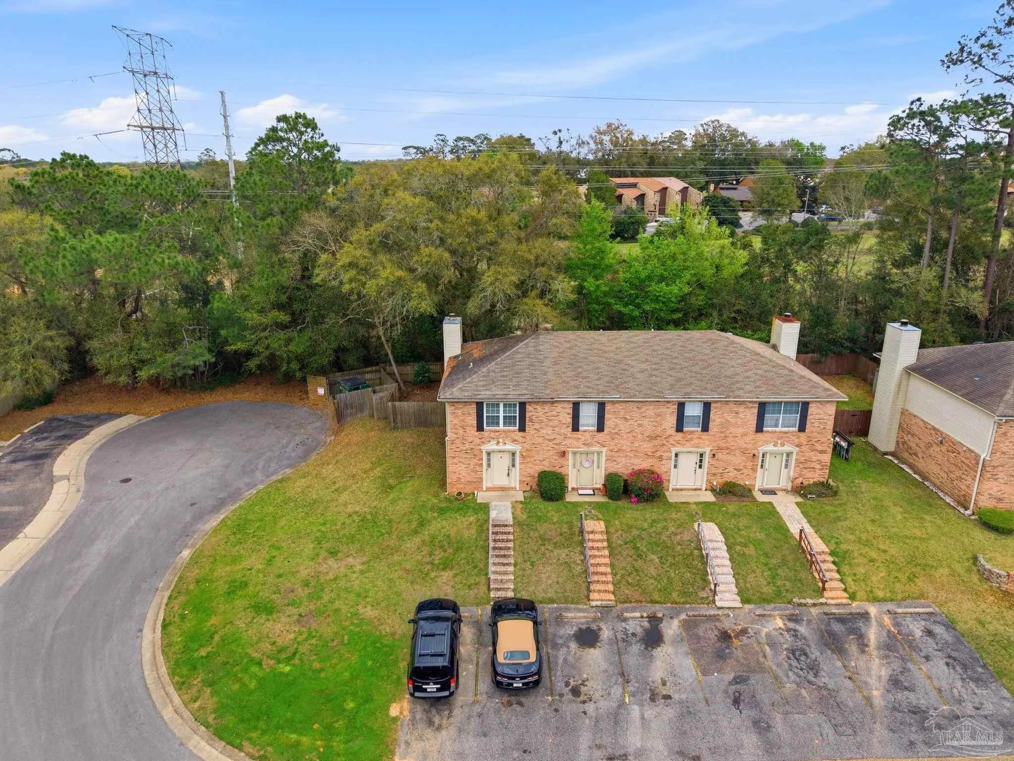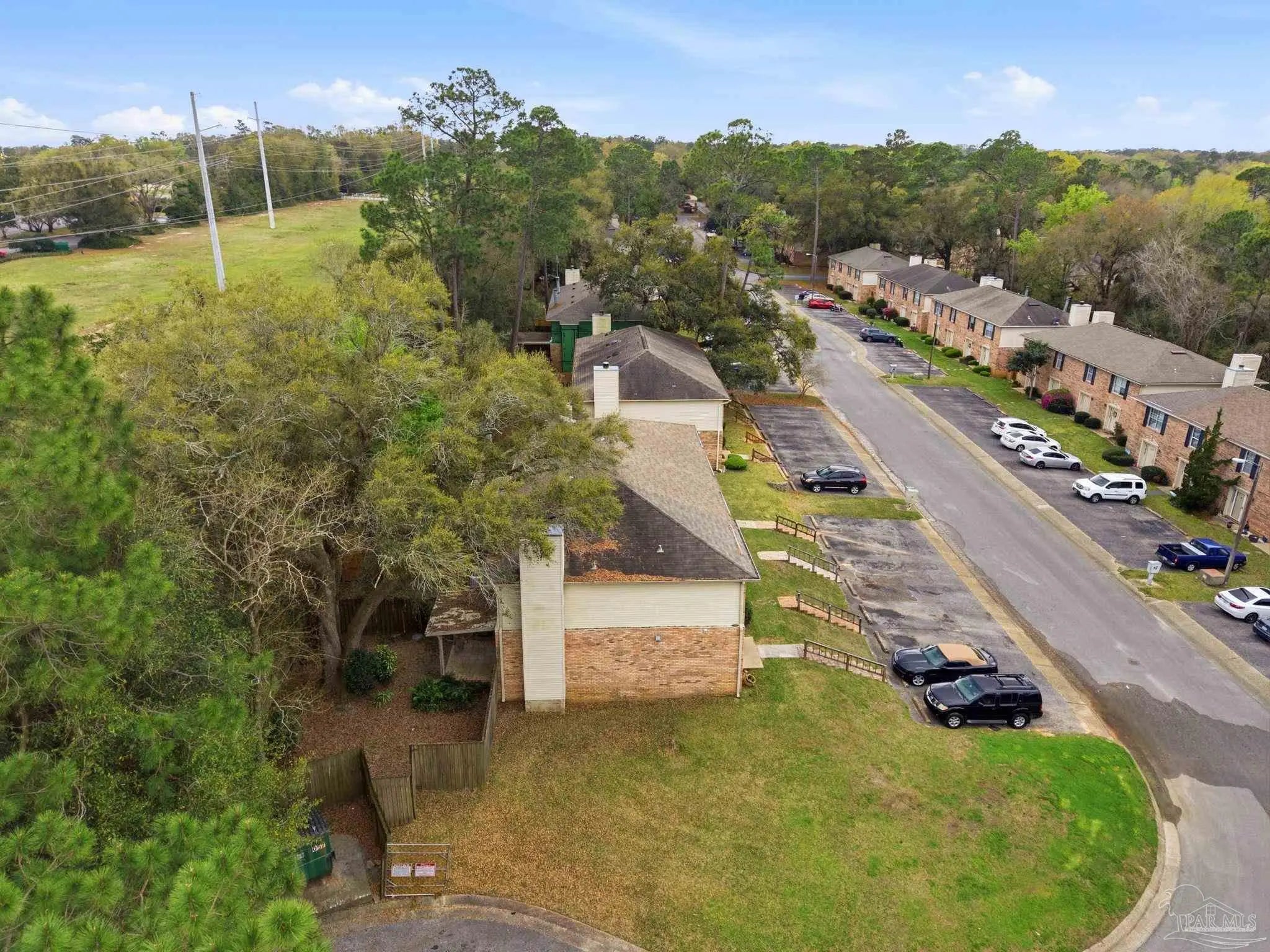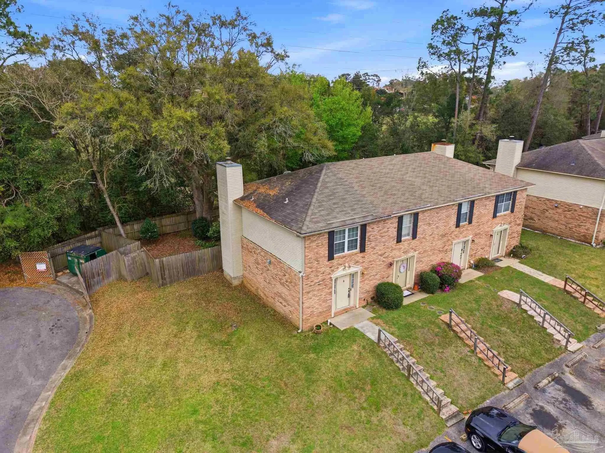 Tucked beneath mature trees on a quiet curve of the Foxborough community, this all-brick end-unit townhome offers rare privacy, classic charm, and a location just minutes from Navy Federal and I-10. With extra green space, abundant natural light, and a peaceful setting, the end-unit position creates a sense of privacy that’s hard to find in townhome living. Inside, the main level opens onto a bright, inviting living space centered around a cozy fireplace — the perfect place to relax at the end of the day or gather with friends. French doors lead to a covered patio and a private fenced backyard shaded by a beautiful mature oak, creating a peaceful outdoor retreat ideal for morning coffee, weekend grilling, or unwinding beneath the trees. The kitchen features white cabinetry and appliances, generous counter space, and a breakfast bar that connects easily to the dining & living areas through a wide pass-through, keeping the space open, social, and welcoming for everyday living and entertaining. A convenient half bath downstairs adds functionality for guests. Upstairs, two spacious bedrooms provide comfortable retreats. One enjoys direct access to the full bath, while the second offers flexibility for guests, family, or a home office. The upstairs layout feels quiet & private, tucked away from the main living areas below. Foxborough offers a peaceful setting just minutes from Navy Federal Credit Union’s Heritage Oaks campus, I-10/110, the University of West Florida, Pensacola State College, Pensacola International Airport, & the dining and entertainment of downtown Pensacola. The sugar-white beaches of the Gulf are also within easy reach. Whether you're searching for your first home, an easy low-maintenance homeownership opportunity, or a smart investment, this inviting townhome offers classic charm, comfortable living, & a location you’ll love coming home to. Its convenient location near major employers also makes it an appealing option for long-term rental investment.