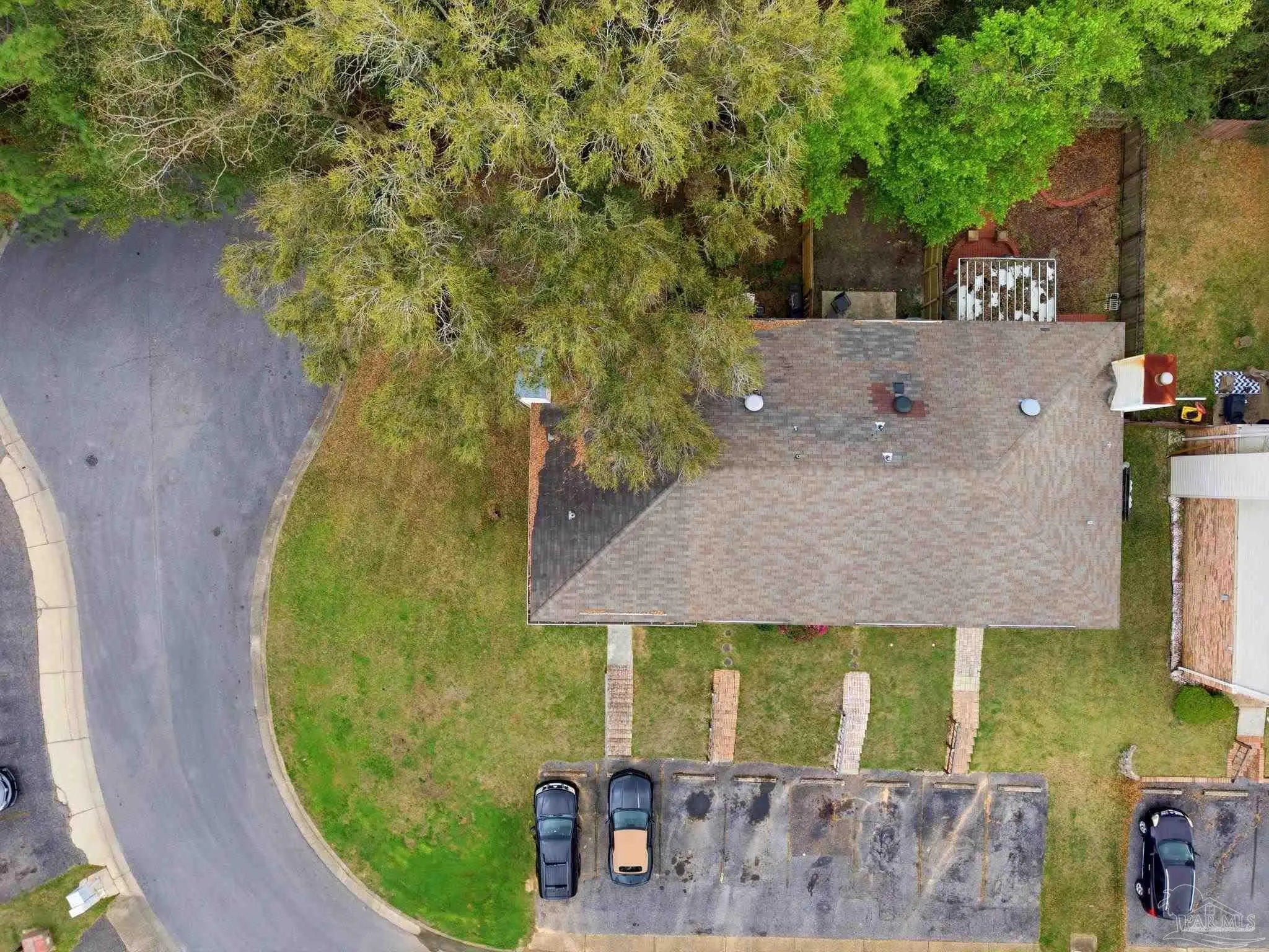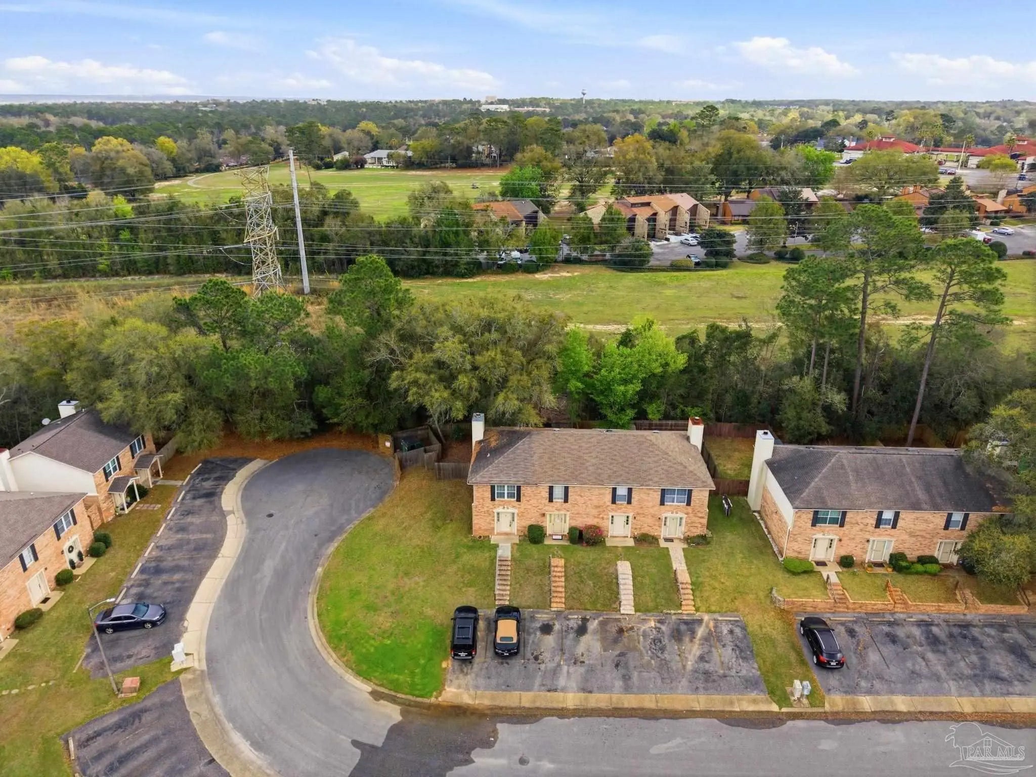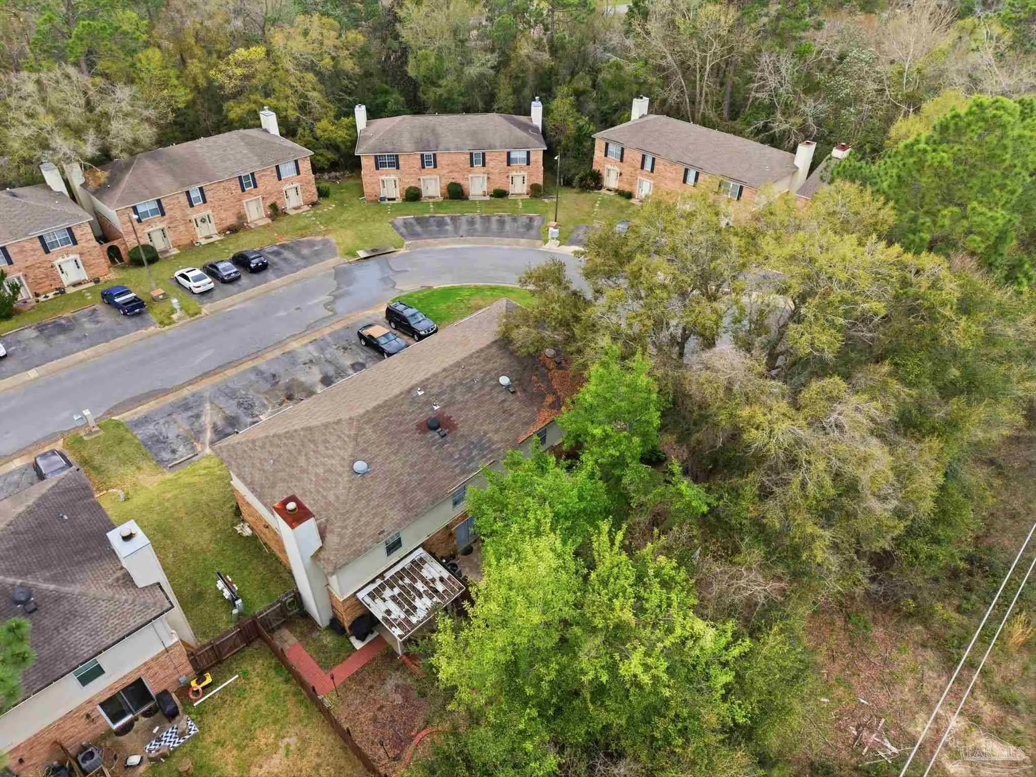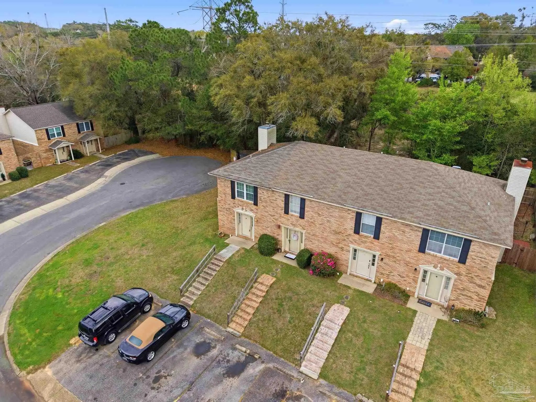 Tucked beneath mature trees on a quiet curve of the Foxborough community, this all-brick end-unit townhome offers rare privacy, classic charm, and a location just minutes from Navy Federal and I-10. With extra green space, abundant natural light, and a peaceful setting, the end-unit position creates a sense of privacy that’s hard to find in townhome living. Inside, the main level opens onto a bright, inviting living space centered around a cozy fireplace — the perfect place to relax at the end of the day or gather with friends. French doors lead to a covered patio and a private fenced backyard shaded by a beautiful mature oak, creating a peaceful outdoor retreat ideal for morning coffee, weekend grilling, or unwinding beneath the trees. The kitchen features white cabinetry and appliances, generous counter space, and a breakfast bar that connects easily to the dining & living areas through a wide pass-through, keeping the space open, social, and welcoming for everyday living and entertaining. A convenient half bath downstairs adds functionality for guests. Upstairs, two spacious bedrooms provide comfortable retreats. One enjoys direct access to the full bath, while the second offers flexibility for guests, family, or a home office. The upstairs layout feels quiet & private, tucked away from the main living areas below. Foxborough offers a peaceful setting just minutes from Navy Federal Credit Union’s Heritage Oaks campus, I-10/110, the University of West Florida, Pensacola State College, Pensacola International Airport, & the dining and entertainment of downtown Pensacola. The sugar-white beaches of the Gulf are also within easy reach. Whether you're searching for your first home, an easy low-maintenance homeownership opportunity, or a smart investment, this inviting townhome offers classic charm, comfortable living, & a location you’ll love coming home to. Its convenient location near major employers also makes it an appealing option for long-term rental investment.