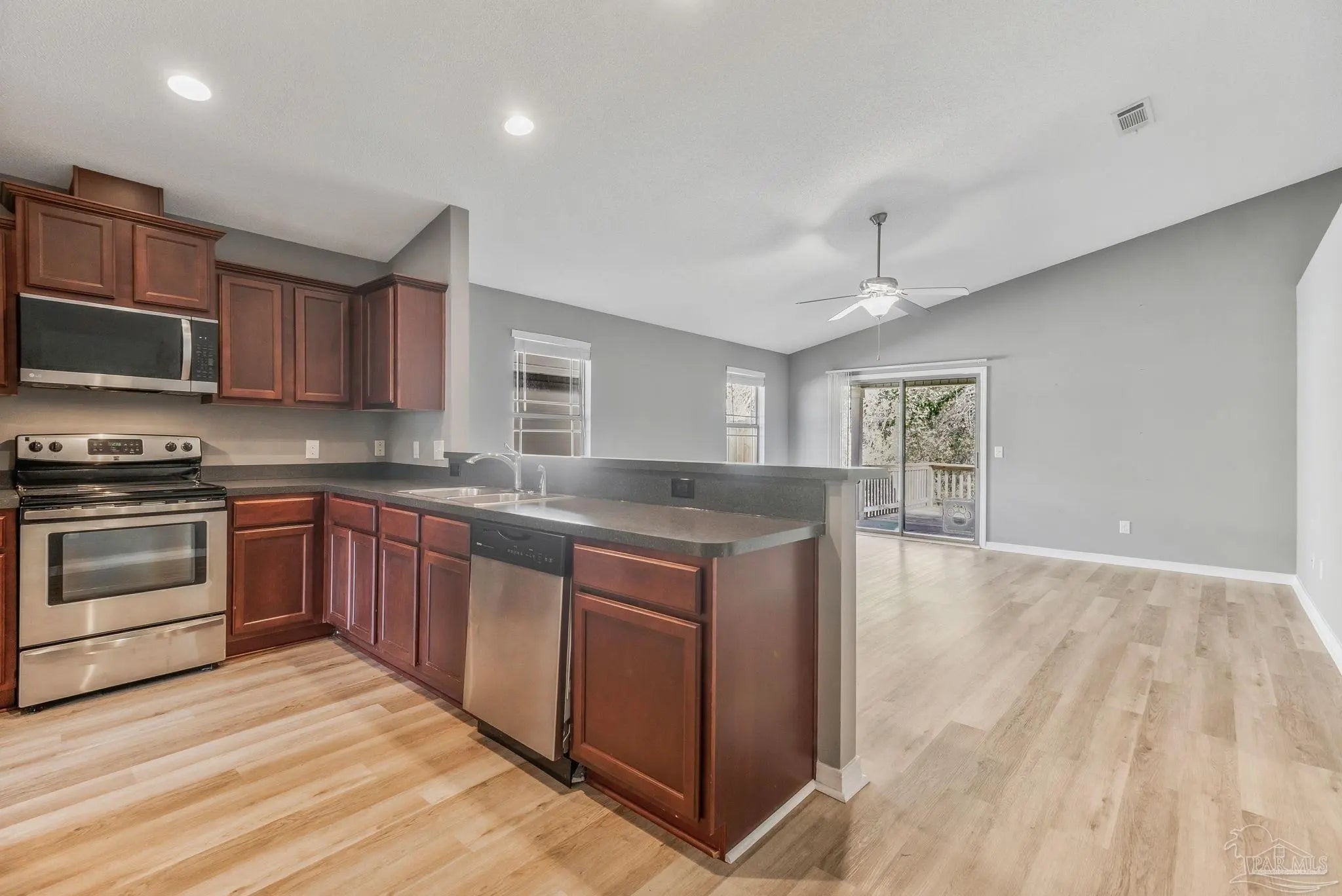 Welcome to 648 Monzingo Ln a beautifully maintained 3-bedroom, 2-bath brick home offering 1,611 square feet of comfortable living space in a quiet Pensacola neighborhood. From the moment you step into the inviting foyer, you’ll appreciate the thoughtful layout designed for both everyday living and entertaining. The spacious living area flows seamlessly into a well-appointed kitchen featuring stainless steel appliances, stained cabinetry, a convenient breakfast bar, and both a walk-in and butler’s pantry, providing ample storage and prep space for home chefs. The primary suite offers a relaxing retreat with a large walk-in closet and an en-suite bathroom complete with double vanities, a garden tub, and a separate shower. Two additional bedrooms and a full bath provide flexibility for guests, family, or a home office. Step outside to enjoy Florida living in the fully fenced backyard, featuring an oversized deck and patio—perfect for outdoor dining, entertaining, or simply unwinding in your private outdoor space. A two-car garage and spacious laundry room add to the home’s everyday convenience.This home combines comfort, functionality, and charm in a desirable location close to shopping, dining, and local schools—making it an excellent opportunity for homeowners seeking move-in-ready living in Pensacola.