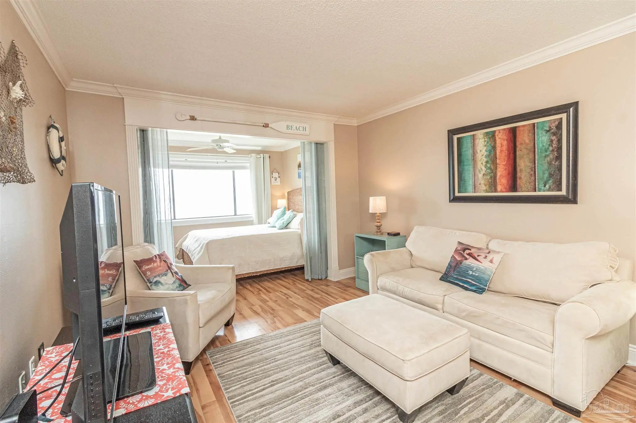 Discover the ''best kept secret'' on Navarre Beach in this premier 3rd-floor studio. Unit 1-311 offers the most direct views and effortless access to the Santa Rosa Sound. As soon as you enter, a large picture window puts the beauty of the Sound front and center. This fully furnished, turn-key unit features tasteful coastal decor that comfortably sleeps four with a queen bed and sleeper sofa. Enjoy the ultimate waterfront lifestyle with a private sound-side beach, a large pool, and a waterfront gazebo with grills overlooking the fishing pier. The Palm's well-maintained buildings offer elevator access for your convenience. Just a short stroll from Gulf access #37A, this is a perfect retreat or well-performing investment with gross rental projections of ~$30,000/year.