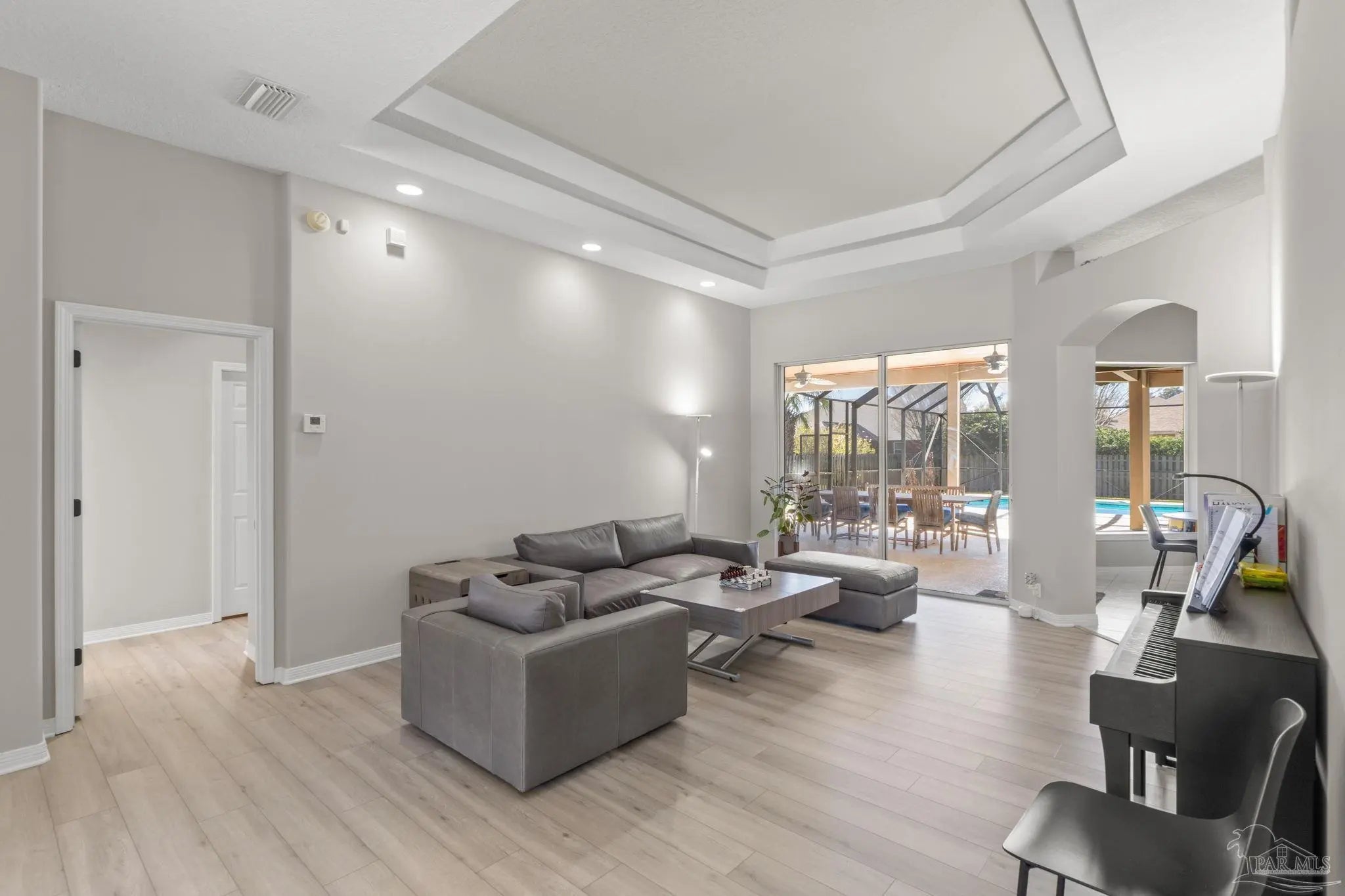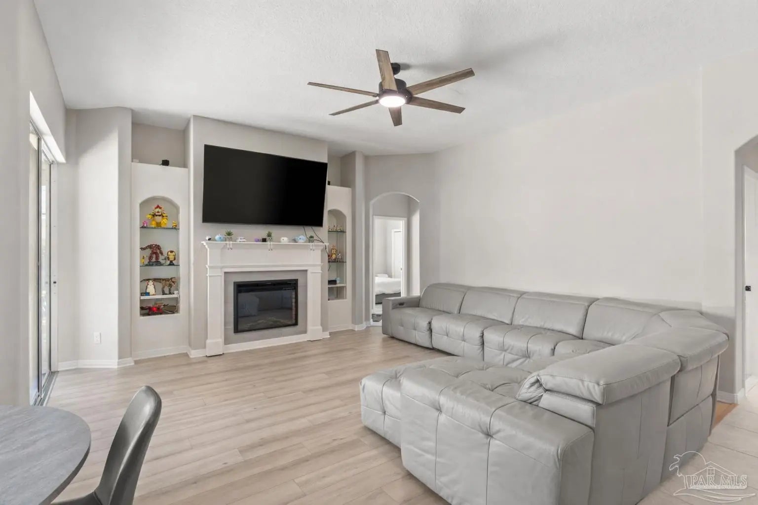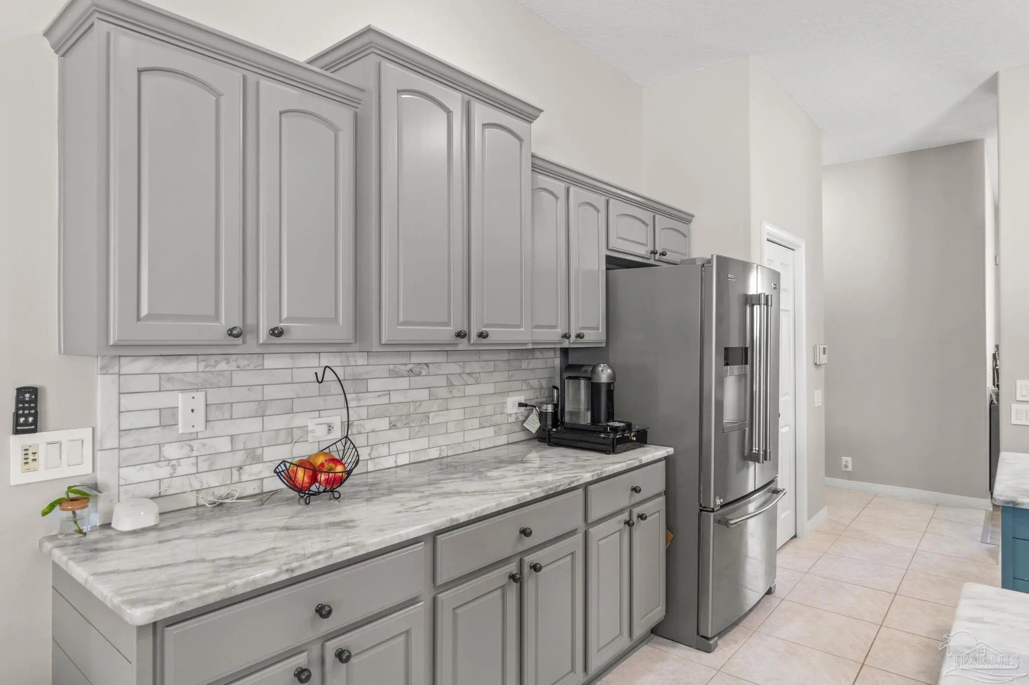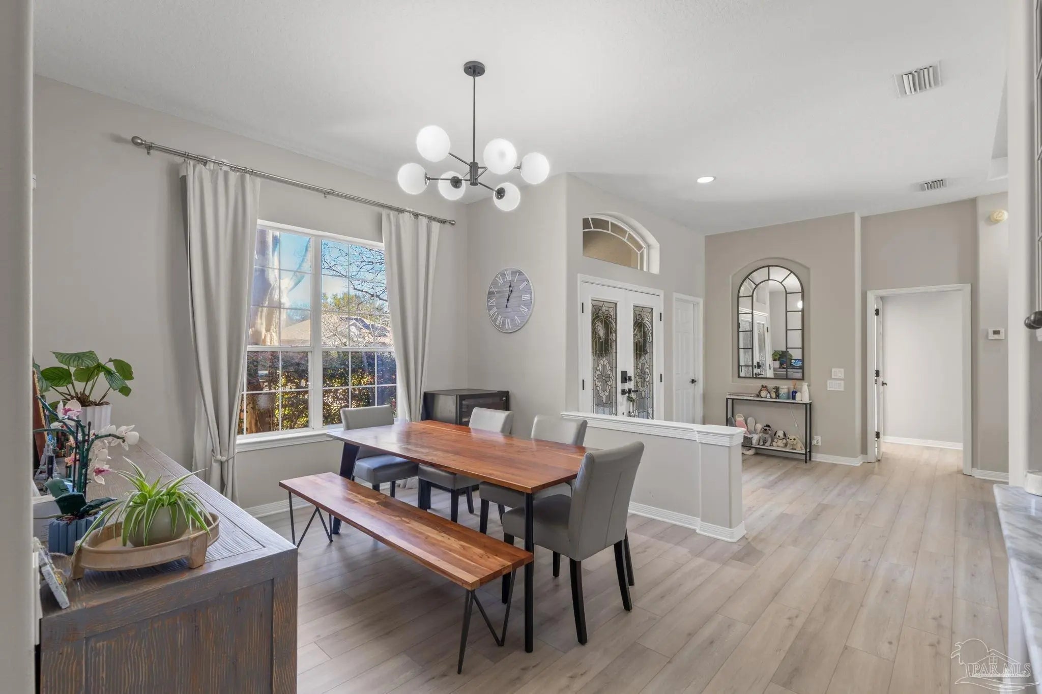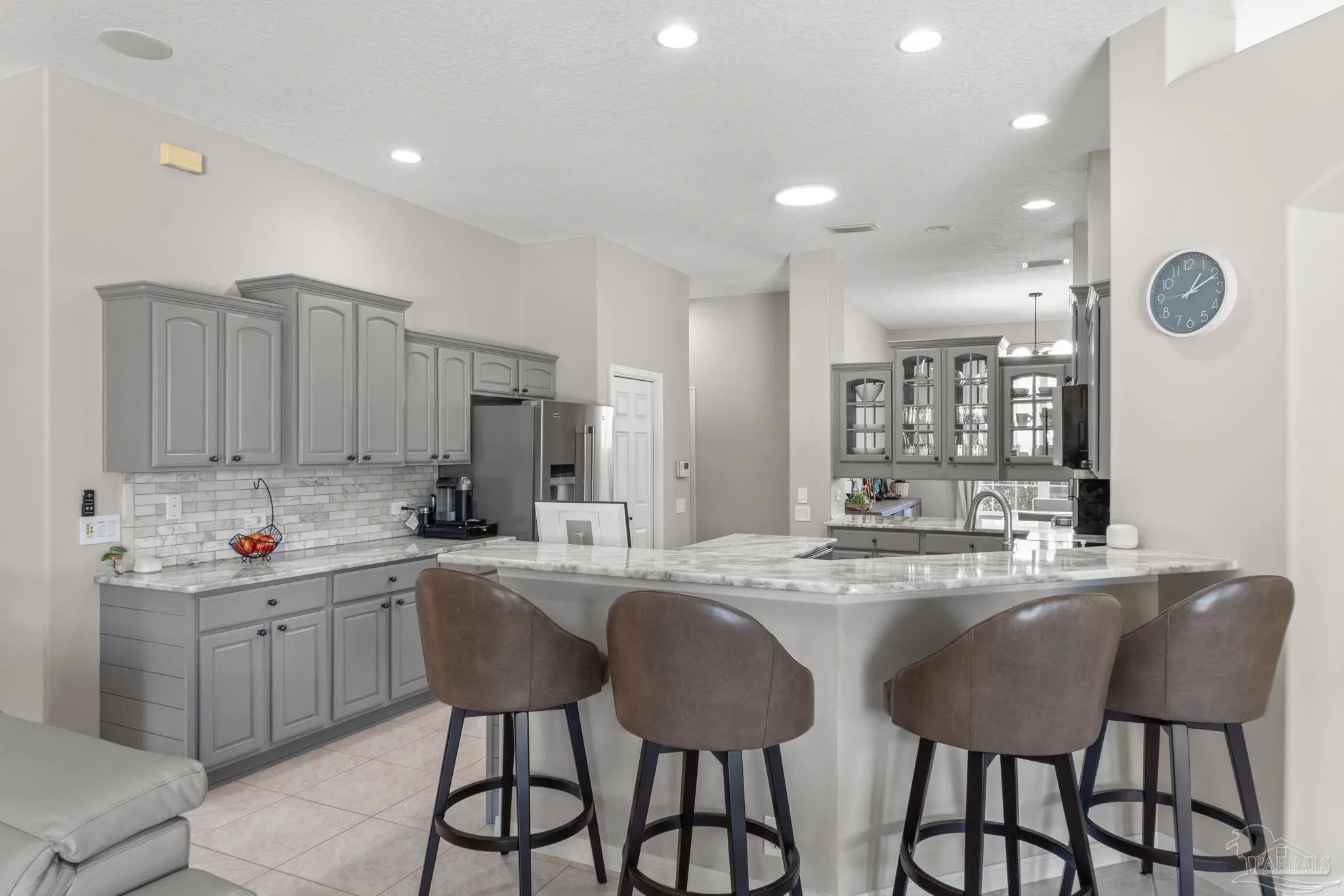 Welcome to this exceptional, fully remodeled home nestled on a quiet cul-de-sac in the highly sought-after Grand Pointe subdivision. Showcasing high-end finishes and thoughtful designer upgrades throughout, this residence offers an elevated take on Florida living! Step outside to your private, resort-style retreat featuring a spacious covered lanai with a beautifully stained tongue-and-groove ceiling, an outdoor kitchen, and a screened-in pool—perfect for effortless entertaining or year-round relaxation. Inside, the open split floor plan is enhanced by soaring ceilings and elegant tray details, creating a bright and sophisticated ambiance. Formal living and dining areas flow seamlessly into the heart of the home: a chef-inspired kitchen complete with a large island, granite countertops, premium stainless appliances, abundant prep space, and a walk-in pantry. Every detail has been thoughtfully curated, including new flooring, fresh designer paint, updated lighting, integrated surround sound, and custom built-in closets that blend style with functionality. The owner’s suite serves as a private sanctuary, offering direct pool access, high ceilings, and spacious custom walk-in closets. The spa-like en-suite bath features a soaking tub, walk-in shower, dual vanity, and an adjoining office—ideal for working from home. On the opposite wing, three additional bedrooms and two beautifully appointed bathrooms provide comfort and privacy for family and guests. The inviting family room centers around a sleek fireplace with custom built-ins, creating a warm yet refined gathering space. Additional highlights include a whole-home water filtration system, security system, and an oversized side-entry 2.5-car garage. The lush backyard offers garden space along with banana and lime trees. Located in the highly desirable Gulf Breeze School District, this home is just minutes from pristine beaches, neighborhood park, and downtown Pensacola. This is the one you don’t want to miss!