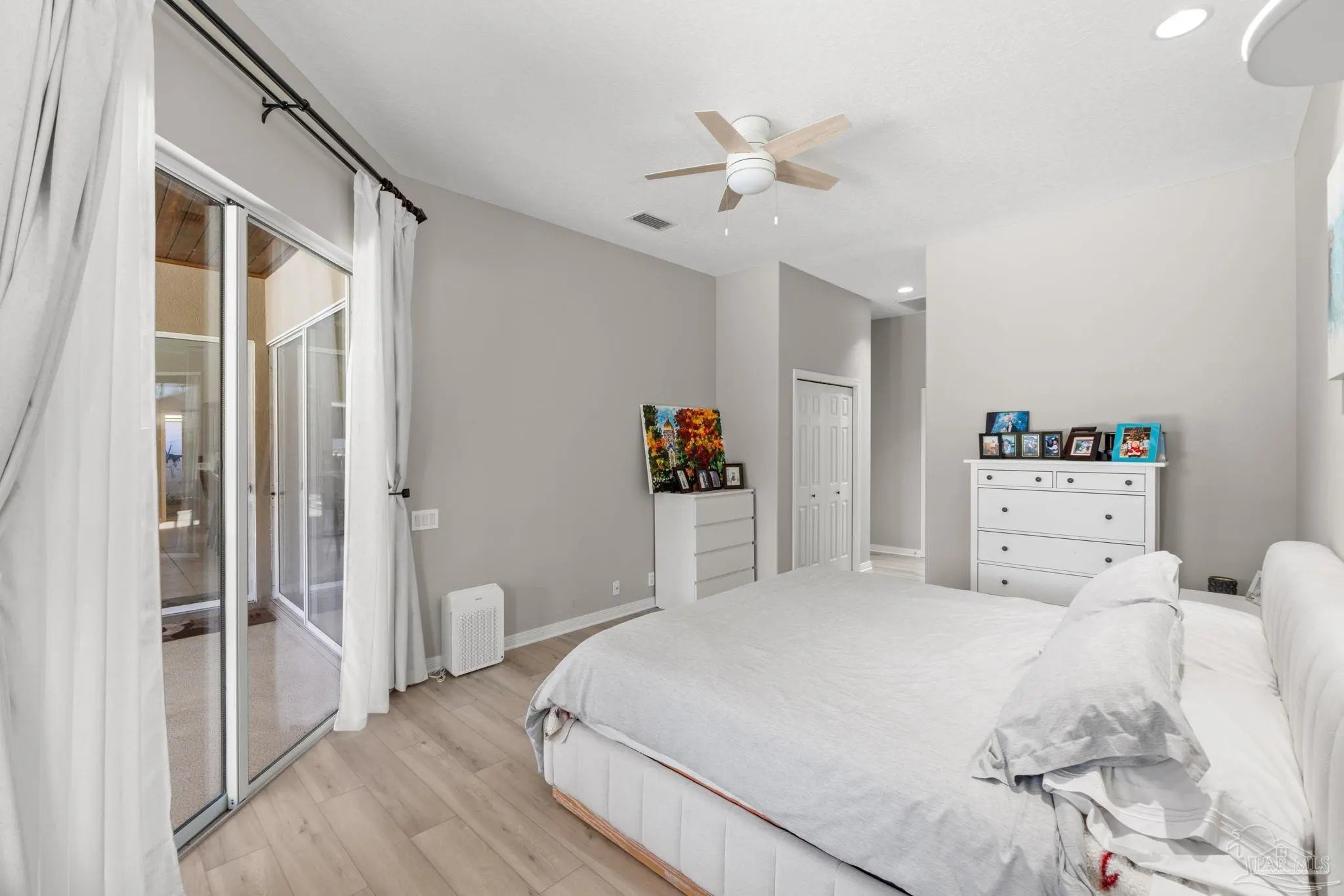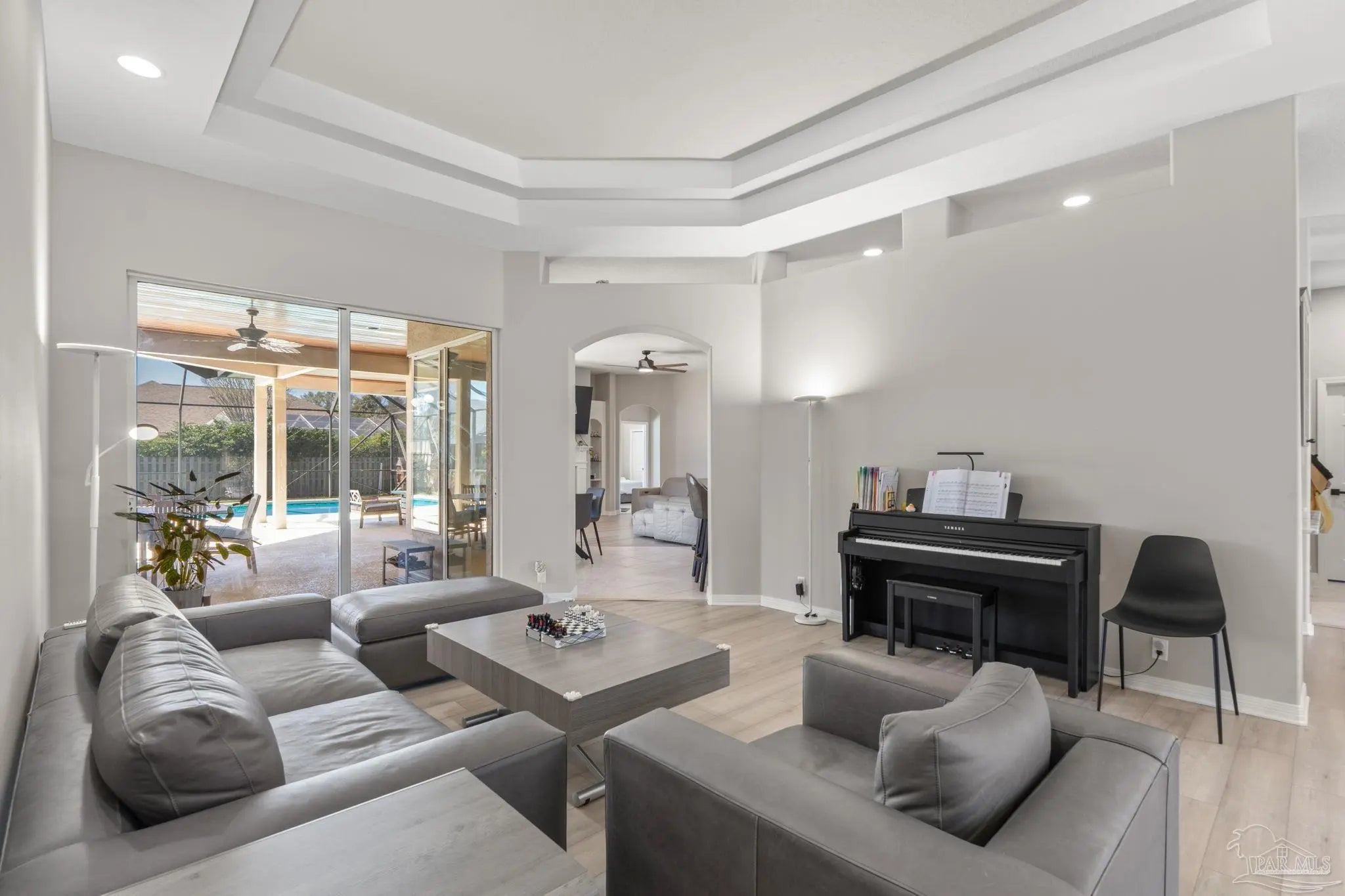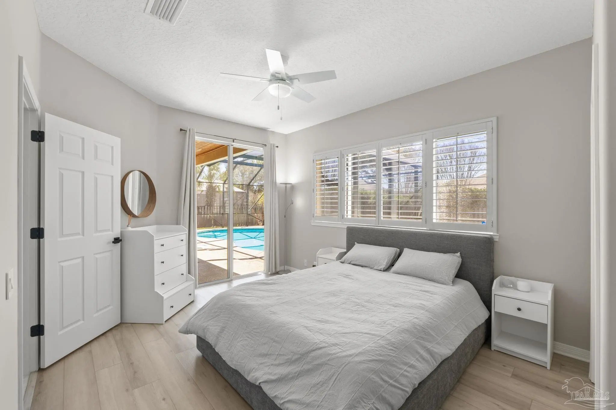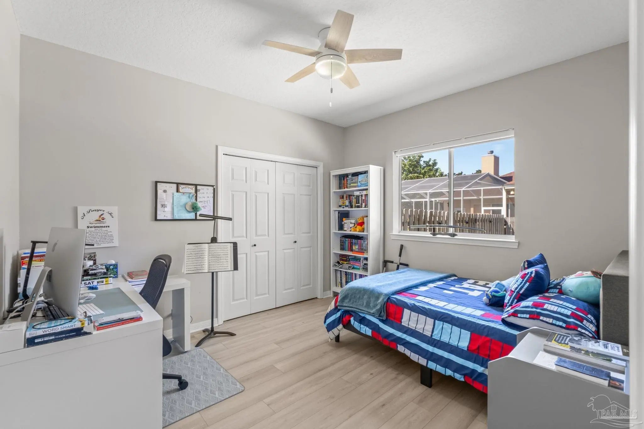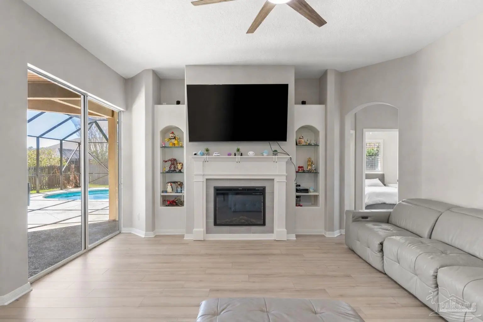 Welcome to this exceptional, fully remodeled home nestled on a quiet cul-de-sac in the highly sought-after Grand Pointe subdivision. Showcasing high-end finishes and thoughtful designer upgrades throughout, this residence offers an elevated take on Florida living! Step outside to your private, resort-style retreat featuring a spacious covered lanai with a beautifully stained tongue-and-groove ceiling, an outdoor kitchen, and a screened-in pool—perfect for effortless entertaining or year-round relaxation. Inside, the open split floor plan is enhanced by soaring ceilings and elegant tray details, creating a bright and sophisticated ambiance. Formal living and dining areas flow seamlessly into the heart of the home: a chef-inspired kitchen complete with a large island, granite countertops, premium stainless appliances, abundant prep space, and a walk-in pantry. Every detail has been thoughtfully curated, including new flooring, fresh designer paint, updated lighting, integrated surround sound, and custom built-in closets that blend style with functionality. The owner’s suite serves as a private sanctuary, offering direct pool access, high ceilings, and spacious custom walk-in closets. The spa-like en-suite bath features a soaking tub, walk-in shower, dual vanity, and an adjoining office—ideal for working from home. On the opposite wing, three additional bedrooms and two beautifully appointed bathrooms provide comfort and privacy for family and guests. The inviting family room centers around a sleek fireplace with custom built-ins, creating a warm yet refined gathering space. Additional highlights include a whole-home water filtration system, security system, and an oversized side-entry 2.5-car garage. The lush backyard offers garden space along with banana and lime trees. Located in the highly desirable Gulf Breeze School District, this home is just minutes from pristine beaches, neighborhood park, and downtown Pensacola. This is the one you don’t want to miss!
