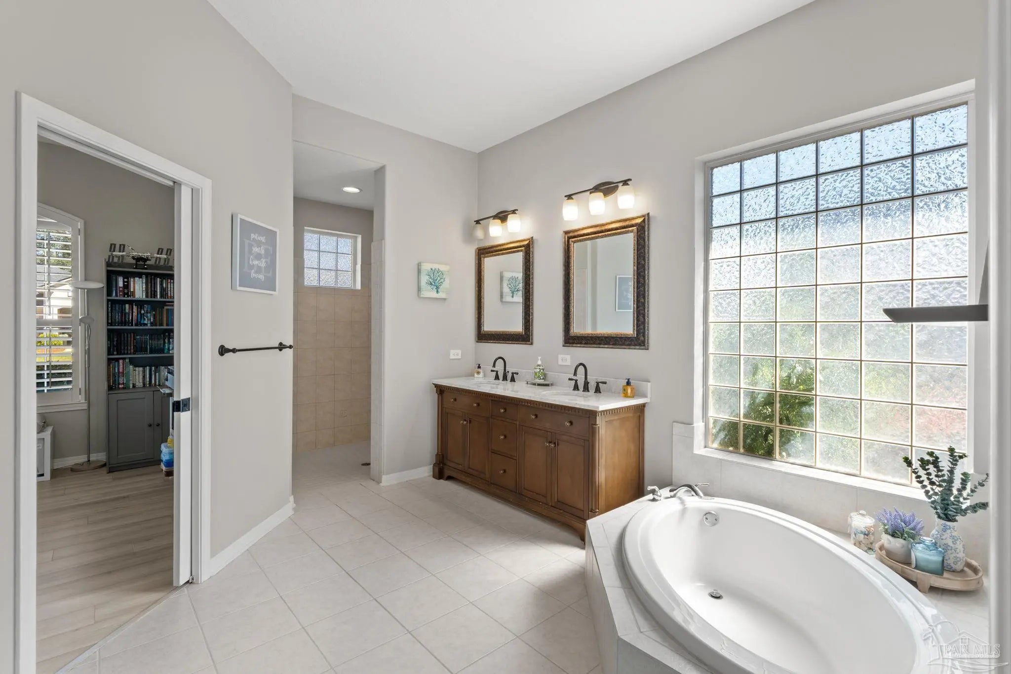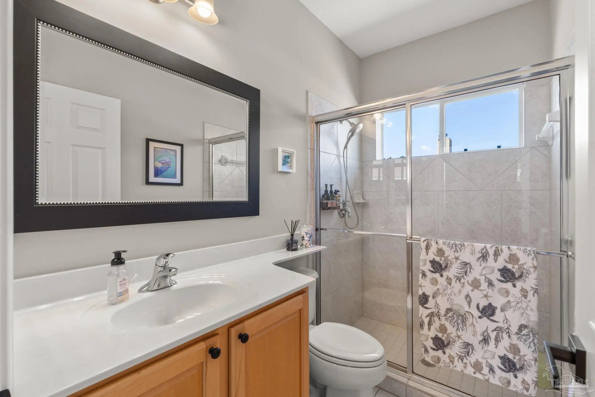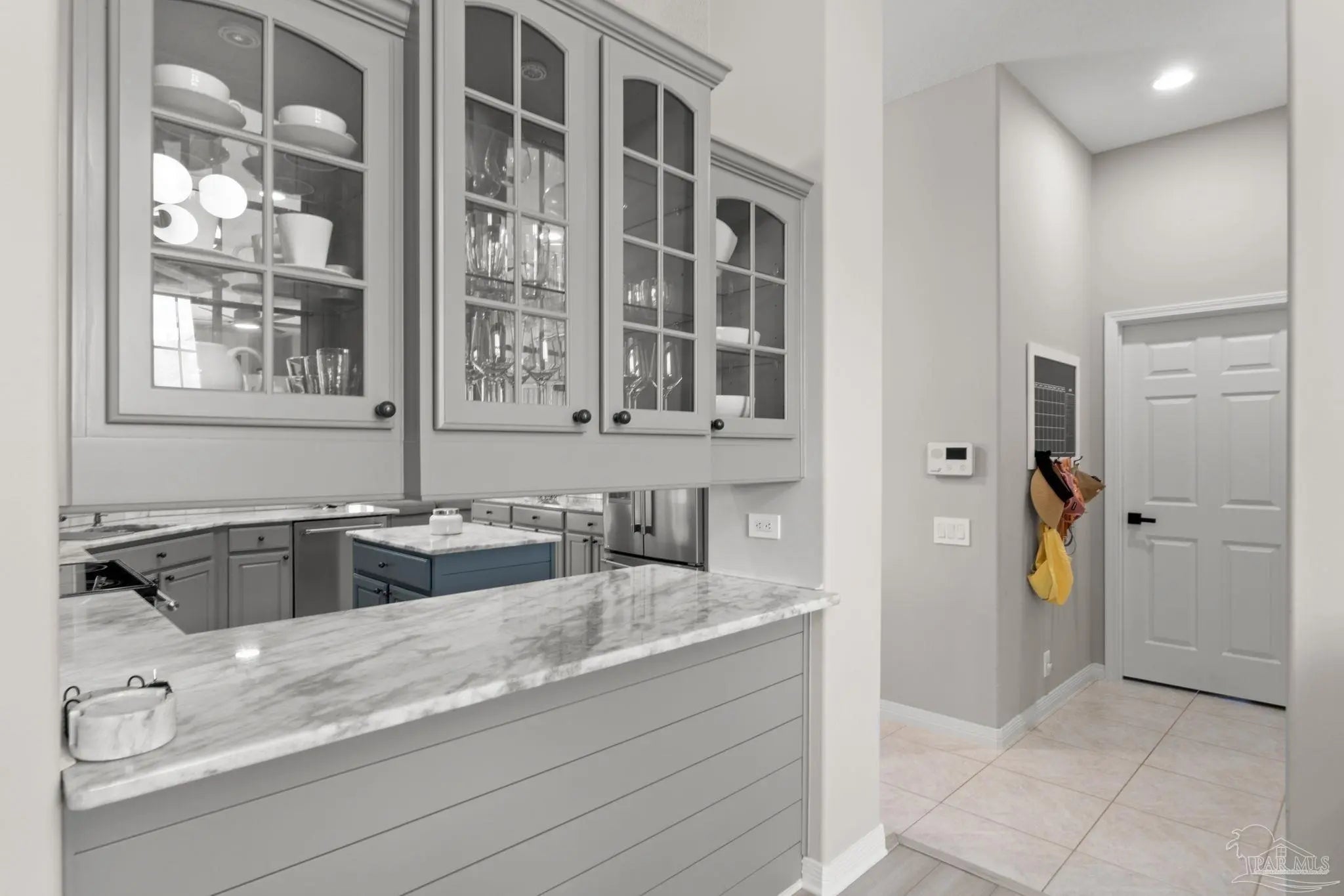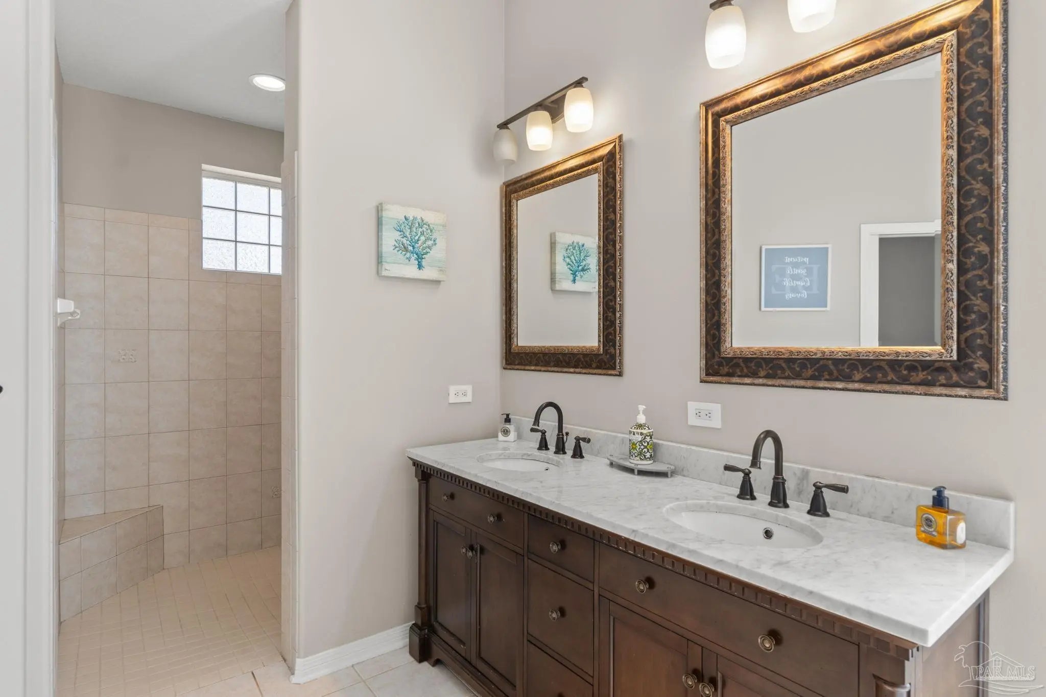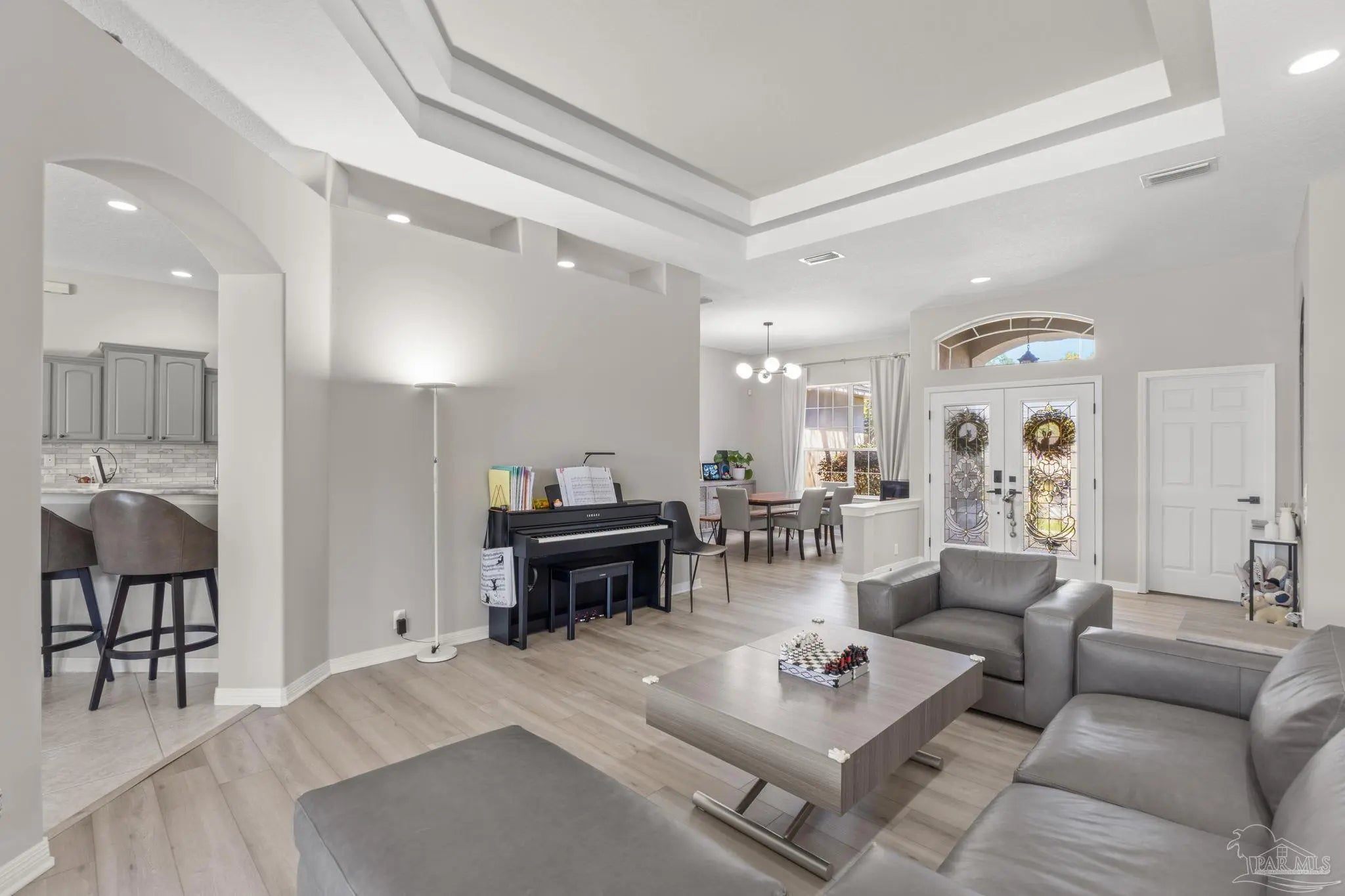 Welcome to this exceptional, fully remodeled home nestled on a quiet cul-de-sac in the highly sought-after Grand Pointe subdivision. Showcasing high-end finishes and thoughtful designer upgrades throughout, this residence offers an elevated take on Florida living! Step outside to your private, resort-style retreat featuring a spacious covered lanai with a beautifully stained tongue-and-groove ceiling, an outdoor kitchen, and a screened-in pool—perfect for effortless entertaining or year-round relaxation. Inside, the open split floor plan is enhanced by soaring ceilings and elegant tray details, creating a bright and sophisticated ambiance. Formal living and dining areas flow seamlessly into the heart of the home: a chef-inspired kitchen complete with a large island, granite countertops, premium stainless appliances, abundant prep space, and a walk-in pantry. Every detail has been thoughtfully curated, including new flooring, fresh designer paint, updated lighting, integrated surround sound, and custom built-in closets that blend style with functionality. The owner’s suite serves as a private sanctuary, offering direct pool access, high ceilings, and spacious custom walk-in closets. The spa-like en-suite bath features a soaking tub, walk-in shower, dual vanity, and an adjoining office—ideal for working from home. On the opposite wing, three additional bedrooms and two beautifully appointed bathrooms provide comfort and privacy for family and guests. The inviting family room centers around a sleek fireplace with custom built-ins, creating a warm yet refined gathering space. Additional highlights include a whole-home water filtration system, security system, and an oversized side-entry 2.5-car garage. The lush backyard offers garden space along with banana and lime trees. Located in the highly desirable Gulf Breeze School District, this home is just minutes from pristine beaches, neighborhood park, and downtown Pensacola. This is the one you don’t want to miss!