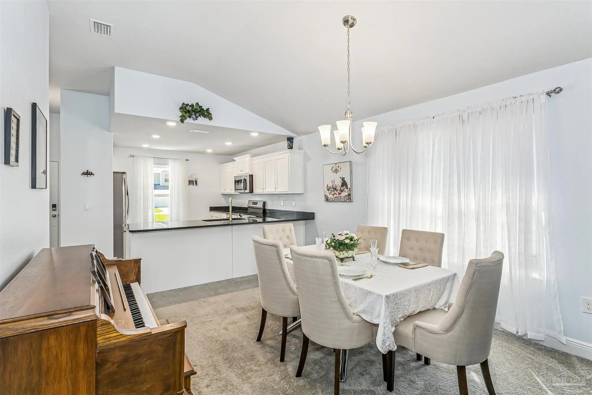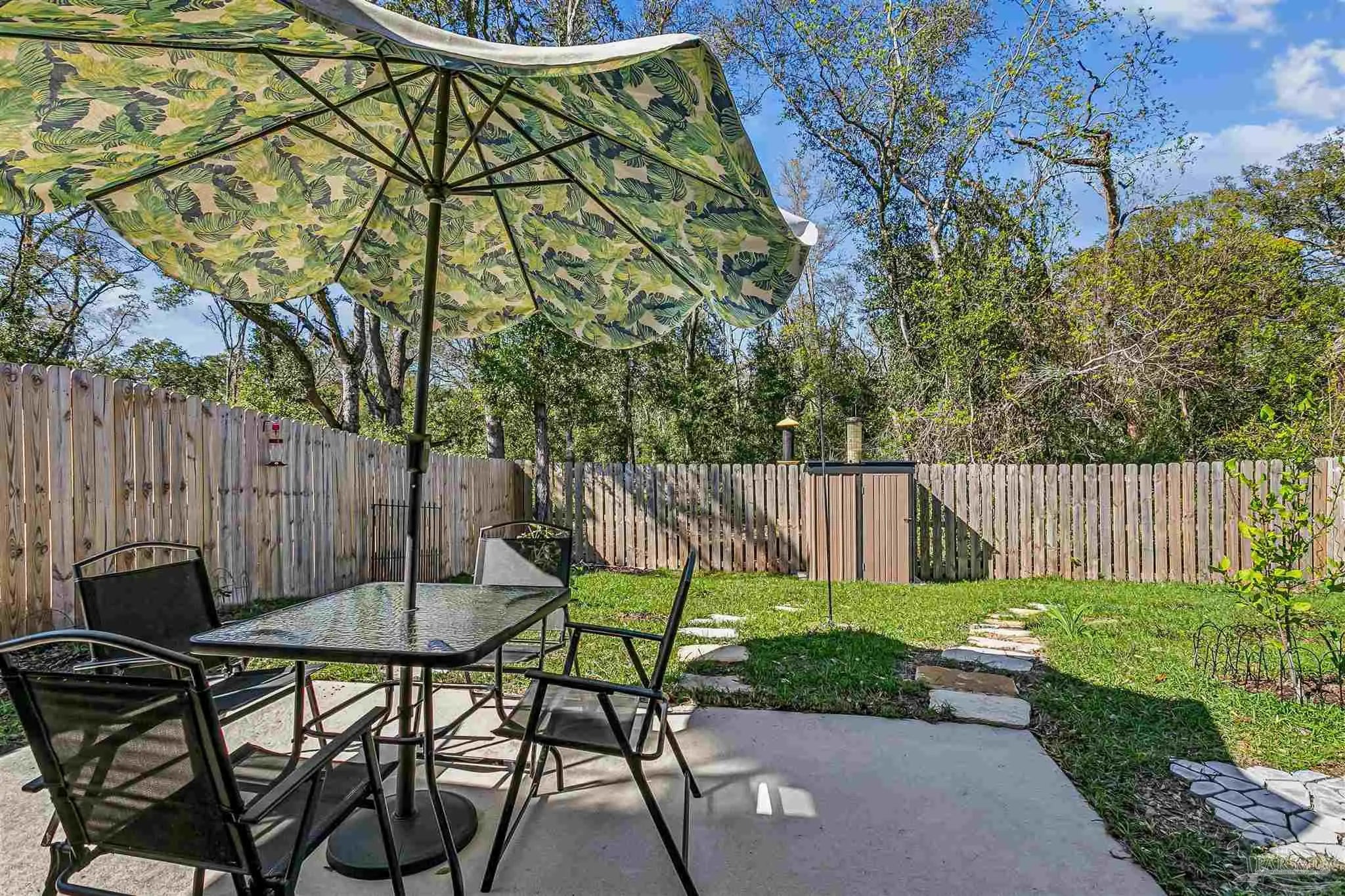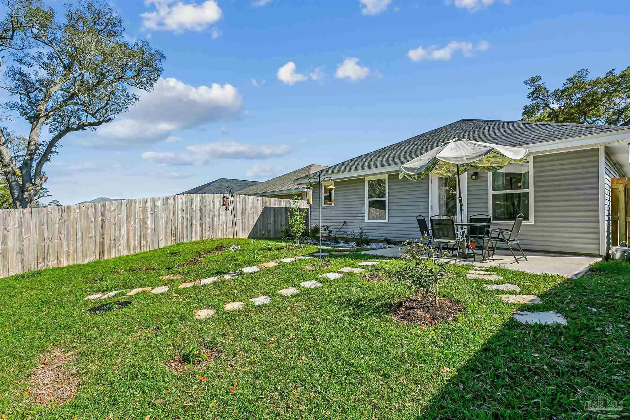 Welcome to this beautifully maintained, move-in ready home ideally located just 10 minutes from NAS Pensacola and Corry Station, and only 20 minutes to downtown Pensacola. Offering both convenience and comfort, this home is perfect for a variety of buyers. Step inside to a bright, open-concept floor plan with a well-appointed kitchen situated at the front of the home. The kitchen features granite countertops, white solid wood cabinetry, SS appliances (range, dishwasher, microwave), & a breakfast bar that opens seamlessly to the dining & living areas—perfect for daily living & entertaining. The split floor plan provides privacy, w the spacious primary suite located off the living room. The primary bedroom offers a tray ceiling, ceiling fan, and a generous walk-in closet. The en-suite bath includes a dble vanity and a tub/shower combo. Two additional bedrooms are positioned at the front of the home, along with a full guest bath and conveniently located laundry room. Interior features include durable luxury vinyl plank flooring in wet areas, comfortable carpeting throughout the main living spaces & bedrooms and impact rated front door, several impact windows and hurricane coverings for the other openings. Step outside to enjoy your private, fully fenced backyard designed for both relaxation & enjoyment. The outdoor space includes an open patio ideal for gatherings, a flower bed filled with numerous rose bushes, two bird feeders that attract local wildlife, and a new storage building perfect for lawn equipment and tools. Mature shade trees along the rear property line provide added privacy and a peaceful natural setting. This home combines thoughtful design, functional living space, and a great location—schedule your private showing today!