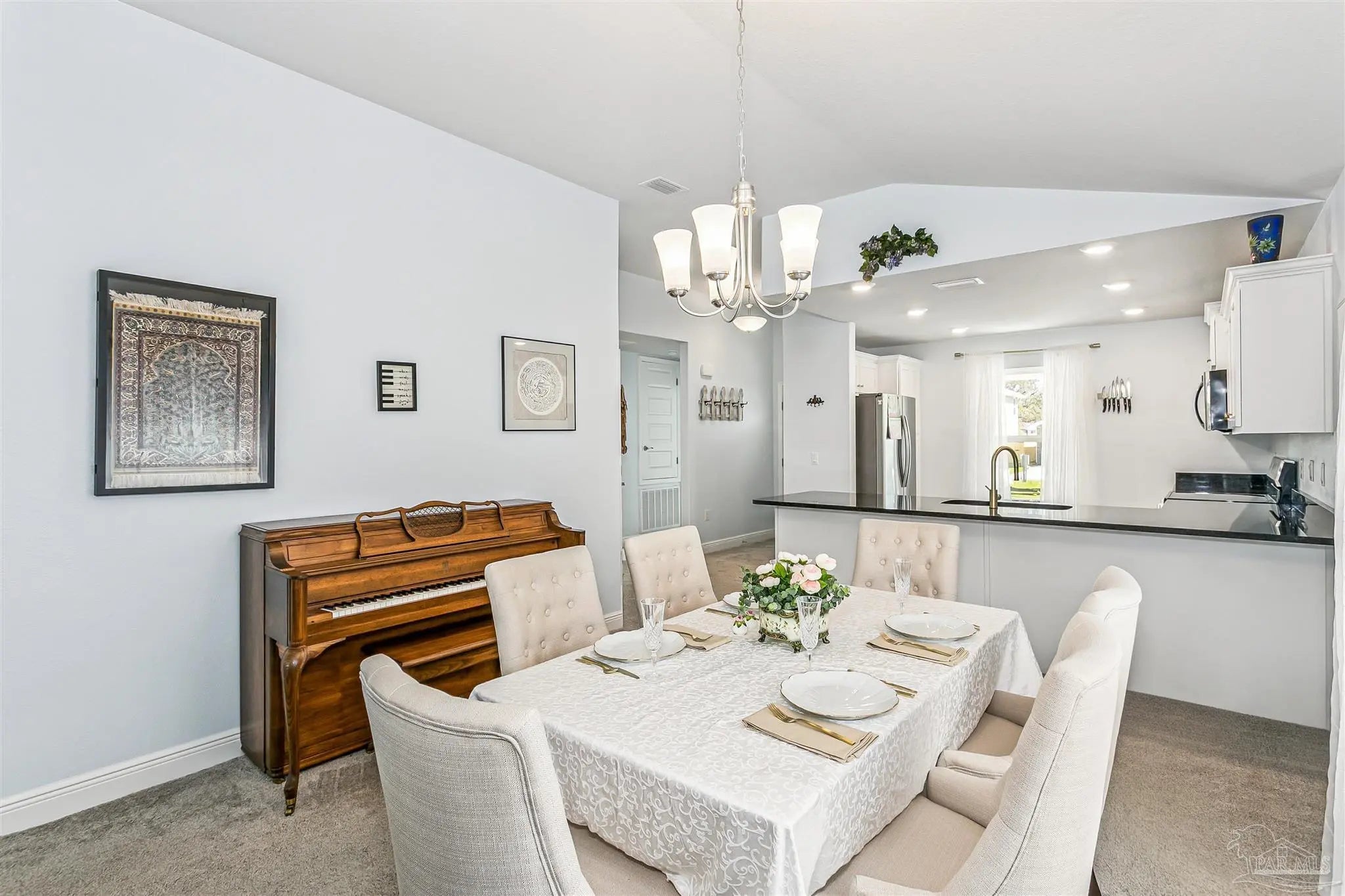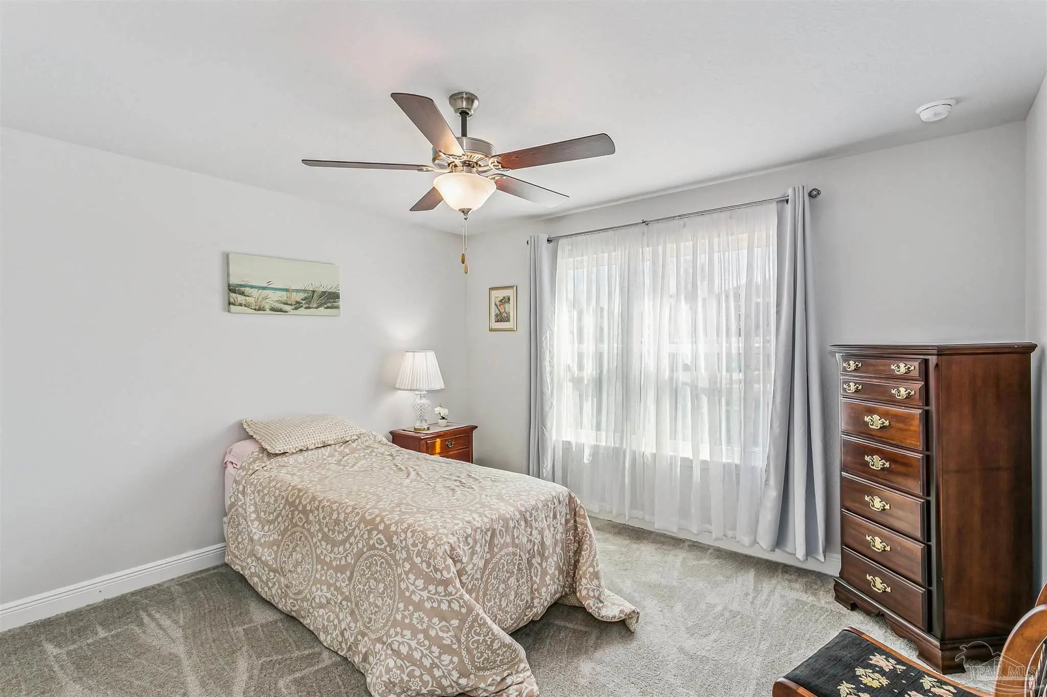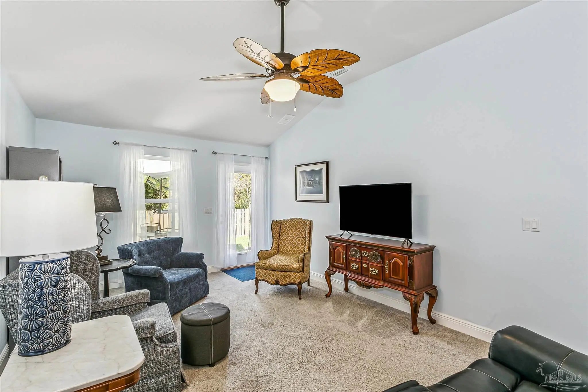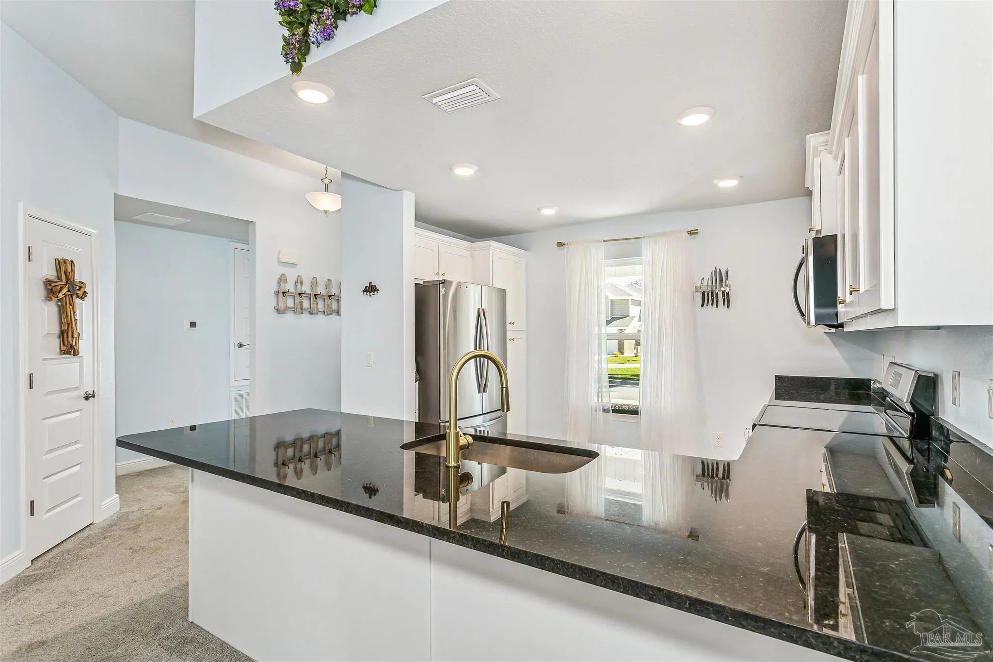 Welcome to this beautifully maintained, move-in ready home ideally located just 10 minutes from NAS Pensacola and Corry Station, and only 20 minutes to downtown Pensacola. Offering both convenience and comfort, this home is perfect for a variety of buyers. Step inside to a bright, open-concept floor plan with a well-appointed kitchen situated at the front of the home. The kitchen features granite countertops, white solid wood cabinetry, SS appliances (range, dishwasher, microwave), & a breakfast bar that opens seamlessly to the dining & living areas—perfect for daily living & entertaining. The split floor plan provides privacy, w the spacious primary suite located off the living room. The primary bedroom offers a tray ceiling, ceiling fan, and a generous walk-in closet. The en-suite bath includes a dble vanity and a tub/shower combo. Two additional bedrooms are positioned at the front of the home, along with a full guest bath and conveniently located laundry room. Interior features include durable luxury vinyl plank flooring in wet areas, comfortable carpeting throughout the main living spaces & bedrooms and impact rated front door, several impact windows and hurricane coverings for the other openings. Step outside to enjoy your private, fully fenced backyard designed for both relaxation & enjoyment. The outdoor space includes an open patio ideal for gatherings, a flower bed filled with numerous rose bushes, two bird feeders that attract local wildlife, and a new storage building perfect for lawn equipment and tools. Mature shade trees along the rear property line provide added privacy and a peaceful natural setting. This home combines thoughtful design, functional living space, and a great location—schedule your private showing today!