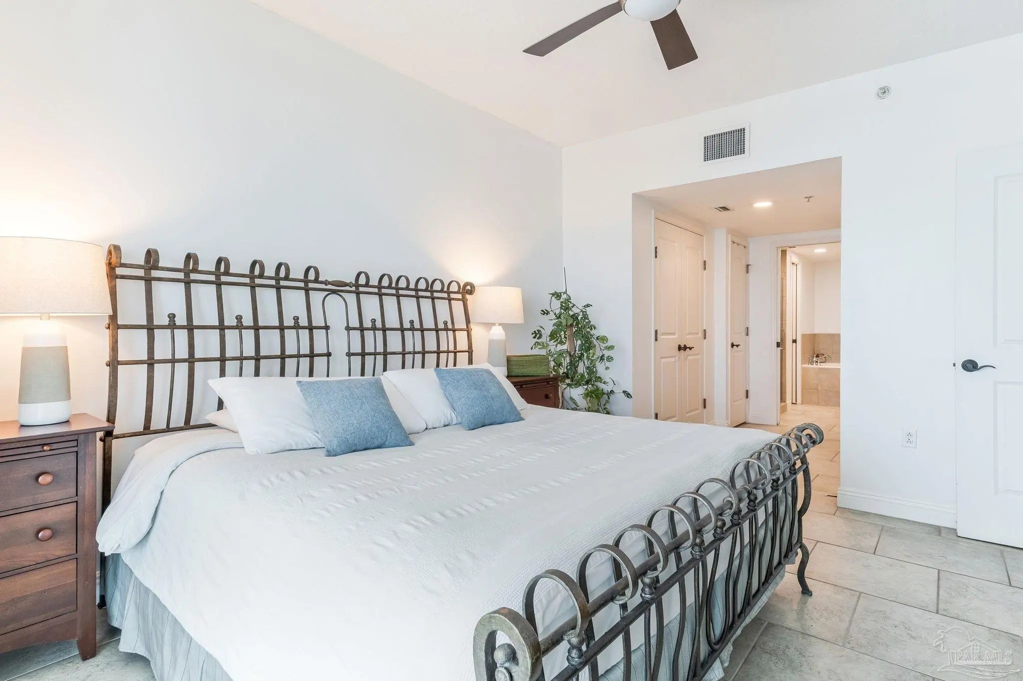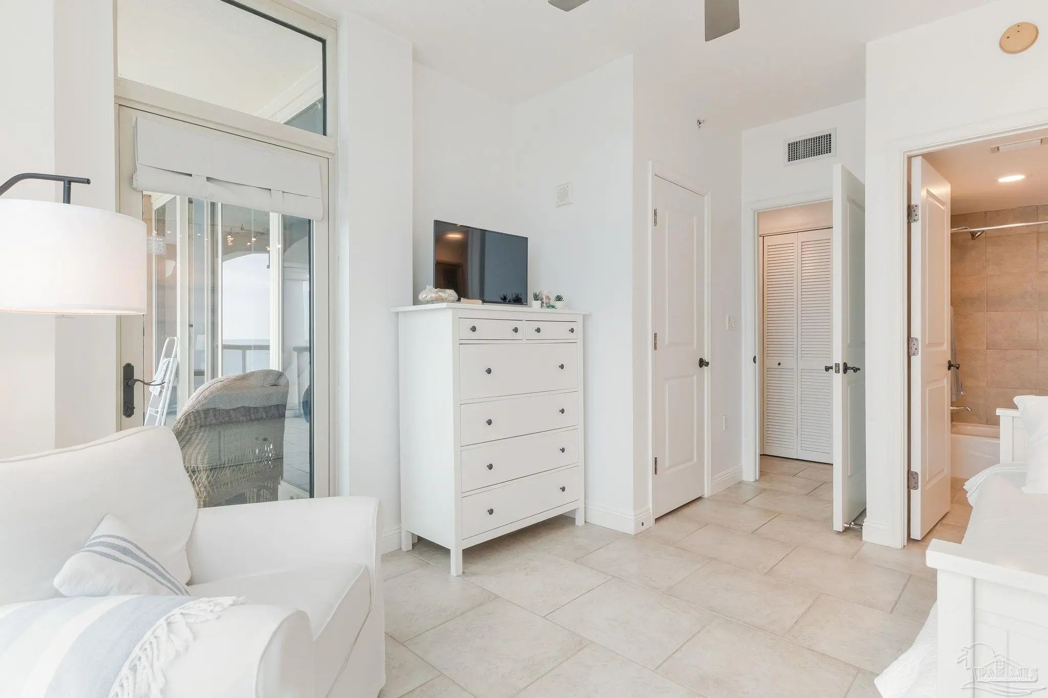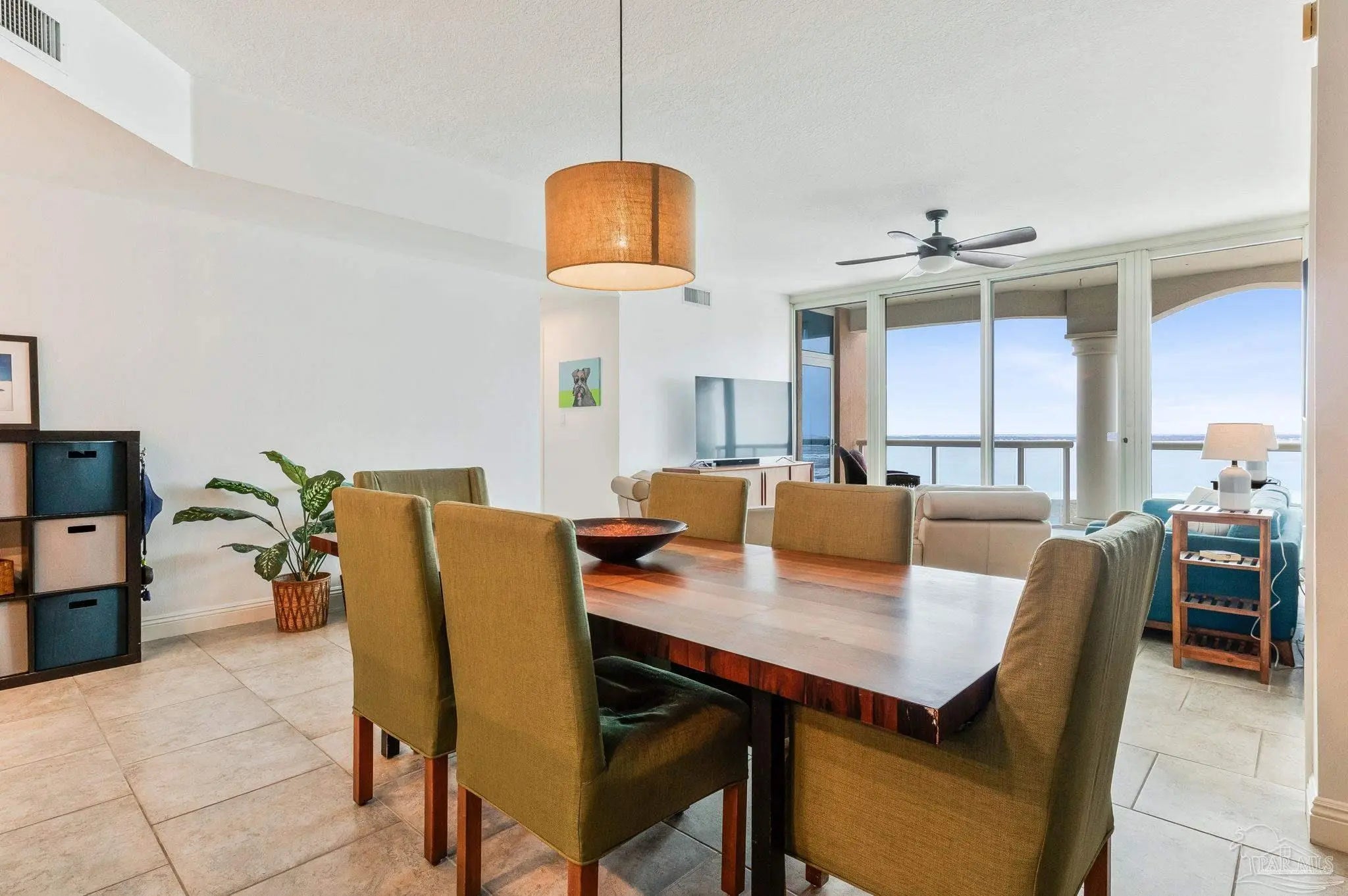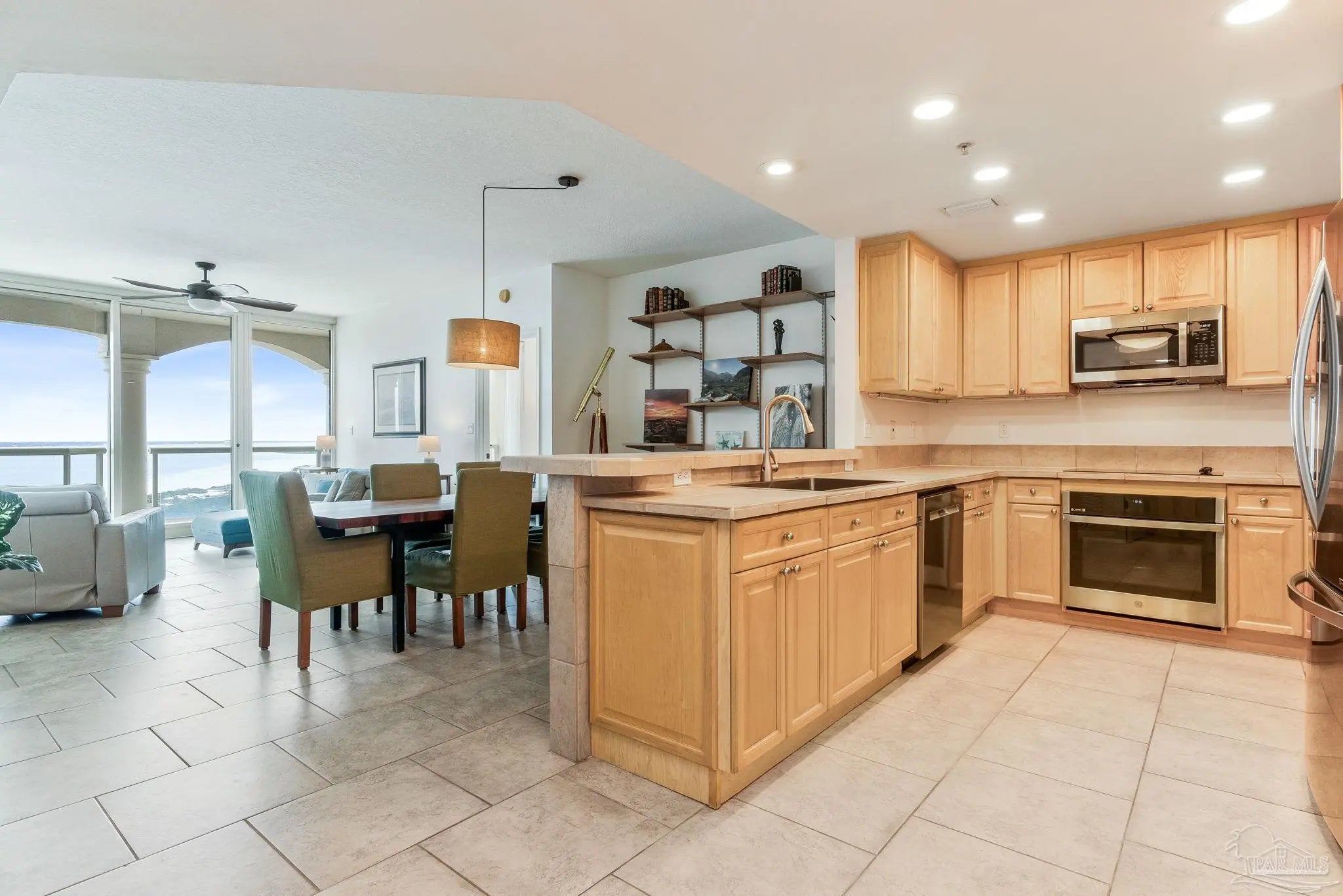 Perched on the 17th floor of Tower 2, this Portofino “Sky Home” offers a commanding presence above Pensacola Beach with sweeping, unobstructed views of both the Gulf of Mexico and Santa Rosa Sound. From sunrise over the tranquil Sound to sunset across the emerald coastline, the ever-changing water views create a truly elevated coastal experience. Inside, the residence is designed to feel open, refined, and effortlessly livable. A spacious, light-filled living area flows seamlessly to an expansive private balcony, where indoor and outdoor living blend together. Floor-to-ceiling glass captures the natural beauty from nearly every angle, while clean lines and a coastal palette create a relaxed yet sophisticated atmosphere. The kitchen is both functional and inviting, featuring generous cabinetry, solid surface countertops, and a breakfast bar that connects to the main living space—ideal for gathering and entertaining. Tile flooring throughout enhances durability while maintaining a cohesive, upscale aesthetic. The primary suite is a private retreat with direct balcony access and water views, complemented by a well-appointed bath with double vanities, soaking tub, and separate shower. A guest suite with its own bath offers comfort and privacy, while an additional half bath serves the main living area. Portofino Island Resort is synonymous with resort-style living, offering a gated environment with pools, a full fitness and lifestyle center, spa services, tennis facilities, on-site dining, and access to both the Gulf and Sound. Positioned on the quieter east end of Pensacola Beach, it provides a balance of privacy and convenience. This is a rare opportunity to own a high-floor residence in one of the area’s most sought-after coastal communities—ideal for a primary home, refined second residence, or luxury investment. This unit includes TWO deeded parking spaces and an additional storage area.