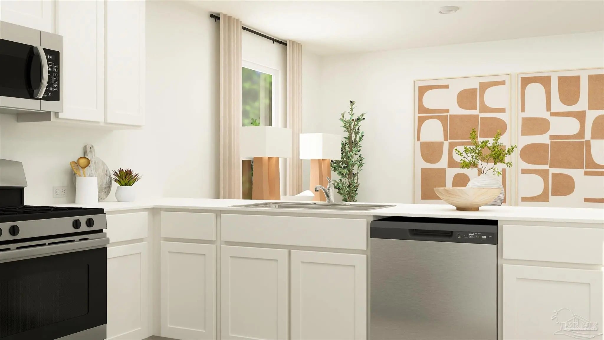 The Bonds floor plan offers a beautifully crafted single-story layout designed for effortless modern living. At the front of the home, a collection of well-appointed bedrooms provides comfort, privacy, and versatility, perfect for family members, guests, or a home office. From the entryway, the home opens into a spacious open-concept living area where the kitchen, dining space, and family room blend seamlessly, creating an inviting atmosphere for gathering, entertaining, or everyday relaxation. The kitchen features quartz countertops, stainless steel appliances, and 42' cabinets for both style and functionality. Nestled in its own private corner at the back of the home, the elegant owner's suite serves as a peaceful retreat with a well-appointed bathroom and a roomy walk-in closet.