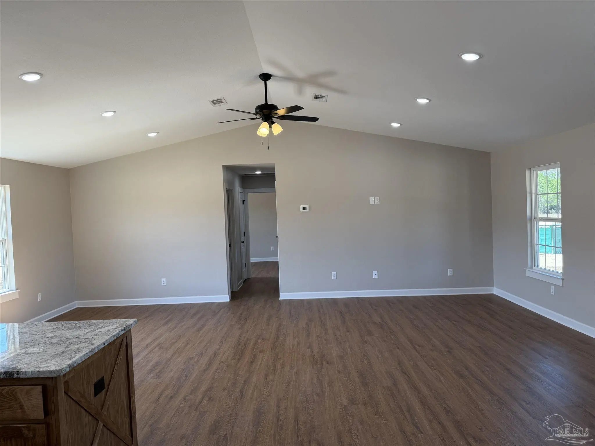 - Baseboards, Cathedral Ceiling(s), Ceiling Fan(s), Recessed Lighting