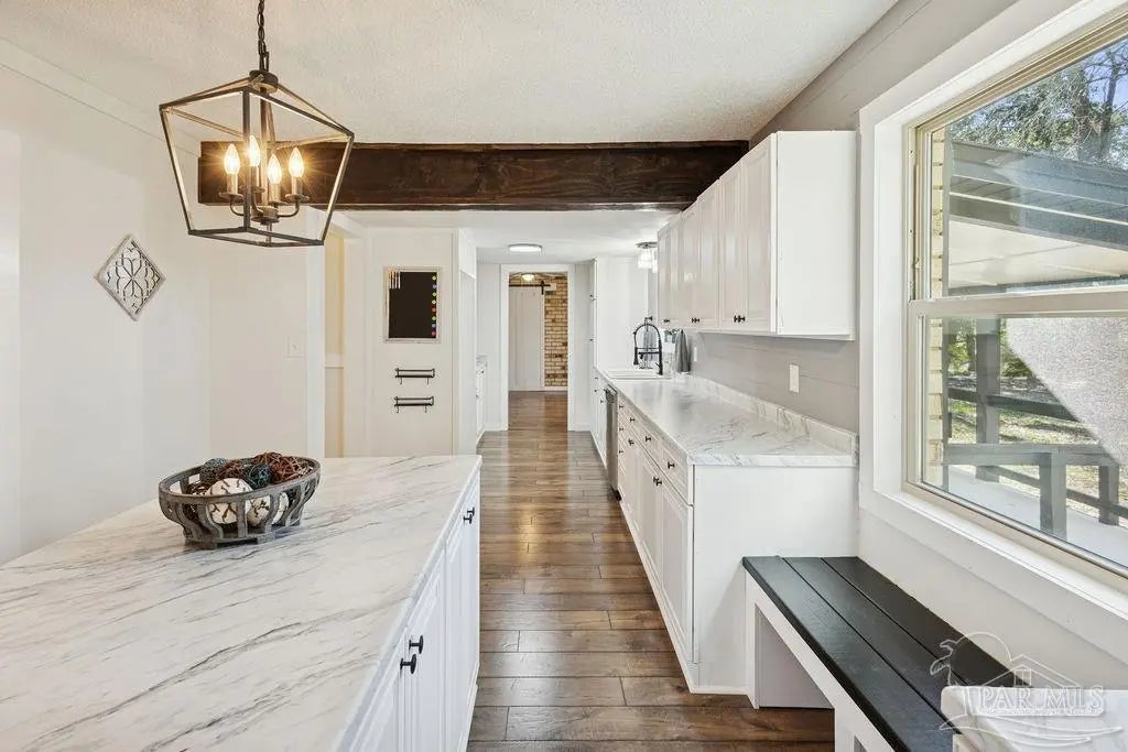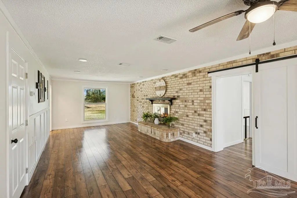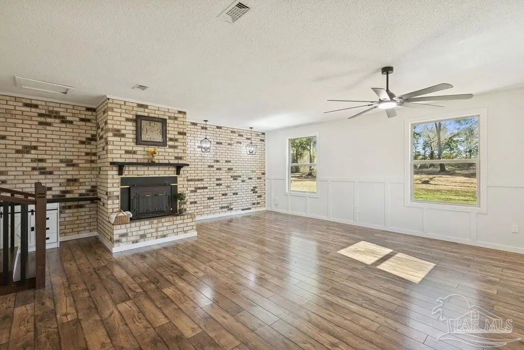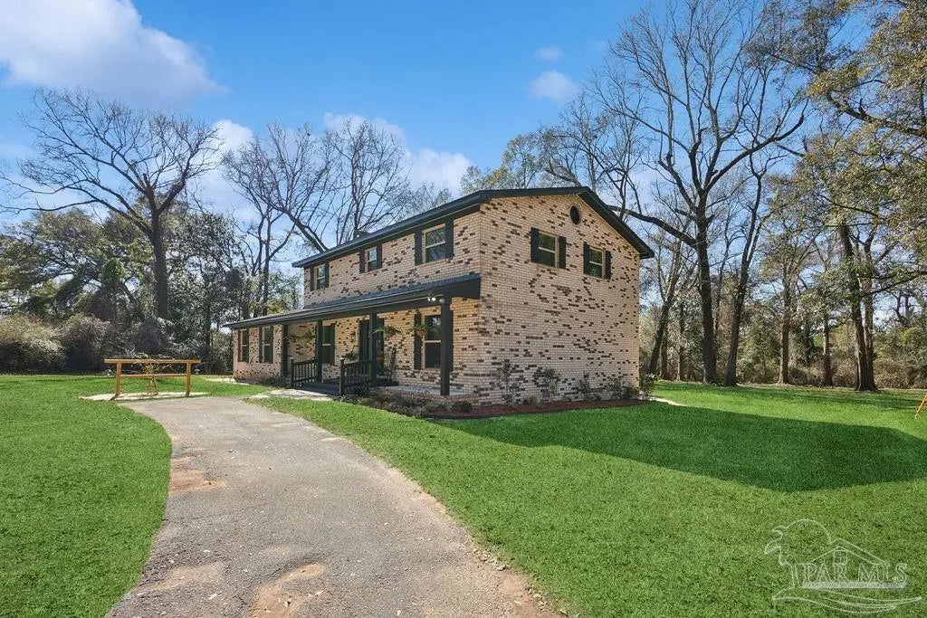 Fully renovated 3,190 sq ft all-brick home situated on 2.3 private acres in Chumuckla, FL. Renovated top to bottom, this property offers space, flexibility, and major system updates for true move-in-ready living. Inside, you’ll find engineered laminate flooring, two spacious living areas downstairs, and two back-to-back fireplaces that create warmth and character between the main gathering spaces. The large, centrally located kitchen flows seamlessly into a spacious formal dining room, ideal for entertaining or hosting family gatherings. A convenient half bath is located off the main hallway for guests. Upstairs features four bedrooms and two full bathrooms, offering a functional layout with sleeping quarters separate from the main living areas. The downstairs secondary living area offers excellent flexibility and could easily be converted into a primary suite with a full bath if desired, making this home suitable for multi-generational living or a first-floor master option. The oversized mudroom/laundry room provides additional storage and practicality. Major upgrades include a brand-new roof, new heat pump, all new HVAC units (inside and out), new electrical panel, and brand-new windows. Step outside to a covered back porch overlooking the quiet backyard — the perfect place to unwind and enjoy the peaceful setting. With 2.3 acres of usable land and a fully updated brick exterior, this property offers the best of country living with room to grow.