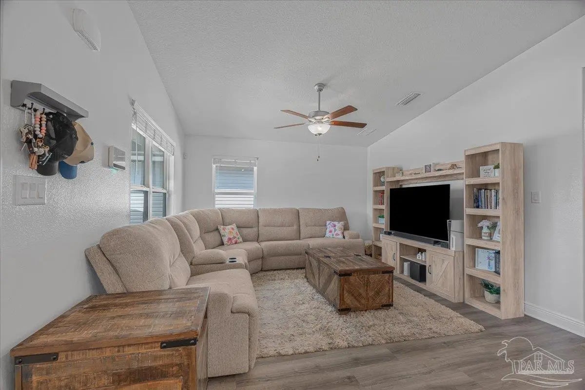 Beautifully maintained LIKE-NEW 2022 HOME featuring 3-bedroom, 2-bath with upgrades that go well beyond standard builder-grade. From the moment you walk in, you’ll notice the high-quality PERGO flooring throughout the main living areas, giving the home a more elevated feel. The interior has been refreshed with modern paint tones, creating a clean, bright, and inviting space. The open layout is perfect for everyday living and entertaining, with a spacious living room featuring vaulted ceilings, RECESSED LIGHTING, and plenty of natural light. The kitchen comes equipped with STAINLESS STEEL appliances and flows seamlessly into the main living areas, making gatherings easy and comfortable. The primary suite offers coffered ceilings and a private bath, while the additional bedrooms are well-sized and share a conveniently located hallway bath. The fully fenced backyard provides plenty of space for kids, pets, or entertaining, and includes a storage shed for added convenience. This home also includes valuable upgrades like an enhanced grinder pump, gutters, and proper drainage for peace of mind. The solar system (to be assumed) offers improved efficiency with a current monthly payment of $116 + $30 meter fee, helping reduce overall utility costs. With low HOA dues, modern upgrades already completed, and a location that balances convenience with privacy, this home stands out as a true move-in ready opportunity. Call today to schedule your private showing!