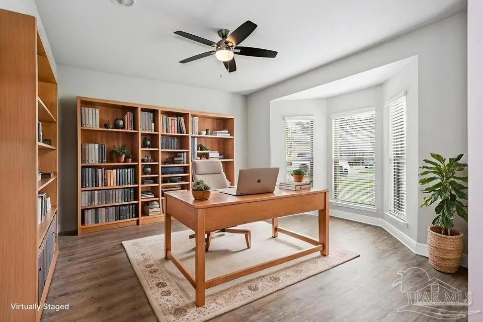 - Baseboards, Ceiling Fan(s), High Ceilings, Office/Study