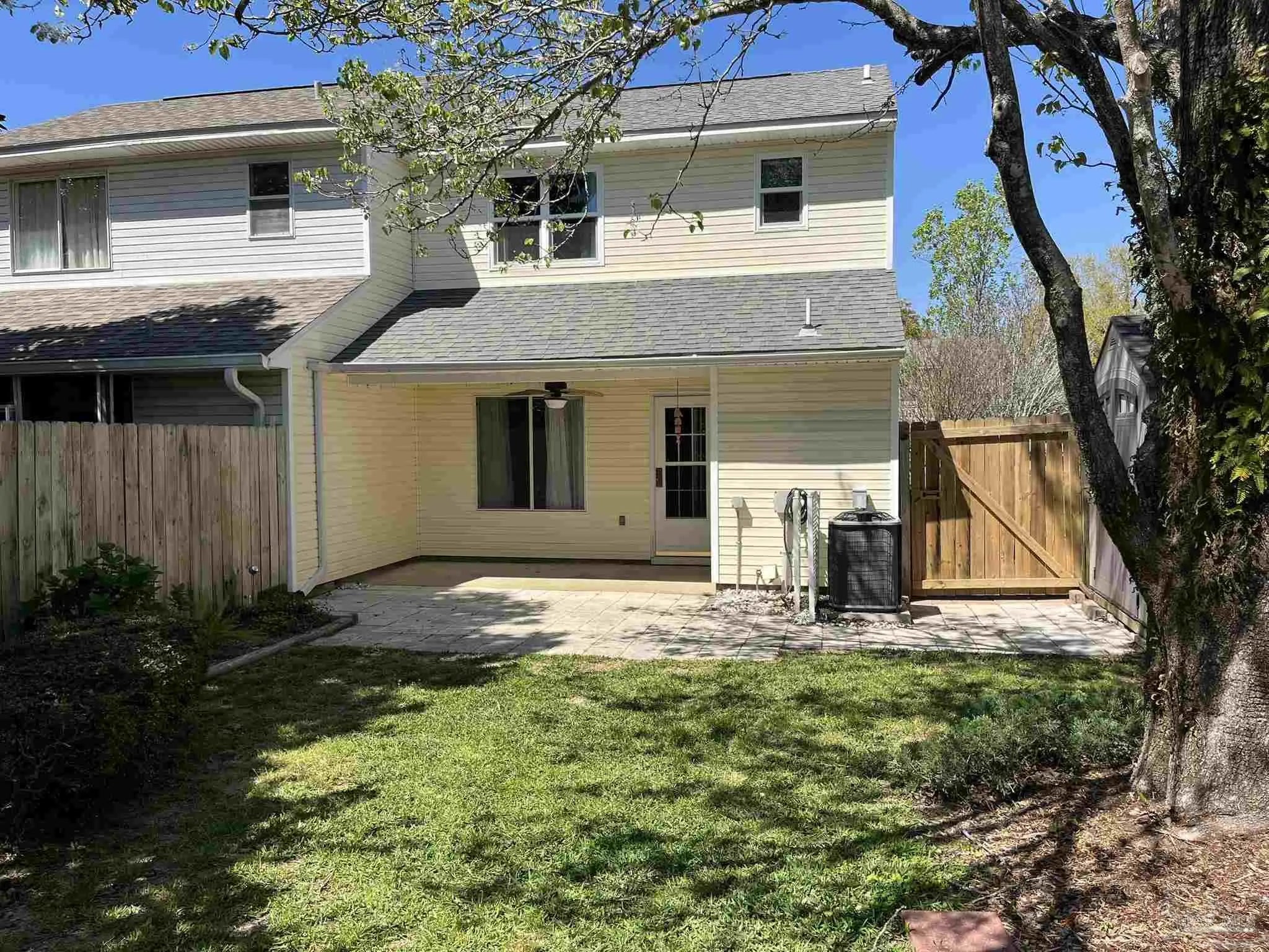 Charming 2-bedroom, 2-bath townhome with a spacious loft—perfect as a home office, guest area, or flex space. The main level features a bright, open living area with vaulted ceilings, low-maintenance vinyl plank flooring, and a large transom window that fills the space with natural light. The eat-in kitchen offers modern appliances, a pantry, and ample room for a dining table, along with additional storage under the stairs. The downstairs bedroom includes an oversized closet and private access to the fenced backyard, complete with a covered patio, storage building, and a beautiful shade tree—ideal for relaxing or entertaining. Upstairs, the expansive loft overlooks the living area below, creating an airy, open feel. The primary bedroom features a private full bath, oversized closet, and peaceful backyard views. Conveniently located near shopping and dining—including walking distance to the new Aldi—plus Tiger Point Golf Course and The Pointe restaurant. Just a short 15–20 minute drive to Pensacola Beach and historic downtown Pensacola. Don’t miss this great opportunity—schedule your showing today!