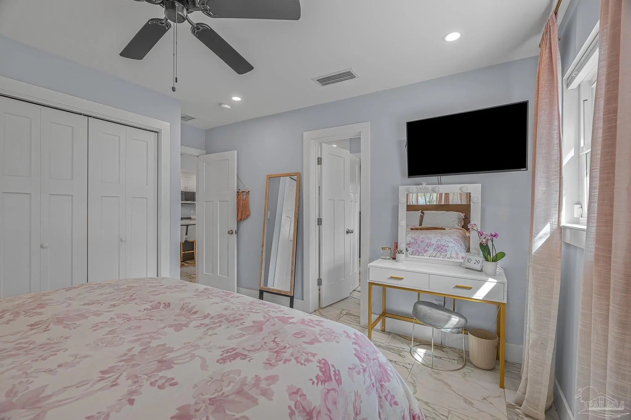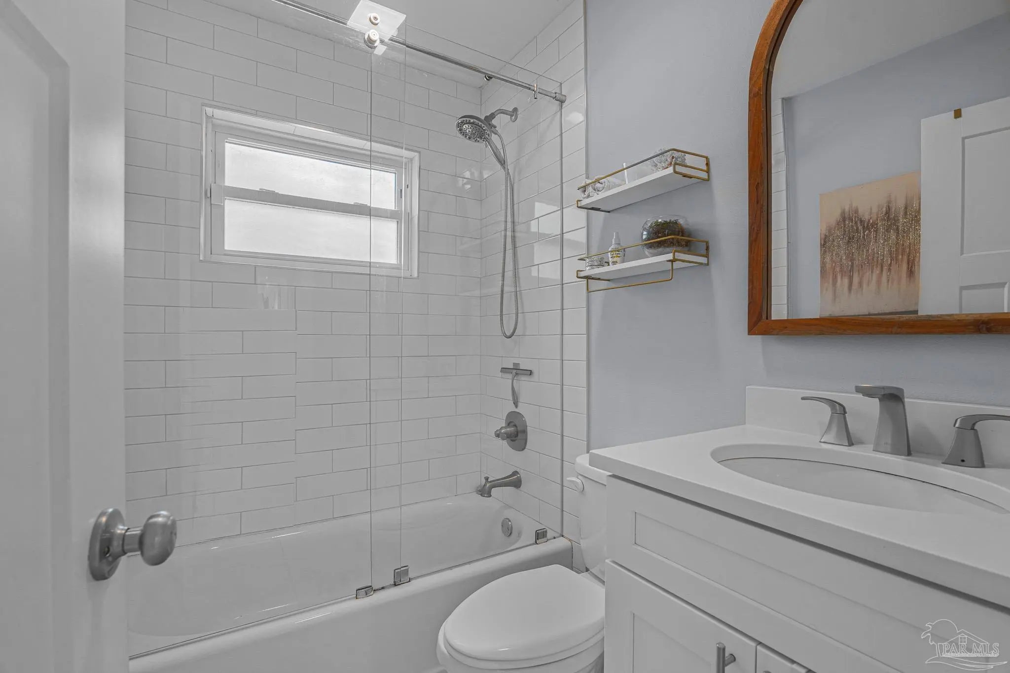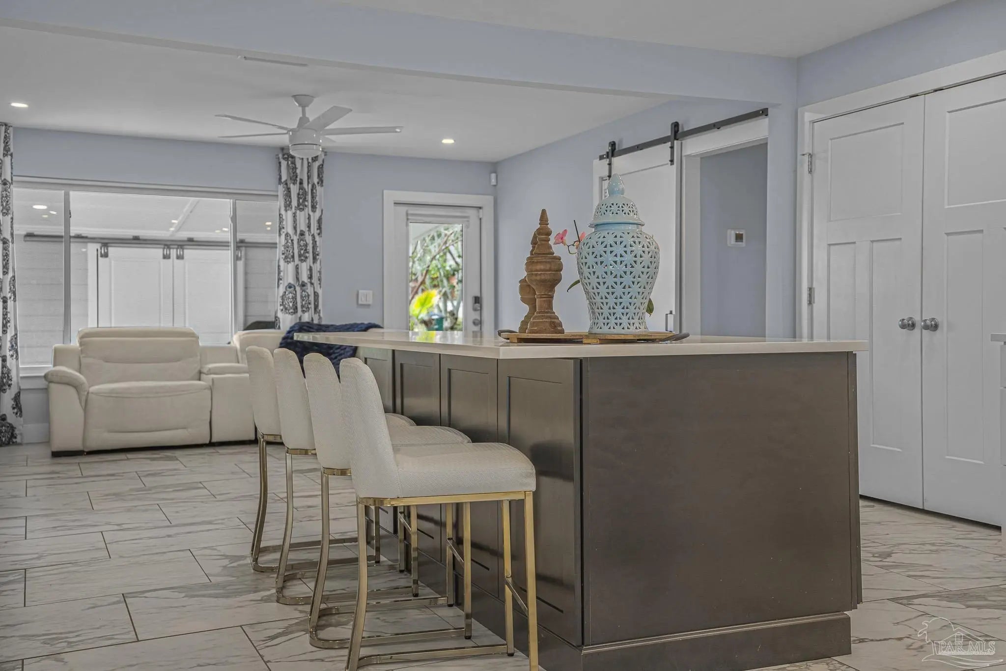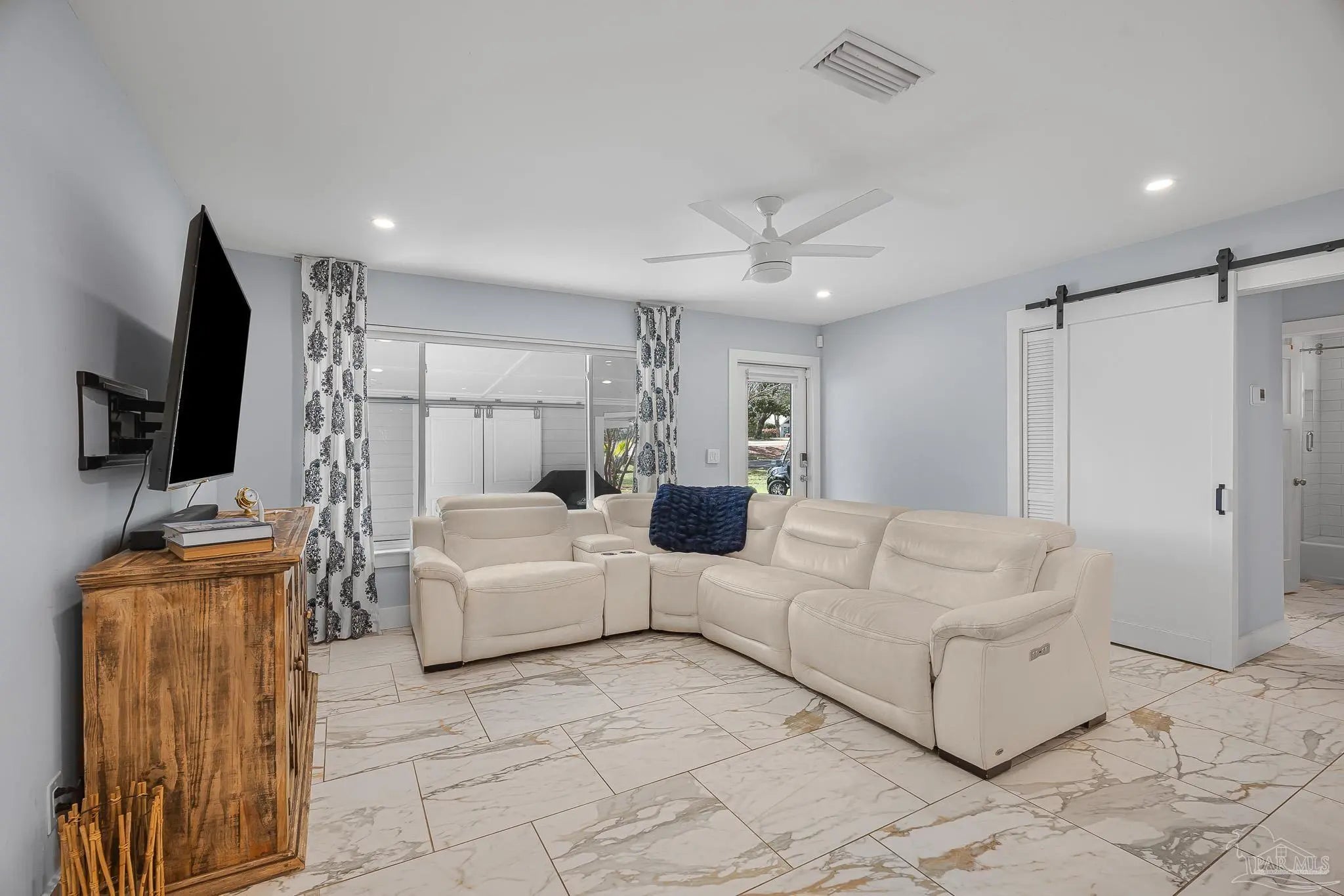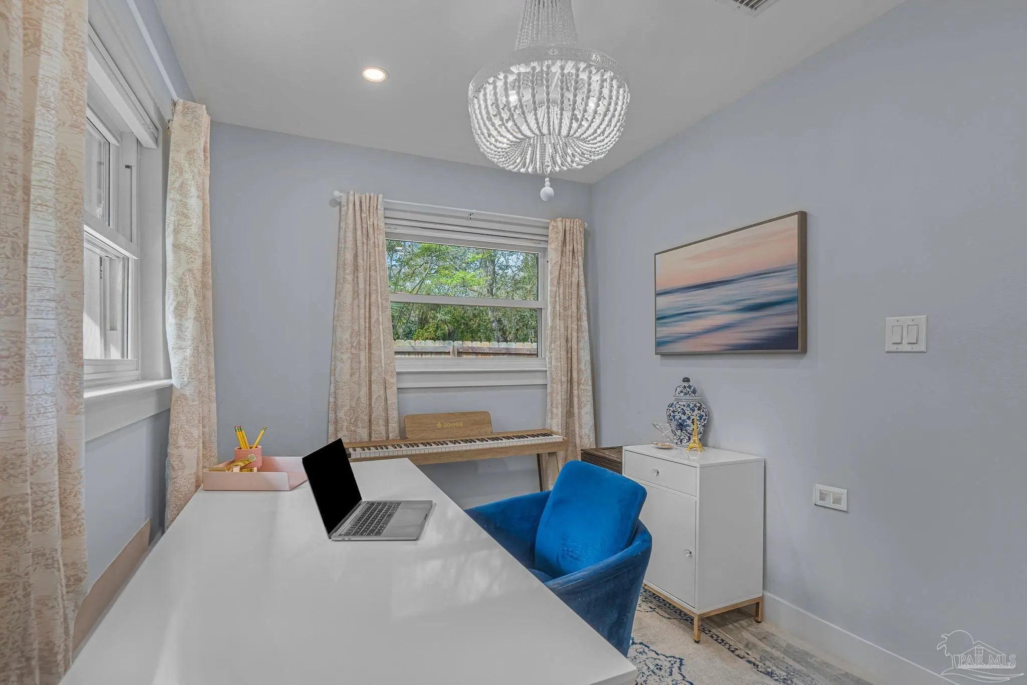 Enjoy coastal living in this well-maintained 4 bedroom, 2 bathroom ranch-style home featuring an open floor plan and tile flooring throughout for easy maintenance. The kitchen offers a center island, stainless steel appliances, and white solid wood cabinetry, flowing seamlessly into a sitting room or formal dining area filled with natural light. The primary suite includes an adjoining bathroom with a tiled walk-in shower, while the additional bedrooms provide flexibility for guests or office space. Step outside to a private patio and fully fenced backyard with extra lot space perfect for boat parking or additional storage. Conveniently located in Gulf Breeze, this property offers quick access to the white sand beaches of Pensacola Beach, nearby parks like Shoreline Park, top-rated schools, shopping, and dining, making it an ideal opportunity for full-time living or a coastal retreat.