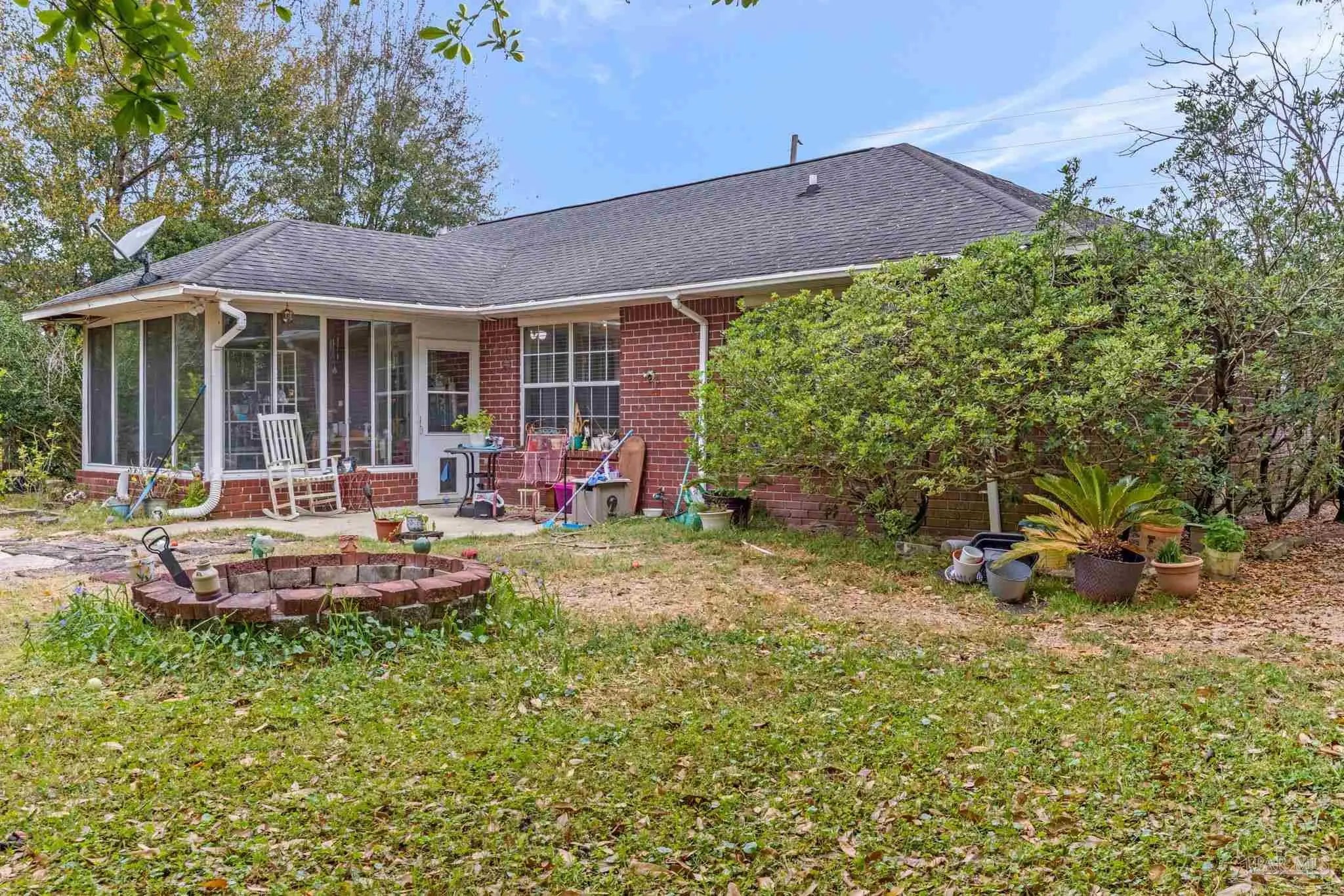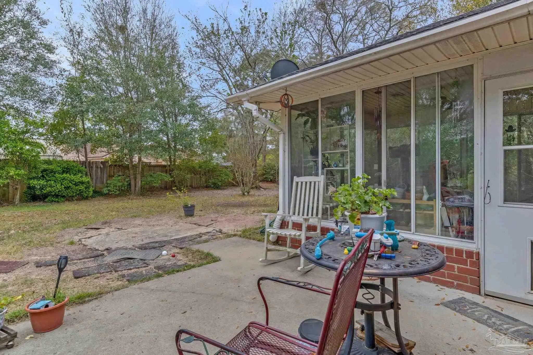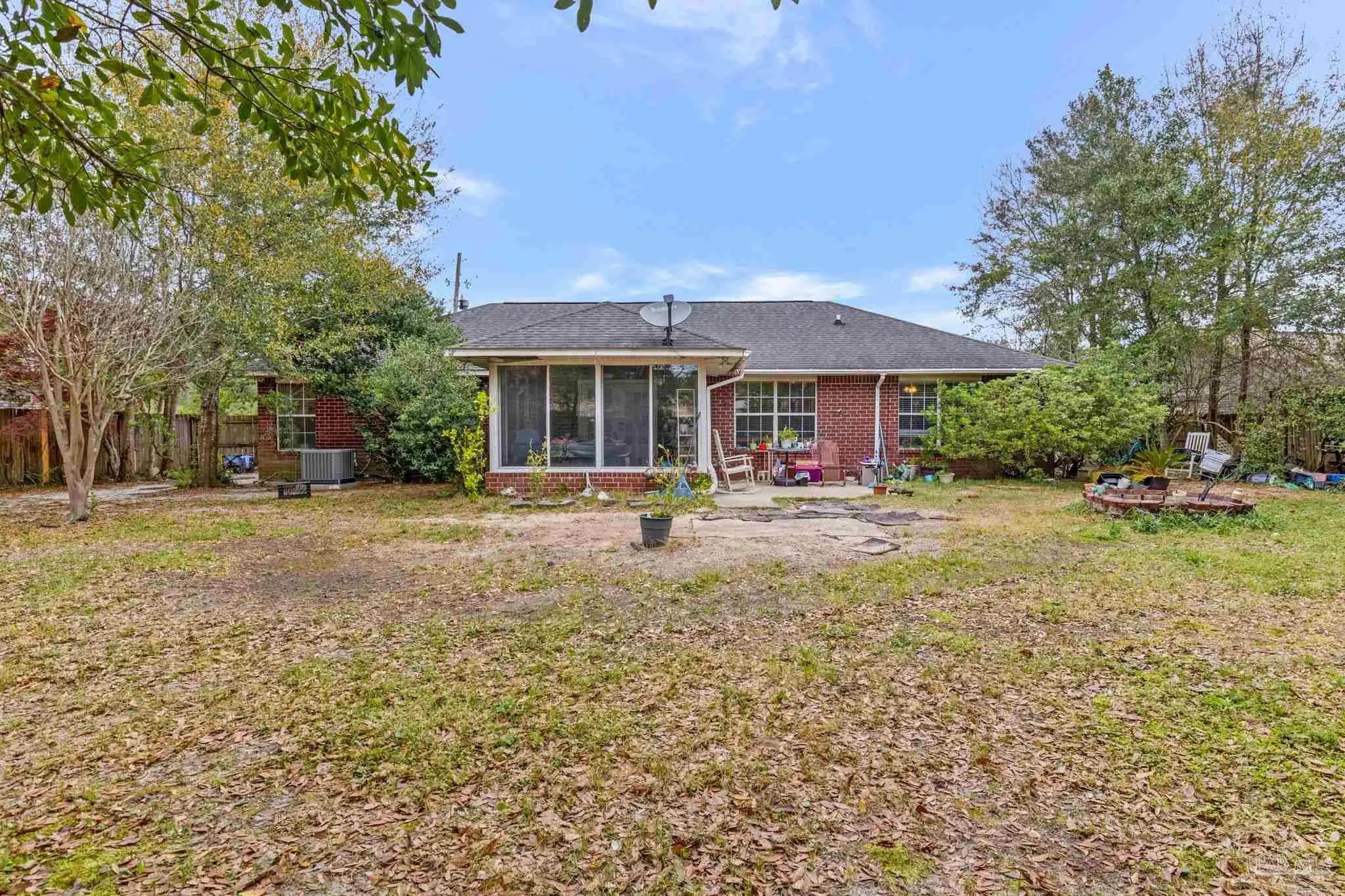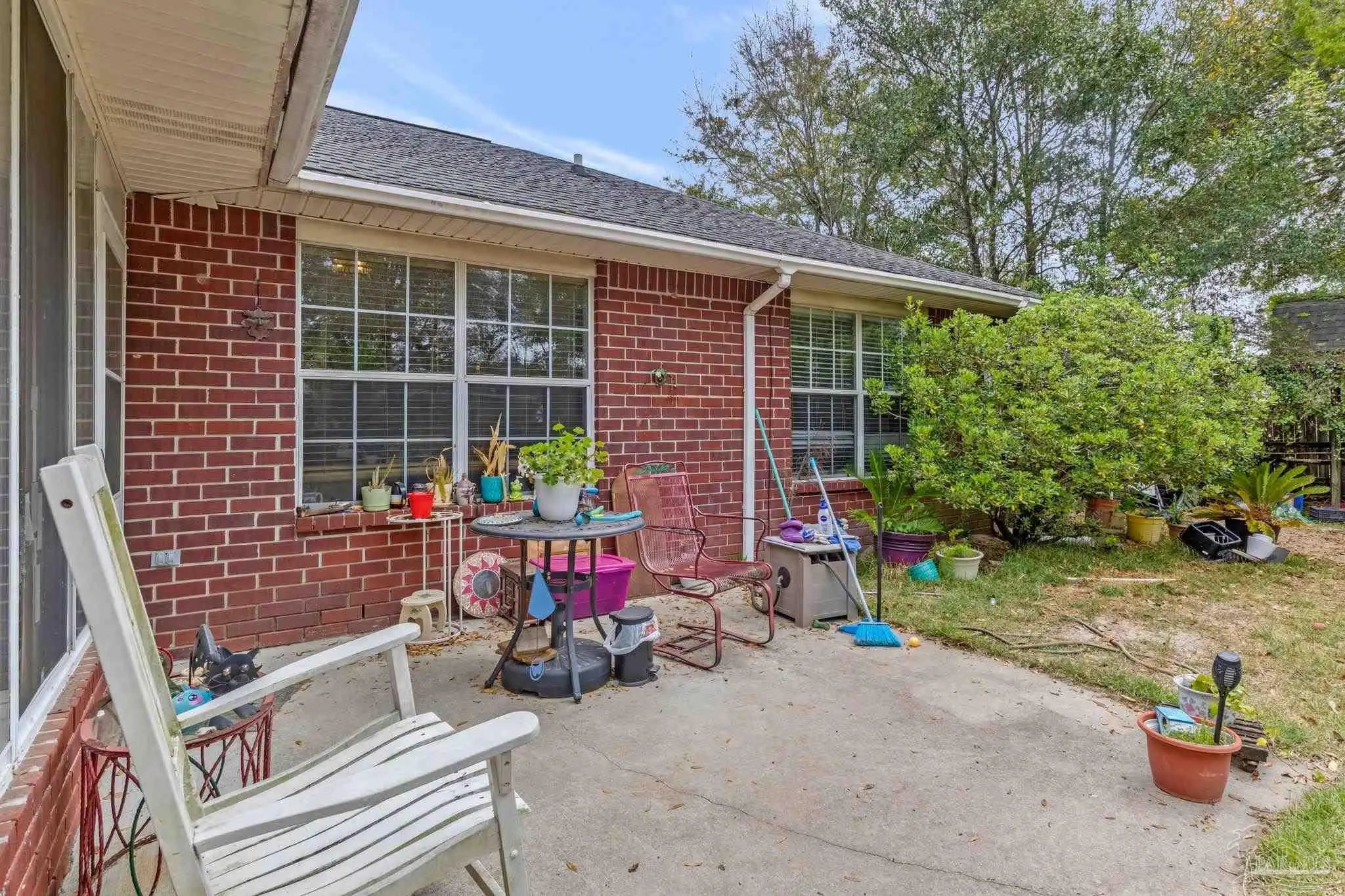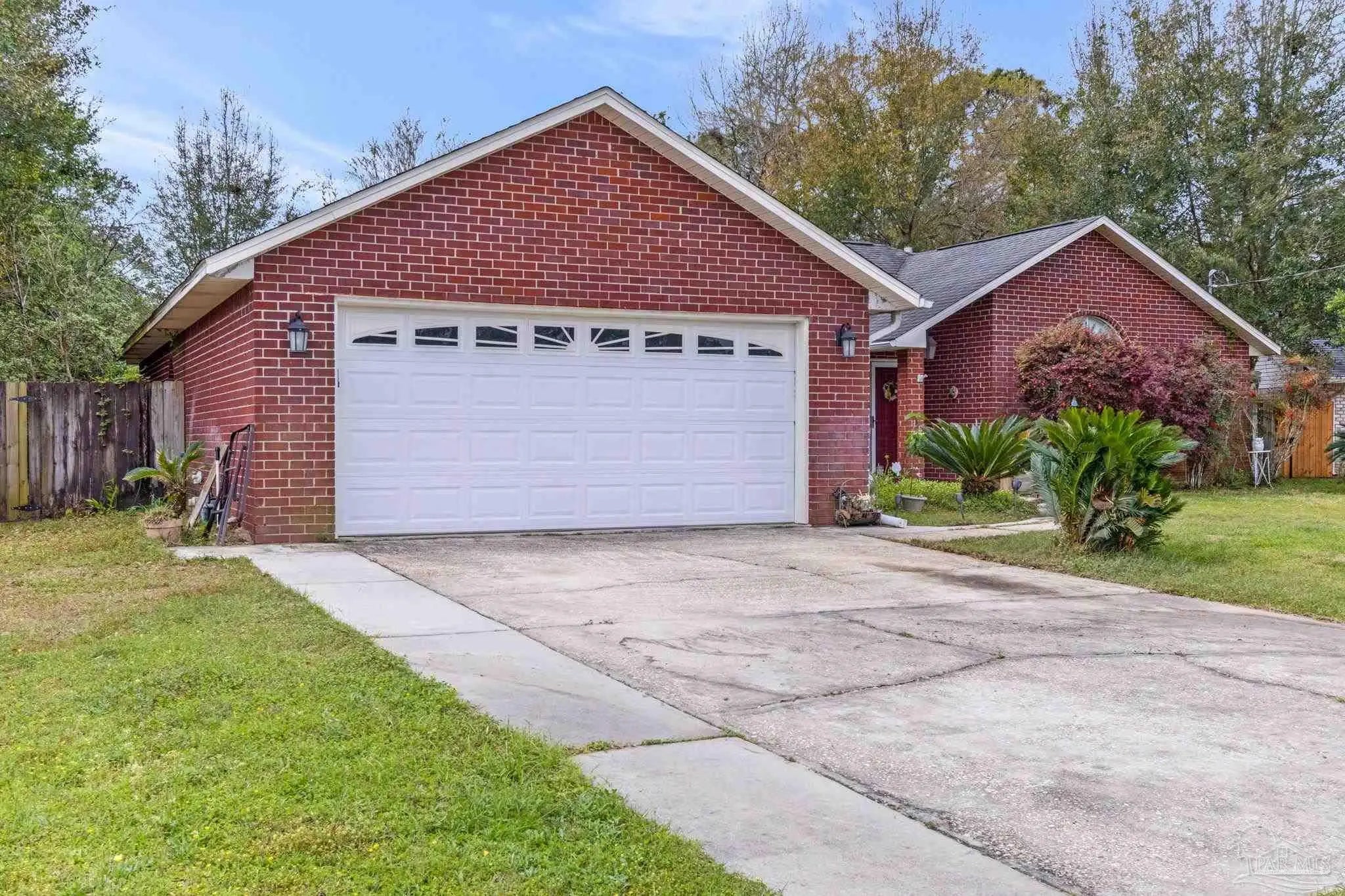 This well-maintained, all-brick home offers 3 bedrooms, 2 bathrooms, and 1,780 square feet, set on just under a third of an acre in the Marion Oaks subdivision of West Pensacola. Inside, the spacious living area features a mix of wood-look flooring and tile, centered around a built-in entertainment feature that adds both function and character. The kitchen offers ample counter space, a breakfast nook with bay window, and an adjoining dining area ideal for everyday living and gathering. The split floor plan provides privacy, with the primary suite tucked away and featuring a walk-in closet and an ensuite bath with a garden tub and separate shower. Two additional bedrooms and a full guest bath are positioned on the opposite side of the home. A standout feature is the fully enclosed, heated and cooled Florida room - perfect as a second living space, home office, or flexible bonus area. Outside, the fully fenced backyard offers plenty of room to spread out, complete with a storage building and irrigation in both the front and back yard. A two-car garage adds convenience and additional storage. Located just minutes from NAS Pensacola, Corry Station, Perdido Key, and downtown, this home combines space, durability, and a highly convenient location. Schedule your private showing today to experience it for yourself.