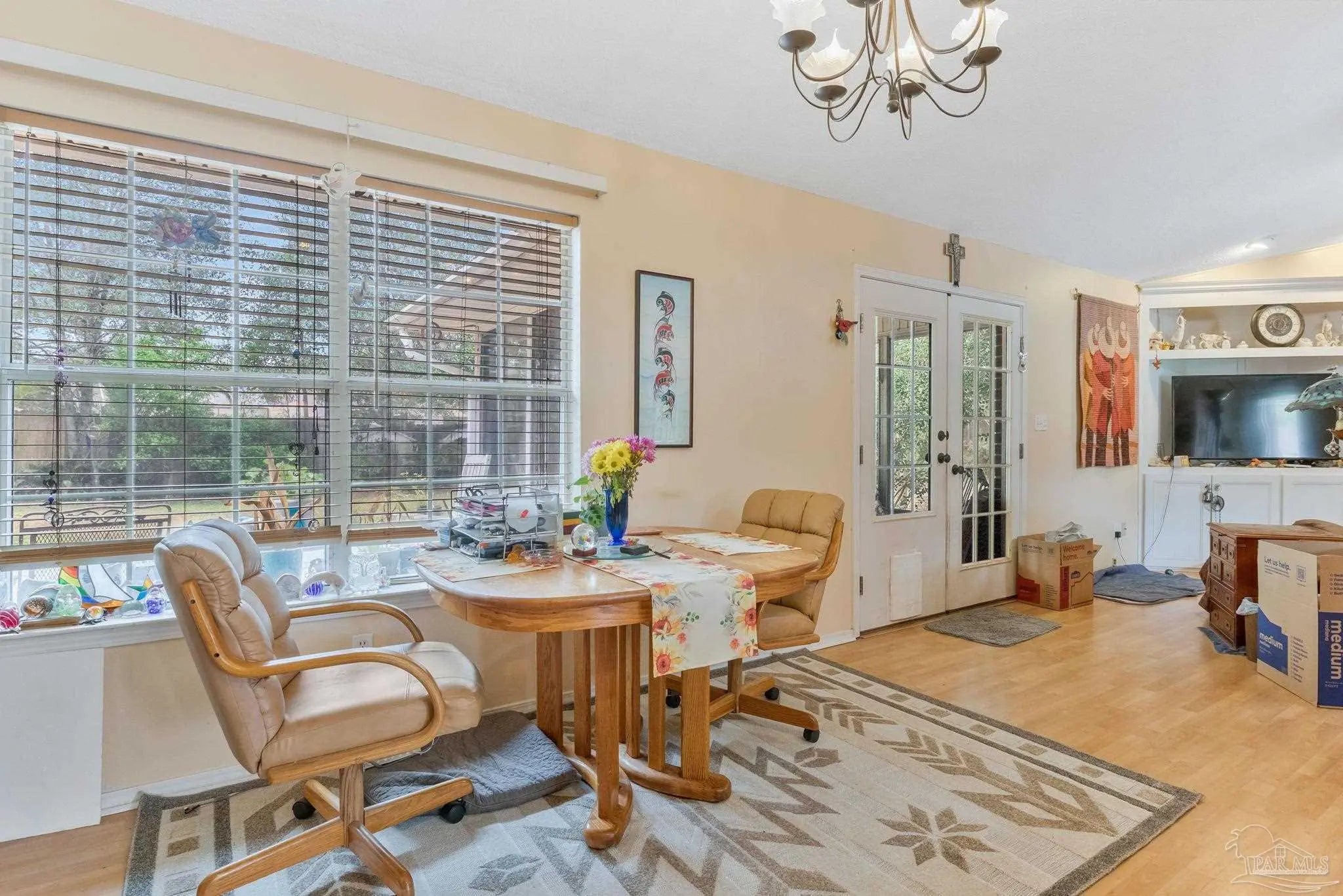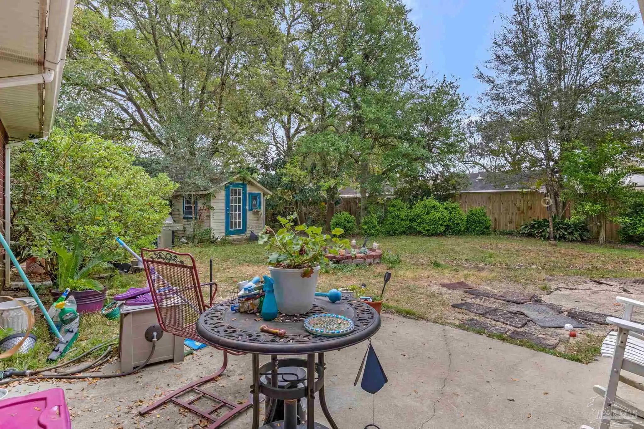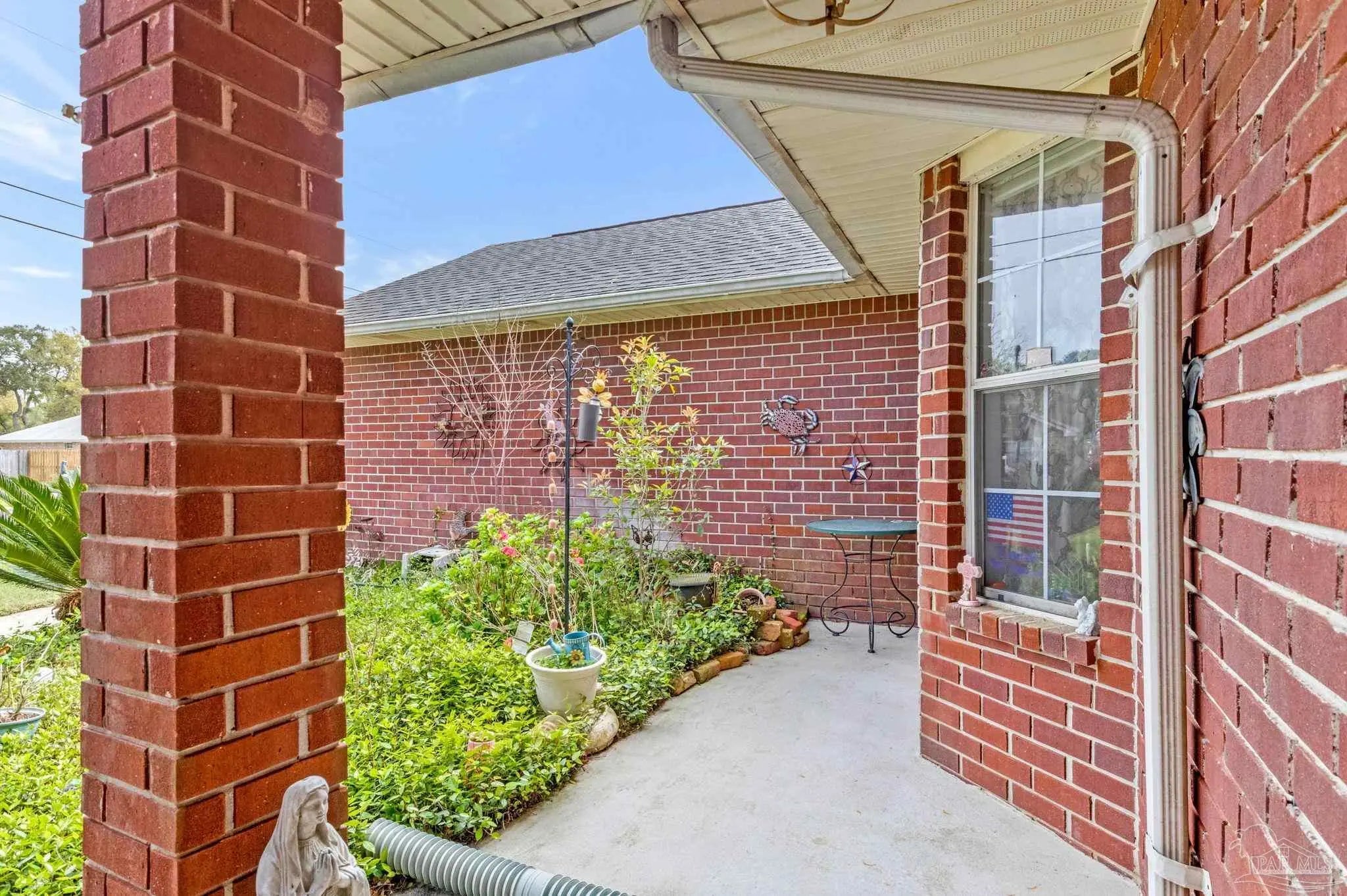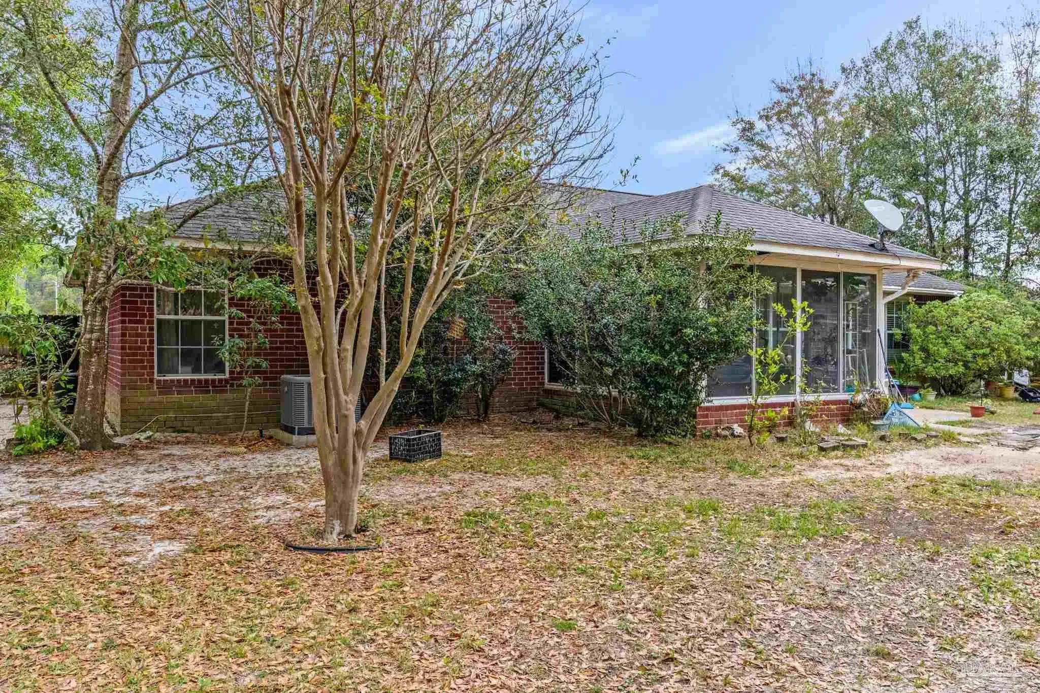 This well-maintained, all-brick home offers 3 bedrooms, 2 bathrooms, and 1,780 square feet, set on just under a third of an acre in the Marion Oaks subdivision of West Pensacola. Inside, the spacious living area features a mix of wood-look flooring and tile, centered around a built-in entertainment feature that adds both function and character. The kitchen offers ample counter space, a breakfast nook with bay window, and an adjoining dining area ideal for everyday living and gathering. The split floor plan provides privacy, with the primary suite tucked away and featuring a walk-in closet and an ensuite bath with a garden tub and separate shower. Two additional bedrooms and a full guest bath are positioned on the opposite side of the home. A standout feature is the fully enclosed, heated and cooled Florida room - perfect as a second living space, home office, or flexible bonus area. Outside, the fully fenced backyard offers plenty of room to spread out, complete with a storage building and irrigation in both the front and back yard. A two-car garage adds convenience and additional storage. Located just minutes from NAS Pensacola, Corry Station, Perdido Key, and downtown, this home combines space, durability, and a highly convenient location. Schedule your private showing today to experience it for yourself.