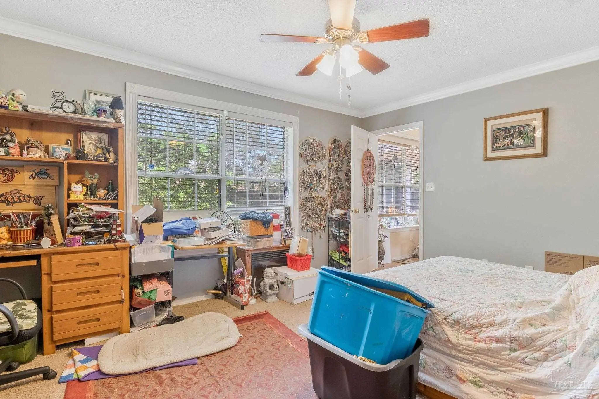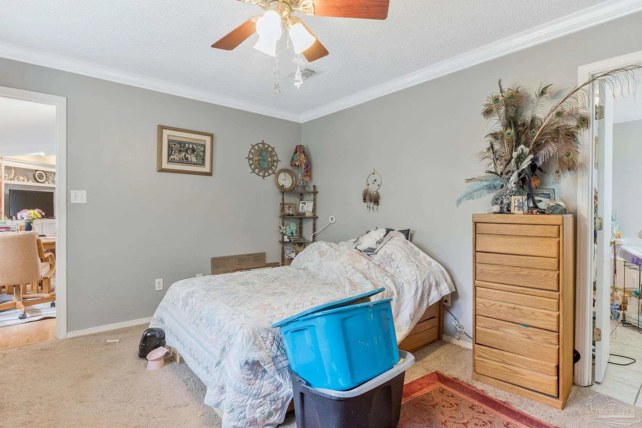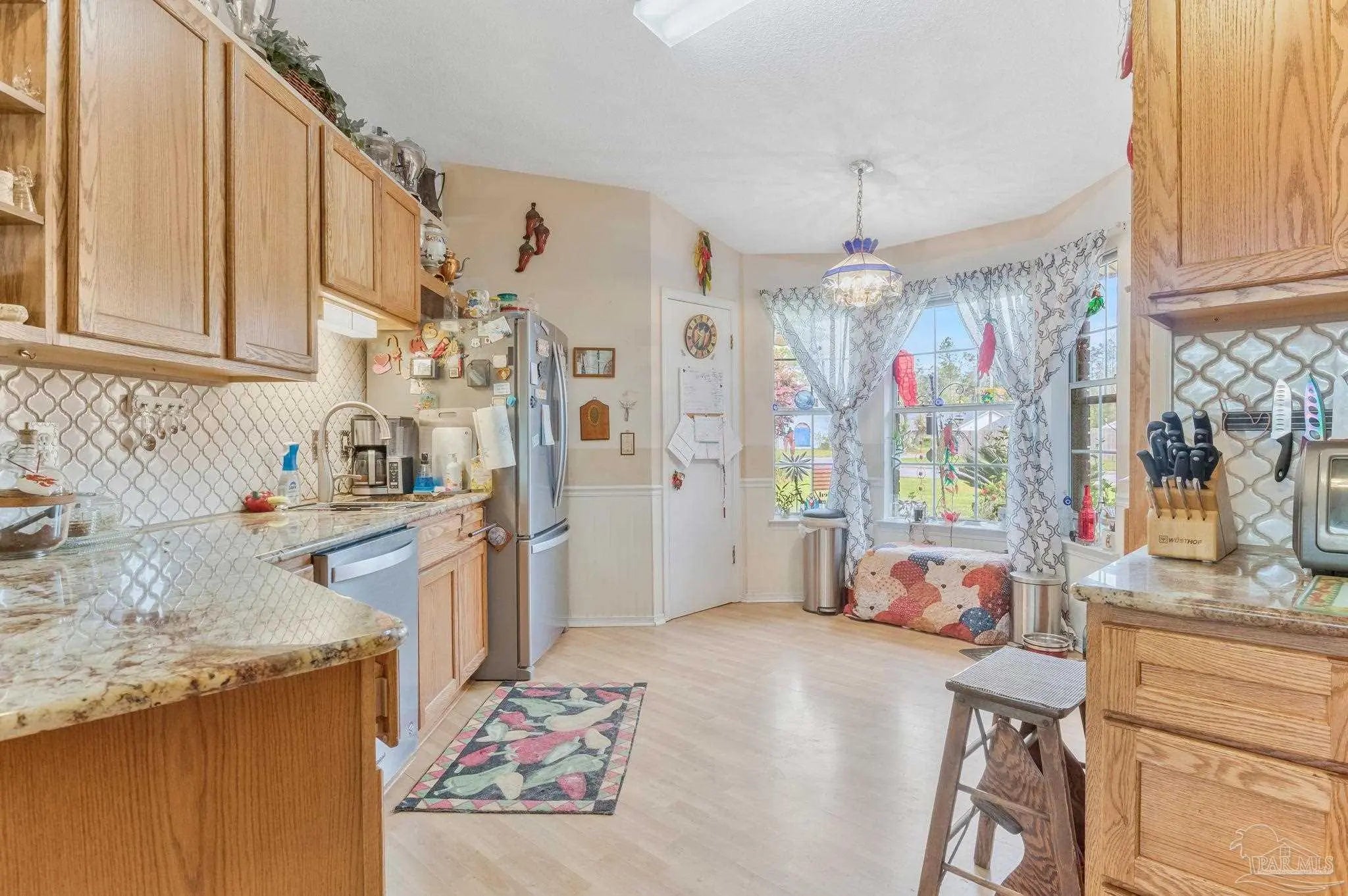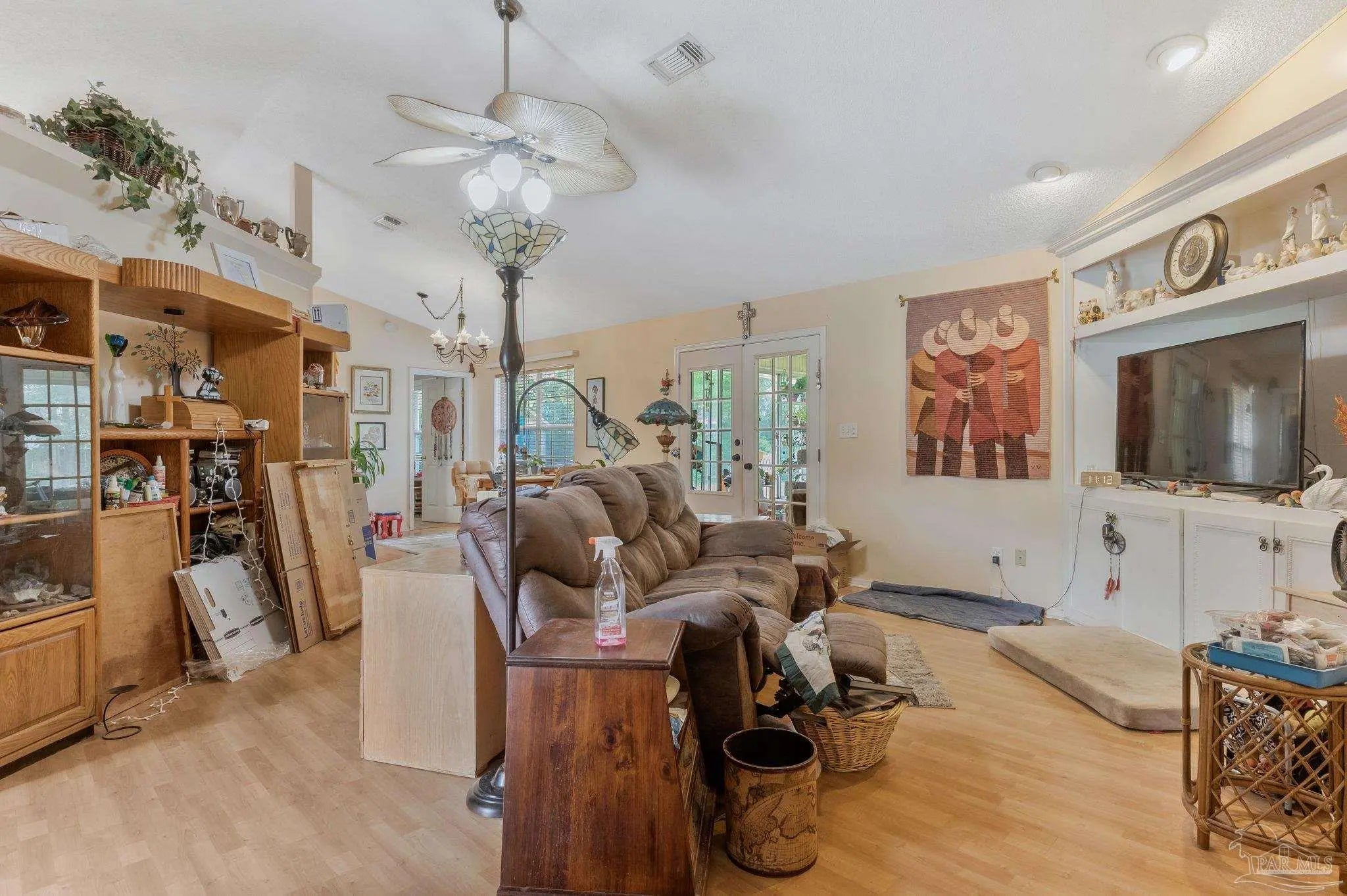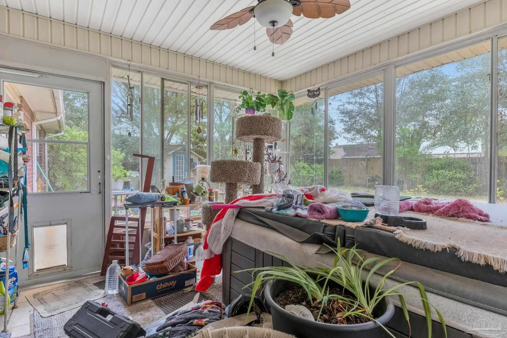 This well-maintained, all-brick home offers 3 bedrooms, 2 bathrooms, and 1,780 square feet, set on just under a third of an acre in the Marion Oaks subdivision of West Pensacola. Inside, the spacious living area features a mix of wood-look flooring and tile, centered around a built-in entertainment feature that adds both function and character. The kitchen offers ample counter space, a breakfast nook with bay window, and an adjoining dining area ideal for everyday living and gathering. The split floor plan provides privacy, with the primary suite tucked away and featuring a walk-in closet and an ensuite bath with a garden tub and separate shower. Two additional bedrooms and a full guest bath are positioned on the opposite side of the home. A standout feature is the fully enclosed, heated and cooled Florida room - perfect as a second living space, home office, or flexible bonus area. Outside, the fully fenced backyard offers plenty of room to spread out, complete with a storage building and irrigation in both the front and back yard. A two-car garage adds convenience and additional storage. Located just minutes from NAS Pensacola, Corry Station, Perdido Key, and downtown, this home combines space, durability, and a highly convenient location. Schedule your private showing today to experience it for yourself.
