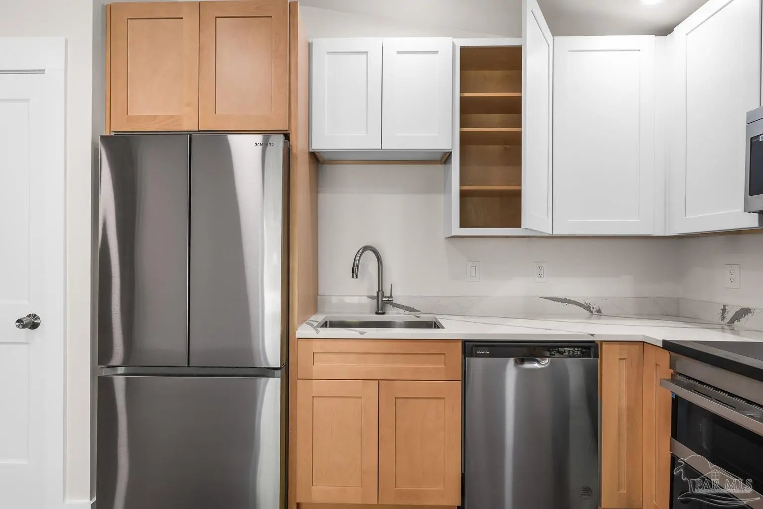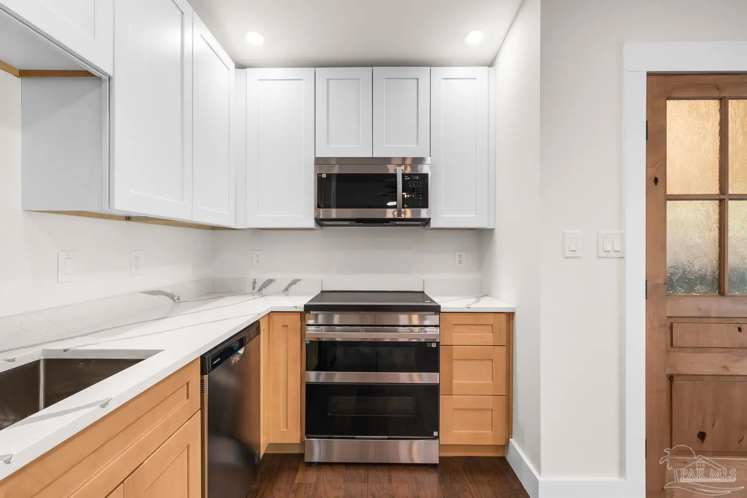 Welcome to Woodbridge Manor! This beautifully updated 2 bedroom, 2 bath home offers a perfect blend of comfort, style, and everyday ease in a central Pensacola location, just minutes from NAS Pensacola and the Blue Angels base-bringing both convenience and lifestyle together. Each bedroom has its own private bathroom, giving everyone their own space and privacy. Step inside to a bright and welcoming space that instantly feels like home. Fully updated throughout, the kitchen, bedrooms, and bathrooms showcase modern finishes, new appliances,and carefully selected improvements that enhance both style and comfort. Enjoy peaceful mornings or relaxing evenings in the spacious, fully fenced backyard, set on a generous .25-acre lot perfect for pets, gatherings, or simply unwinding in your own private retreat.Don’t miss your opportunity schedule your private showing today! Square footage, areas, and measurements are approximate and should be verified. Information and details are deemed reliable but not guaranteed and should be verified by the buyer and buyer’s agent. Buyer to verify all information during due diligence.