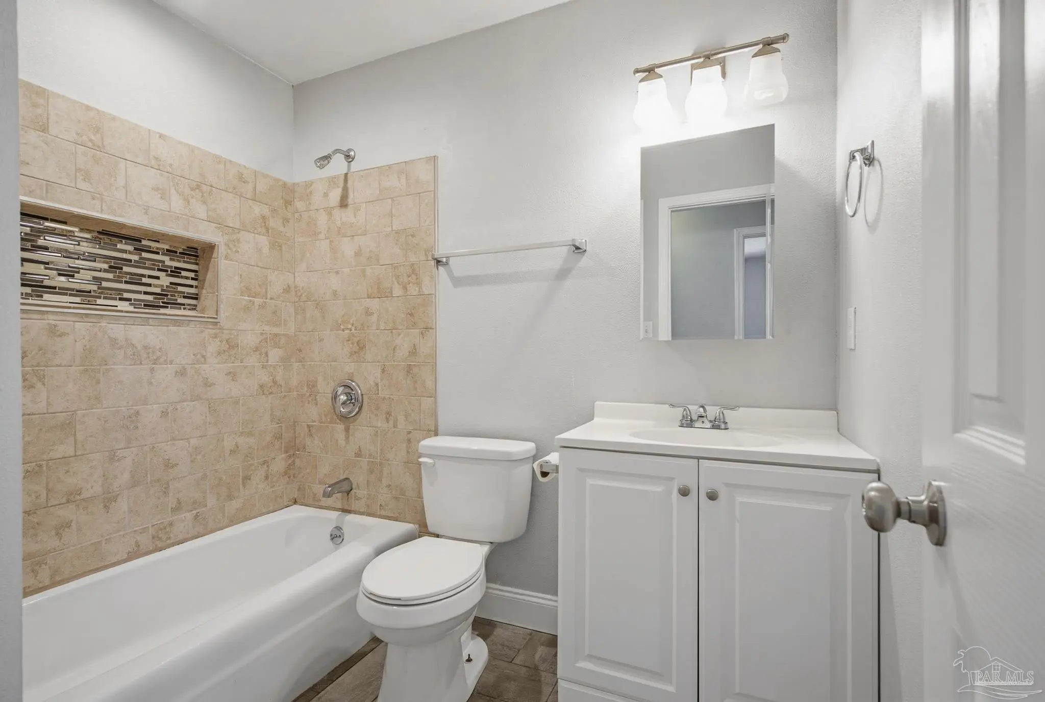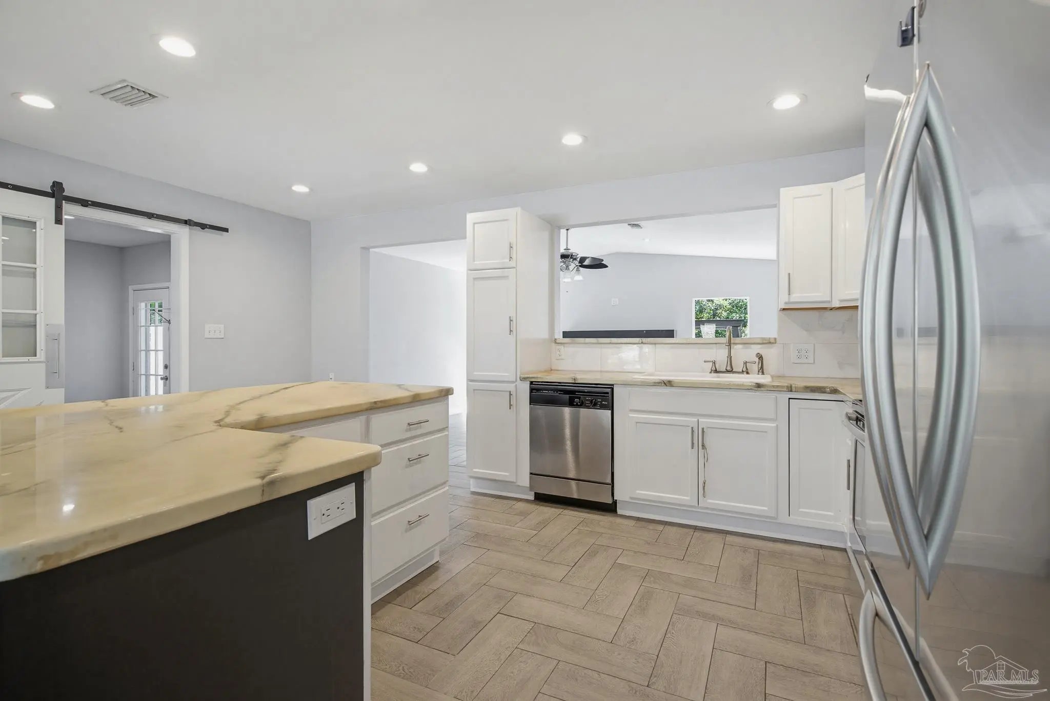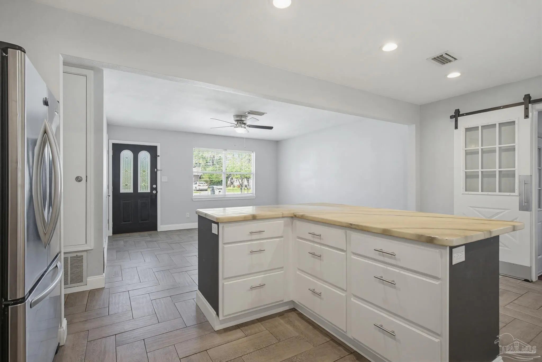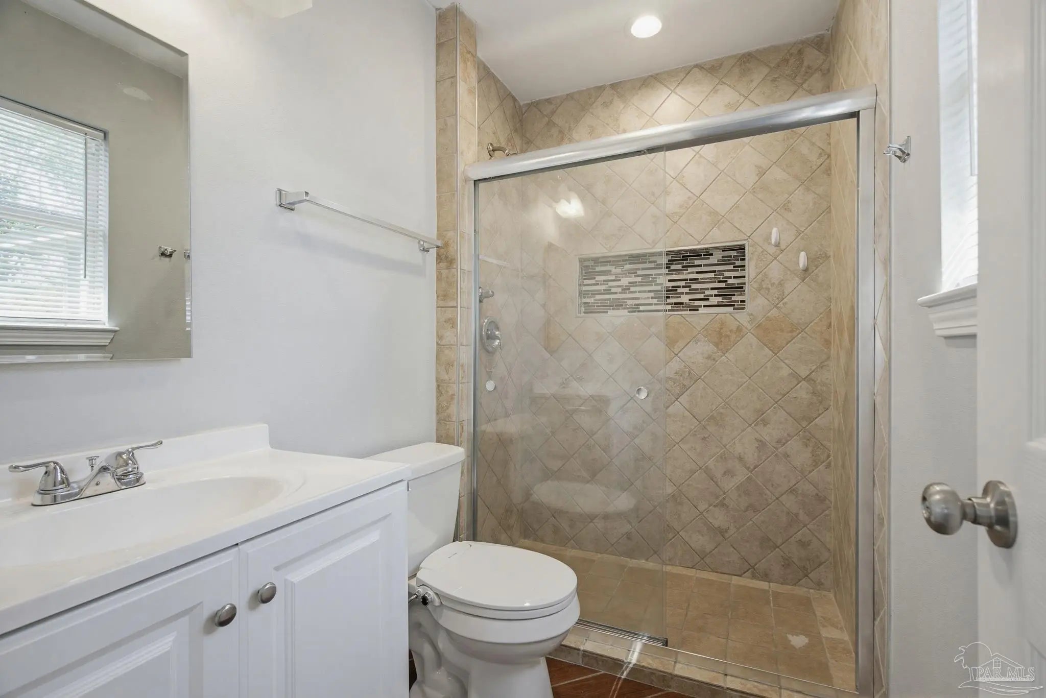 Beautifully updated brick home situated on a spacious lot with mature trees and lush landscaping in Pensacola! New Roof 3/2026. This charming property features fresh paint, attractive baseboards, and durable plank flooring throughout the living room, kitchen, and den. The kitchen is fully equipped with a refrigerator, stove, and dishwasher, plus new cabinetry, countertops, sink, and faucet. A large center island with power and nine drawers offers ample storage and workspace. The home includes a coat closet, linen closet, and an indoor laundry room with tile floors, a barn door with a window, adding both style and natural light. Relax on the beautiful screened porch overlooking the fenced backyard, complete with a storage shed (as-is). Additional highlights include updated windows throughout, recessed lighting in the kitchen and den, and built-in shelving with lighting in the hallway. Both bathrooms have been fully remodeled with tile surrounds, a tiled shower with glass doors, new vanities, toilets, and fixtures. A one-car garage plus ample front parking round out this move-in ready home. Best of all, it’s conveniently located to schools, shopping, grocery stores, home improvement stores, and two I-10 on-ramps, just one block from Nine Mile Road, providing easy access to everything you need. Don’t miss this gem!