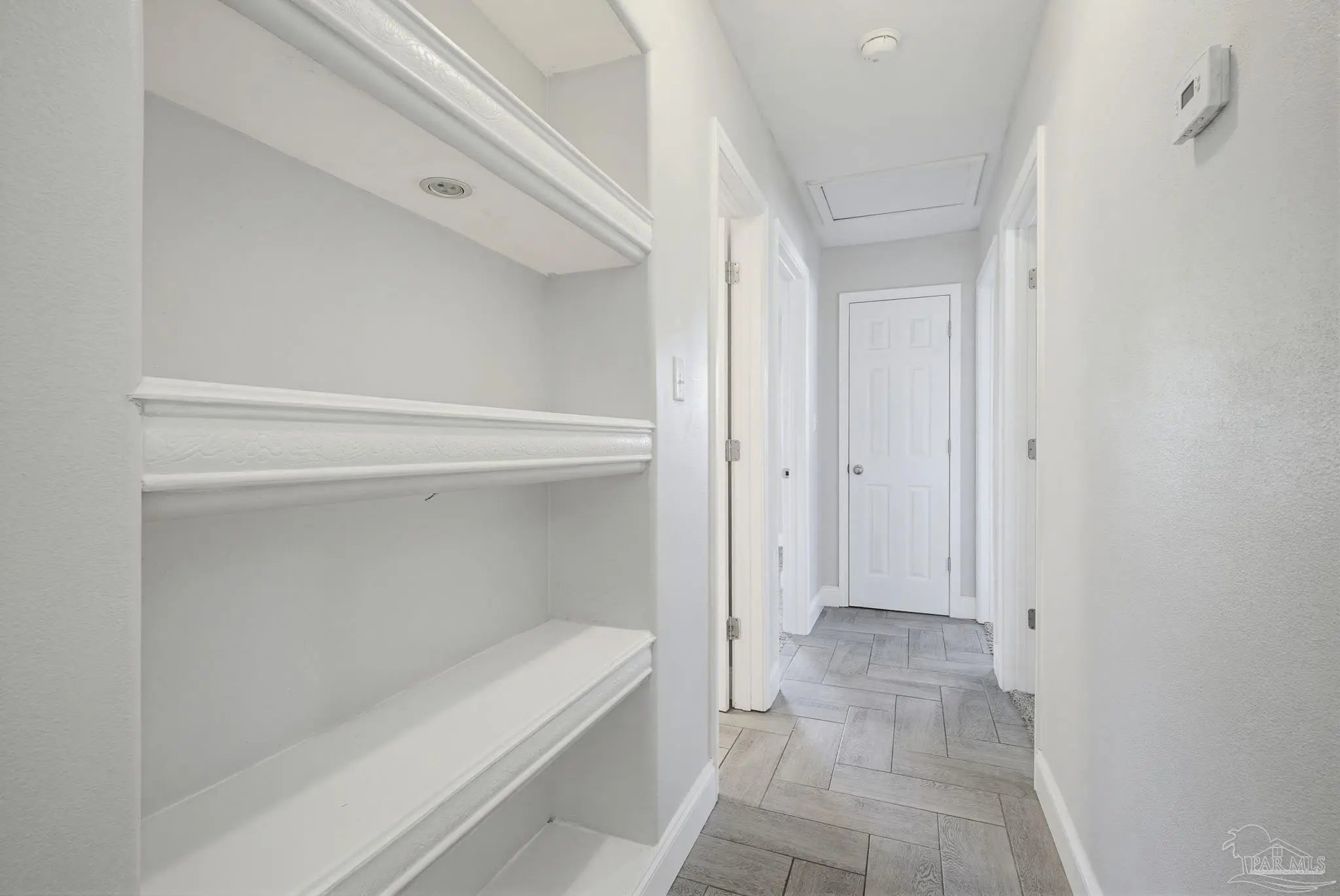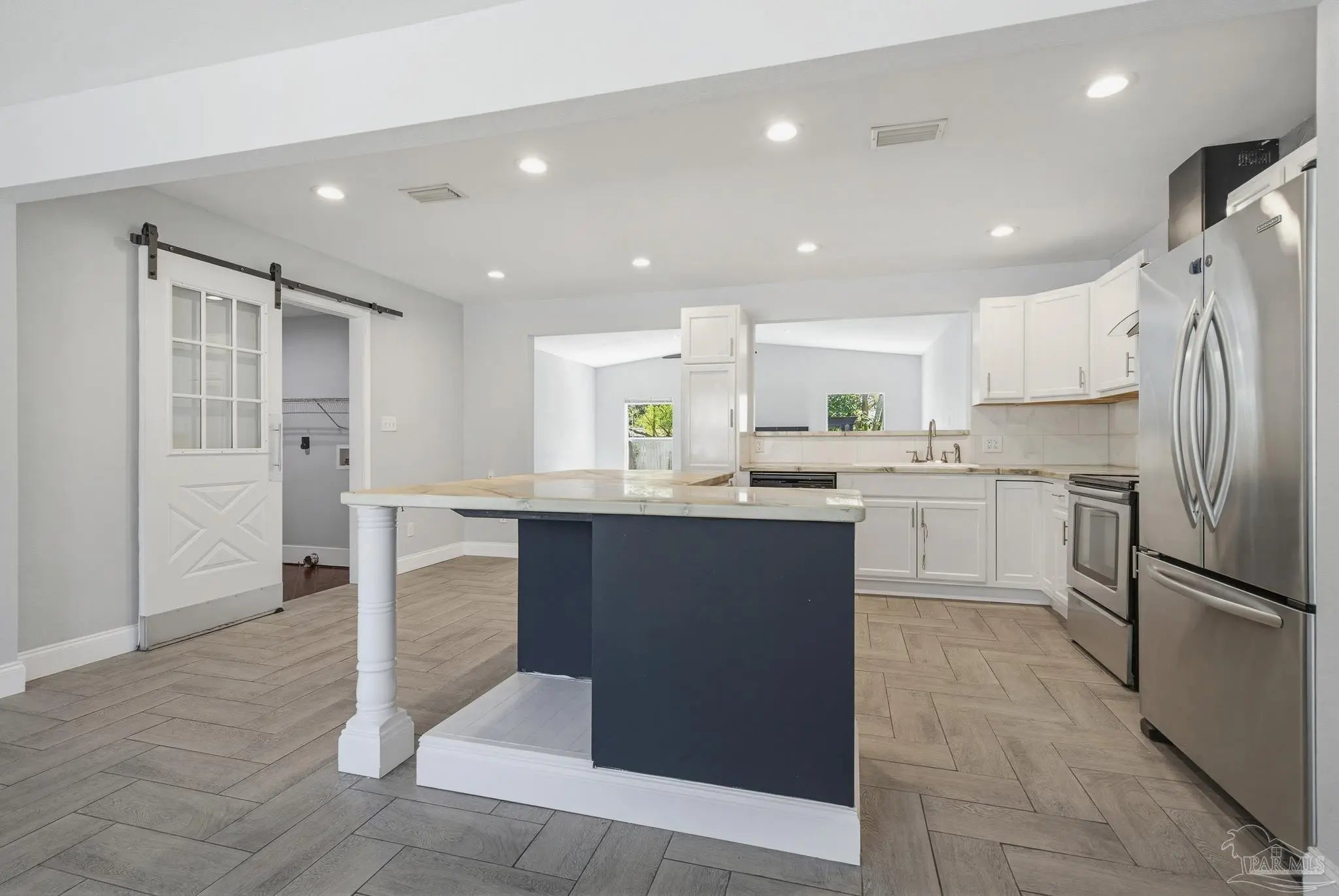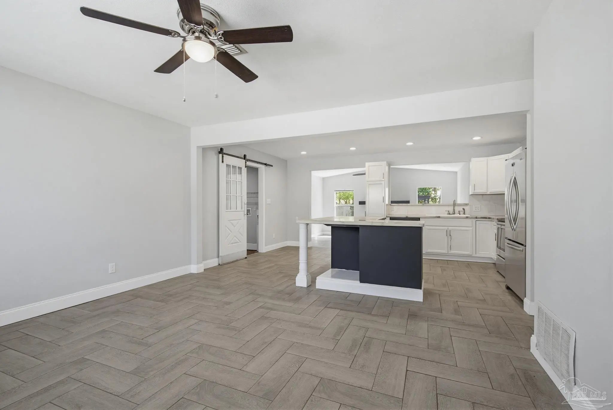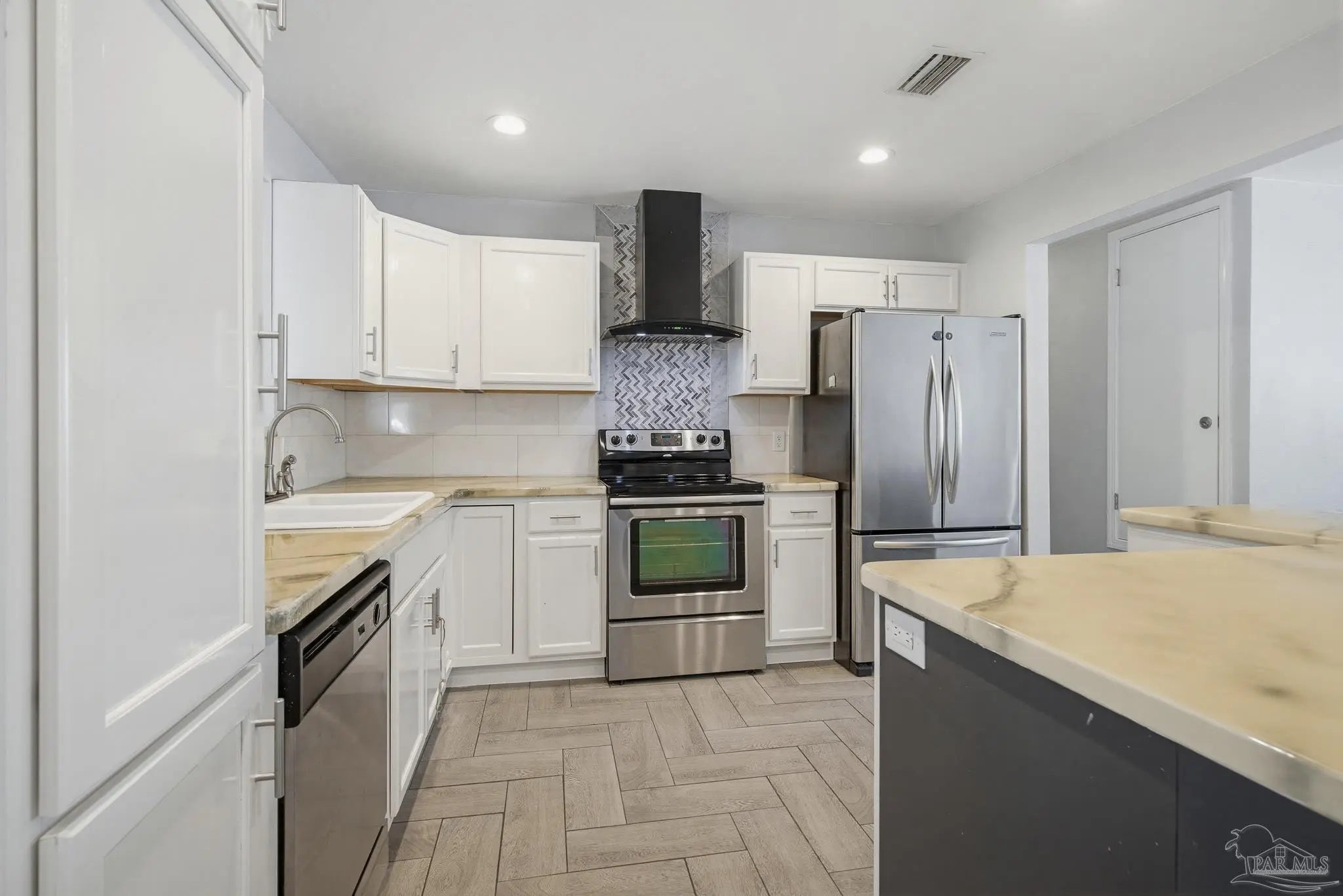 Beautifully updated brick home situated on a spacious lot with mature trees and lush landscaping in Pensacola! New Roof 3/2026. This charming property features fresh paint, attractive baseboards, and durable plank flooring throughout the living room, kitchen, and den. The kitchen is fully equipped with a refrigerator, stove, and dishwasher, plus new cabinetry, countertops, sink, and faucet. A large center island with power and nine drawers offers ample storage and workspace. The home includes a coat closet, linen closet, and an indoor laundry room with tile floors, a barn door with a window, adding both style and natural light. Relax on the beautiful screened porch overlooking the fenced backyard, complete with a storage shed (as-is). Additional highlights include updated windows throughout, recessed lighting in the kitchen and den, and built-in shelving with lighting in the hallway. Both bathrooms have been fully remodeled with tile surrounds, a tiled shower with glass doors, new vanities, toilets, and fixtures. A one-car garage plus ample front parking round out this move-in ready home. Best of all, it’s conveniently located to schools, shopping, grocery stores, home improvement stores, and two I-10 on-ramps, just one block from Nine Mile Road, providing easy access to everything you need. Don’t miss this gem!