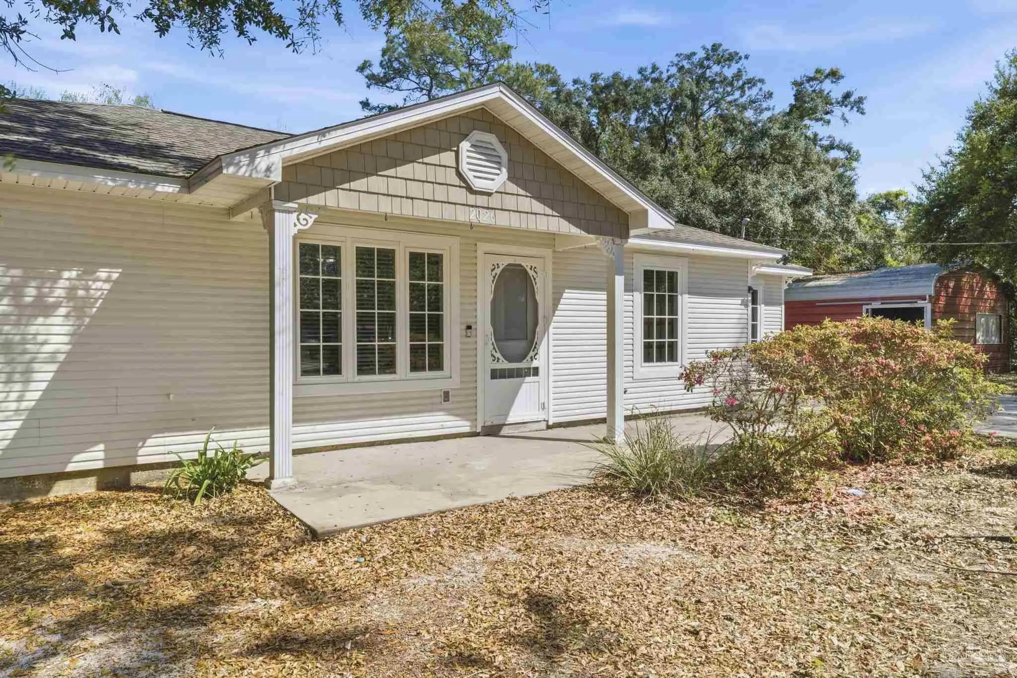 Welcome to this charming 3 bedroom, 2 bathroom Florida Cottage style home - nestled on a generous sized 0.5 acre lot in Midway in Gulf Breeze. Great location to Navarre and Pensacola beaches - with no HOA! Making this a great option as a primary residence or rental investment! Inside, the split floor plan maximizes functionality and privacy - with the kitchen and dining area at the center of the home, and natural light filling the space through the slider doors to the backyard. Additionally, this property offers a 2025 roof, an indoor laundry room, all tile and wood plank flooring, and a versatile, separate living space - great for a private home office, playroom, or den. The backyard patio features an extended concrete patio and an expansive yard that's ready for you to turn into the ultimate outdoor entertainment space - with included powered open horse barns! Schedule your showing today!