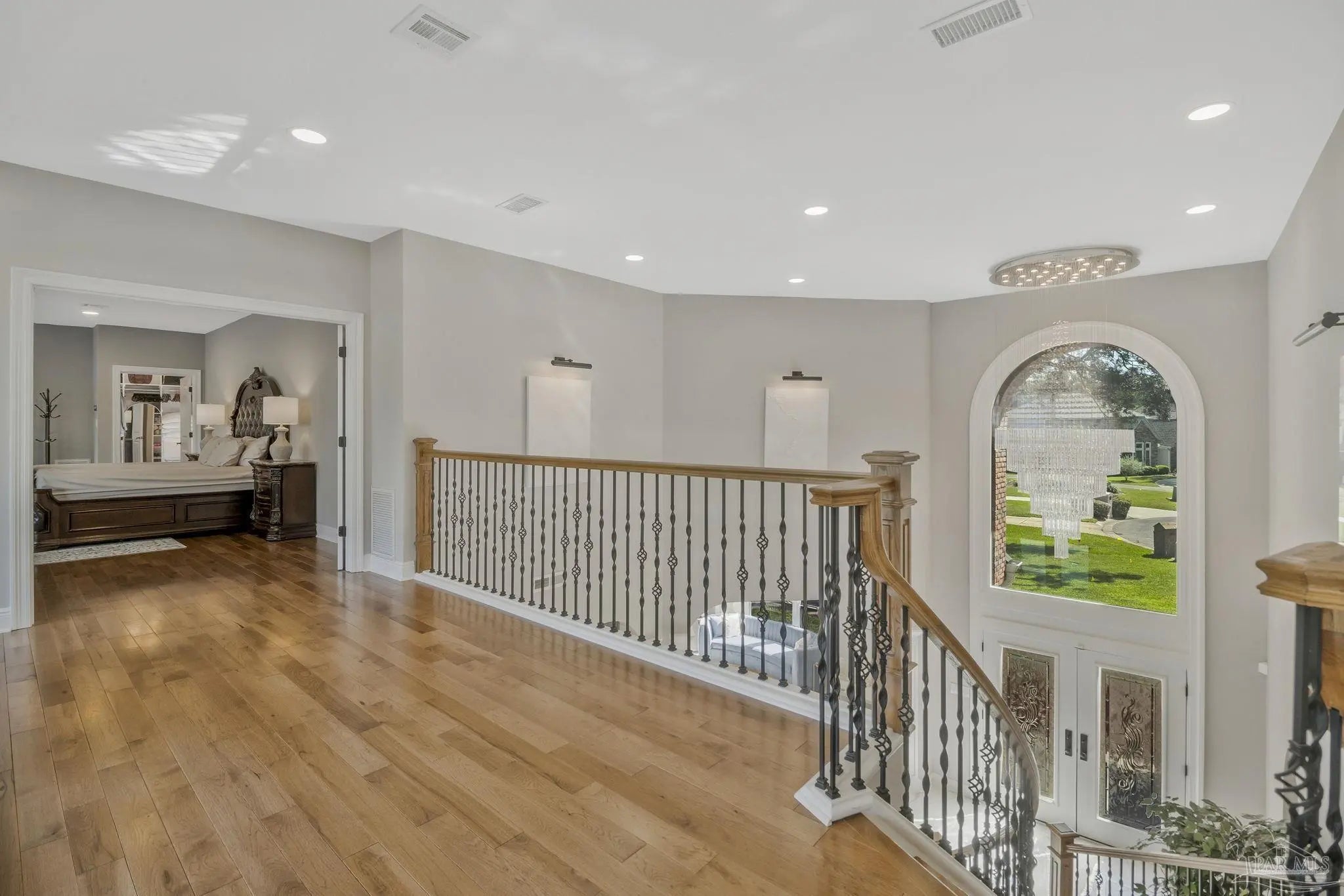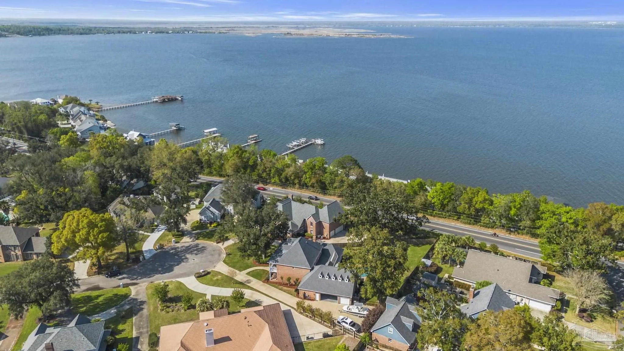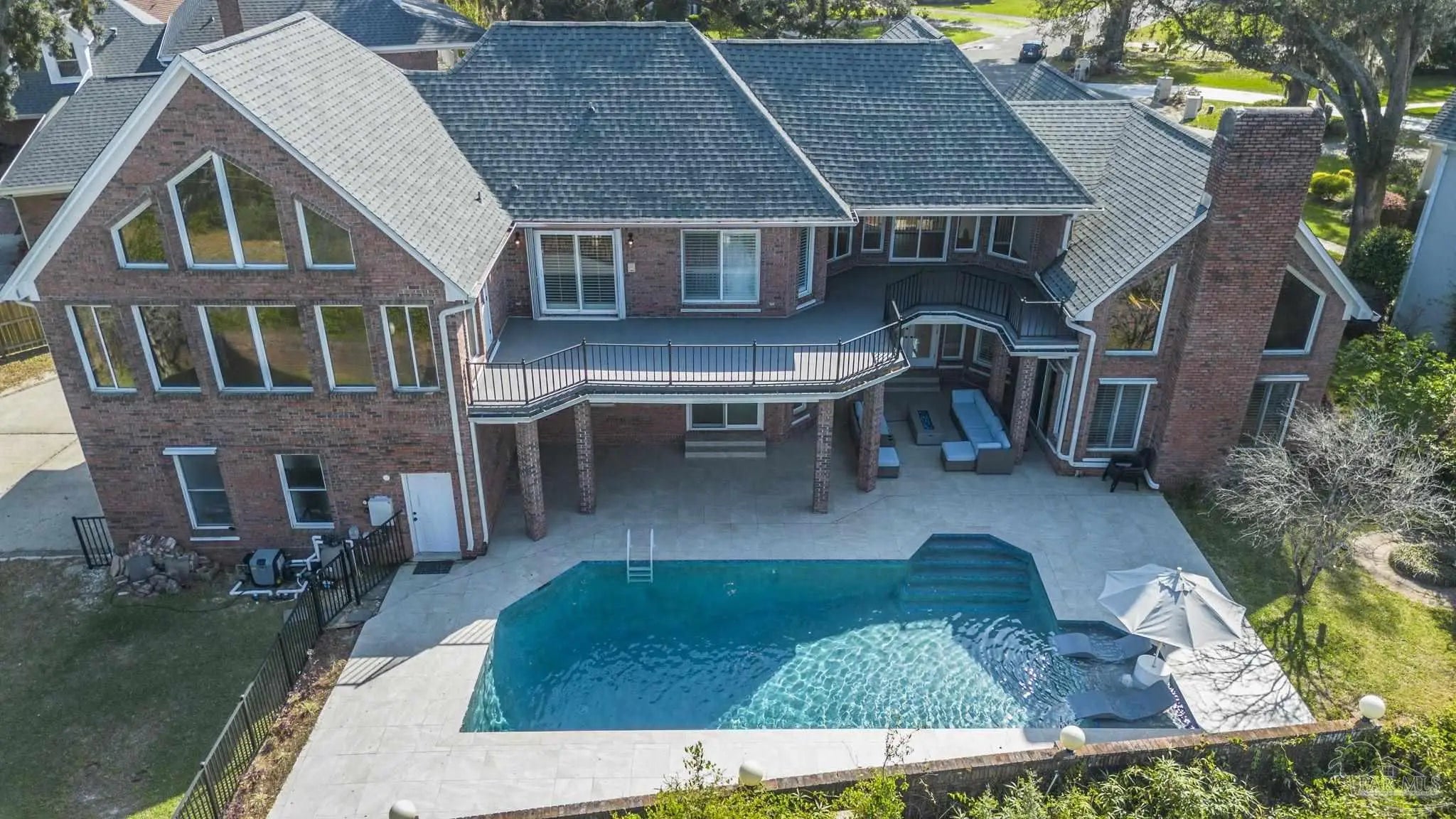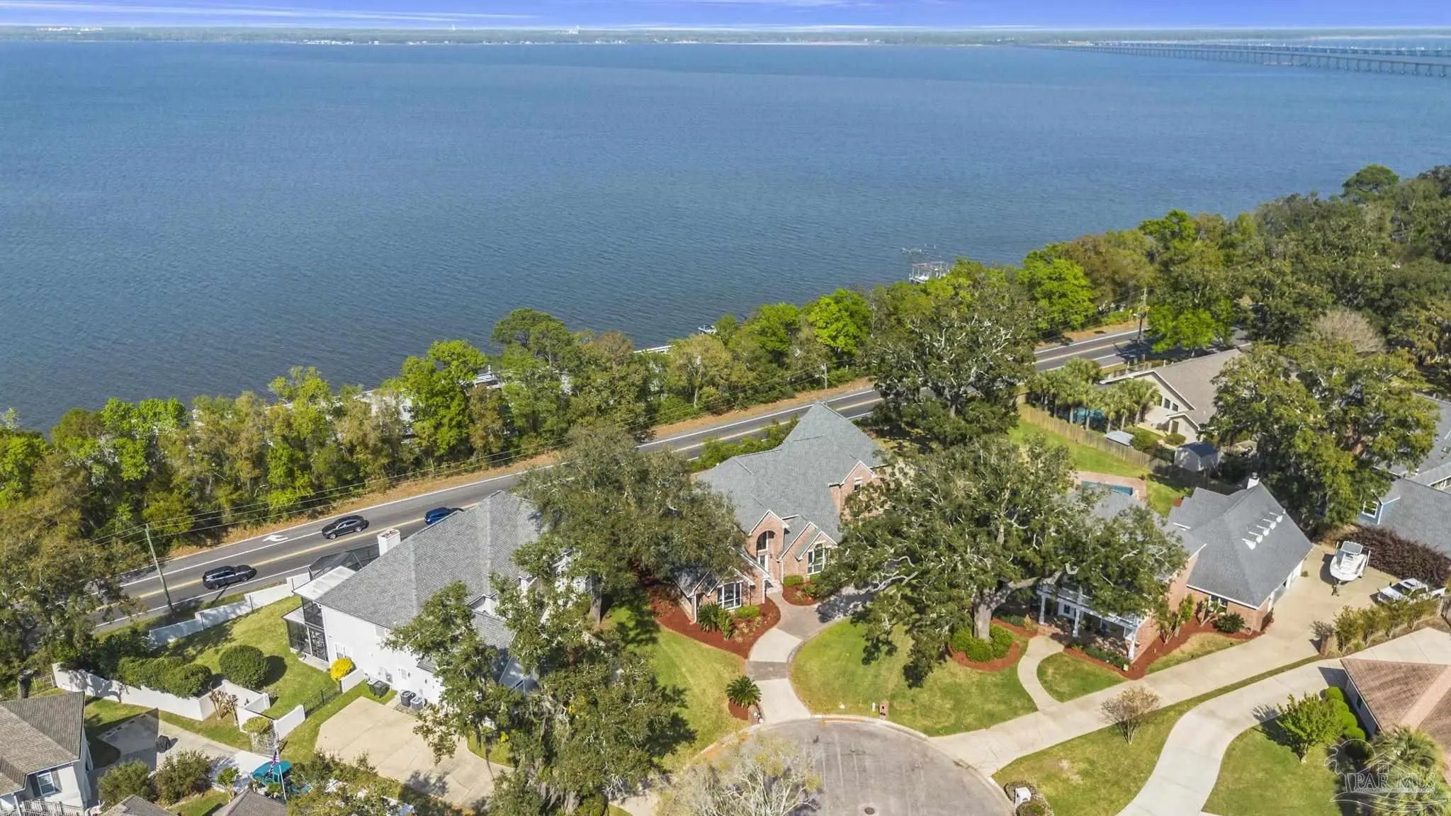 Imagine pulling into your cul-de-sac at the end of a long day, knowing that behind your front door sits a sanctuary designed for both grand celebrations and gorgeous views with your morning coffee. From the moment you step into the soaring foyer, the grand staircase and the warm glow of the chandelier tell you this is a home where memories are made. You can almost hear the laughter of friends gathering around the massive, stone-waterfall island in the gourmet kitchen, where lighted cabinetry, Viking stove, and high-end finishes make every meal feel like an event. Whether you’re hosting a festive holiday dinner in the elegant formal dining room or sliding open the doors to the covered patio for a poolside BBQ, the flow of this 4,200-square-foot home is effortless. What truly sets this residence apart is the luxury of two master suites, offering a level of comfort and privacy that’s hard to find; the main floor provides a spacious, accessible retreat for guests or family, while the upstairs primary suite is a true escape from the world and the rest of the whole house. Picture yourself waking up in your upstairs sanctuary and stepping into your sunroom to watch the sun rise off the bay, or enjoying a quiet evening on your private balcony overlooking the sparkling blue pool below and water beyond. With three generous bedrooms, a versatile bonus room for movie nights or a home gym, and a three-car garage for all your coastal gear, this home offers the perfect balance of sophisticated entertaining spaces and cozy, sun-drenched corners to call your own.