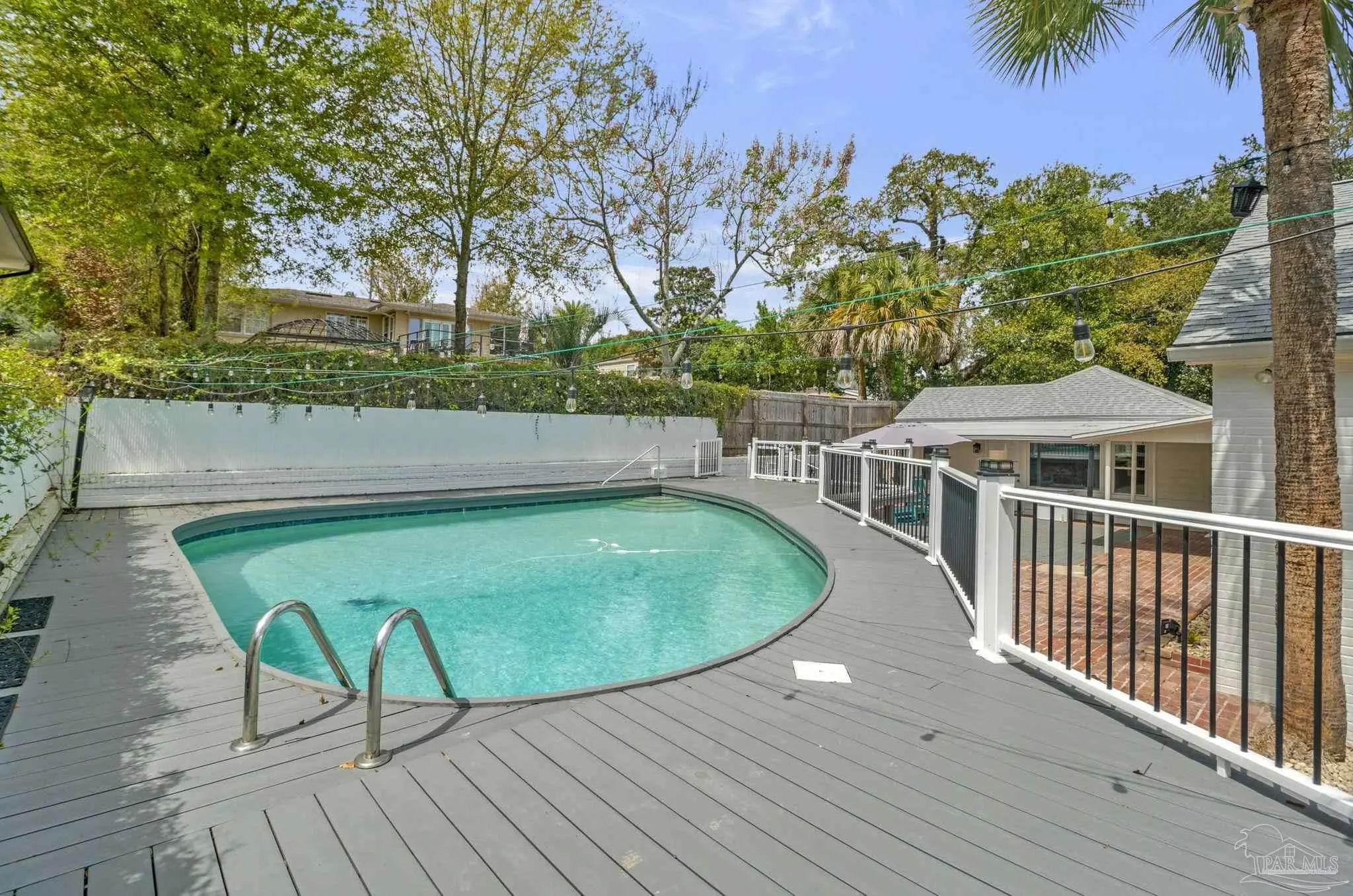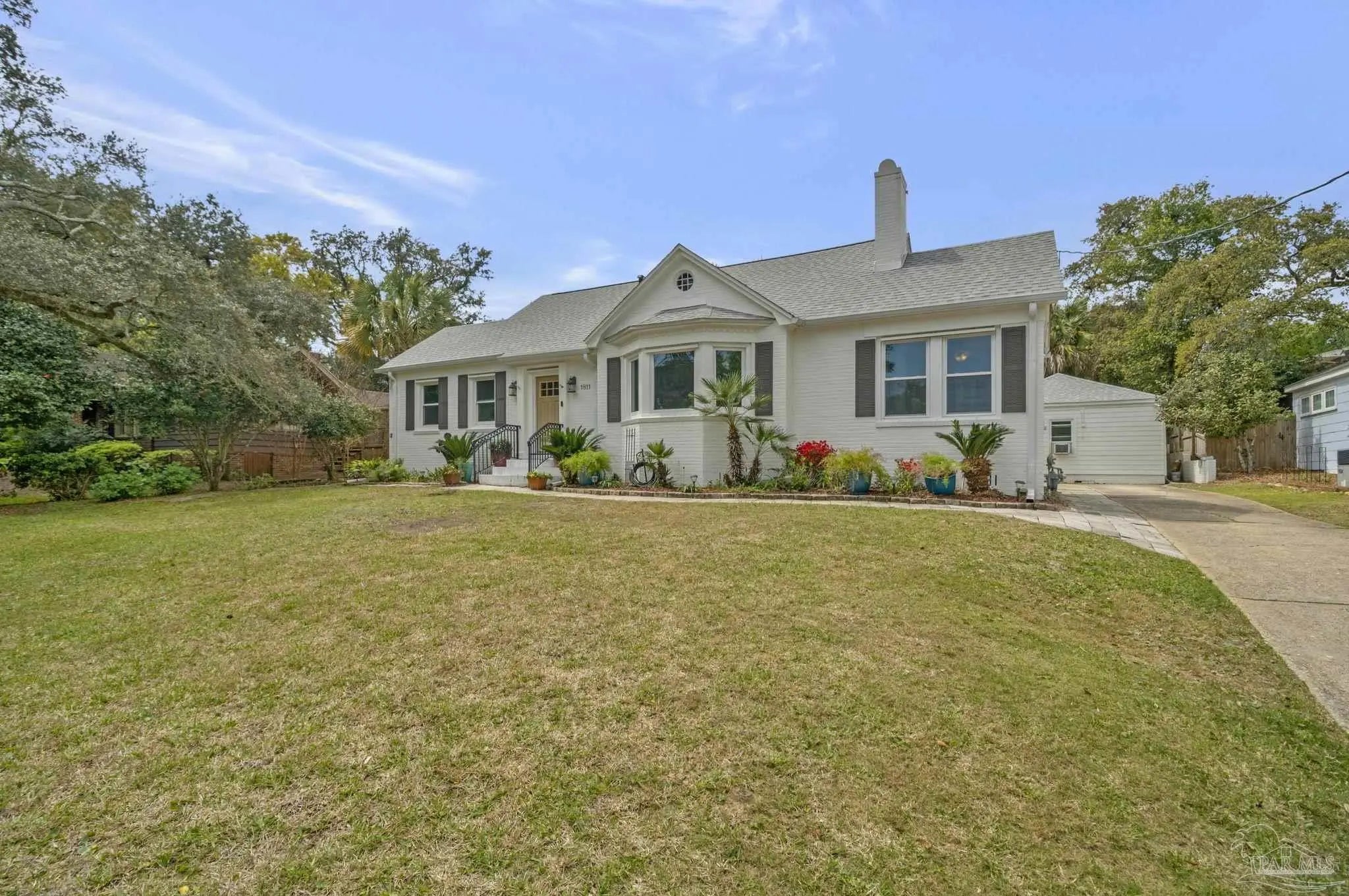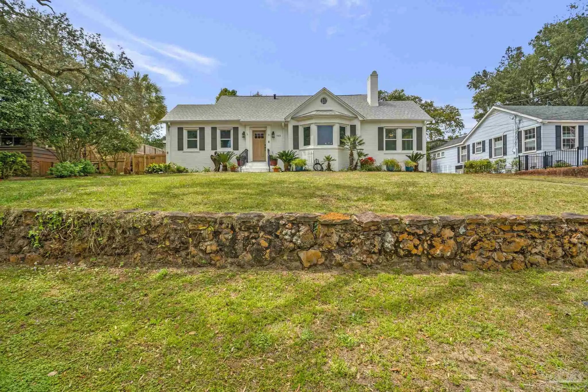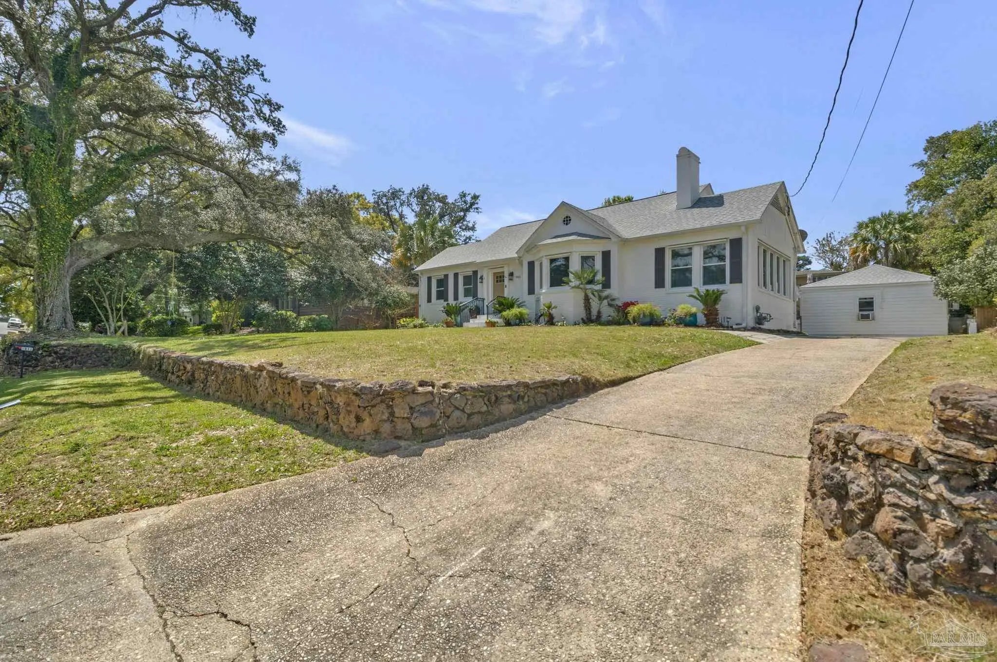 EAST HILL! MOVE-IN READY! POOL + IN-LAW SUITE! Located in one of Pensacola’s most desirable East Hill neighborhoods, this beautifully maintained 1938 home blends timeless character with modern upgrades and exceptional functionality. Perched on a spacious .28-acre lot with refreshing bayou breezes, this property offers the lifestyle buyers are looking for—just minutes from Bayview Park, featuring tennis courts, walking trails, dog parks, beaches, and a boat ramp. Inside the main home (3BR/2BA, ~1,961 SF), you’ll find refinished Red Oak hardwood floors, 9’+ ceilings, crown molding, and abundant natural light throughout. The living room showcases a large bay window and marble fireplace, while the Florida room—with built-in shelving—makes the perfect home office or flex space. The updated kitchen features granite countertops, tile flooring, pantry, and serving bar. A separate dining room adds to the home’s functionality. Step outside to a private backyard retreat designed for entertaining, complete with a covered patio, courtyard-style space, and a gated, above-grade gunite pool with new decking (2024). Wood fencing enhances privacy while maintaining an inviting outdoor atmosphere. A major bonus is the detached, heated/cooled ~500 SF in-law suite, offering a full kitchen, bathroom, laundry, cedar closet, high ceilings with exposed beams, and built-in shelving—ideal for guests, multi-generational living, or rental potential. Recent updates include a new roof (2023), HVAC (2024), high-impact energy-rated windows (2024), fresh interior paint, upgraded irrigation, and more. Additional features like hurricane shutters, roof clips, ridge vent, and a fully floored attic provide peace of mind and efficiency. Originally owned for decades by the family of Braden Ball, who served as publisher of the Pensacola News Journal during a period of growth and influence in the 1930s, the home carries a subtle connection to Pensacola!