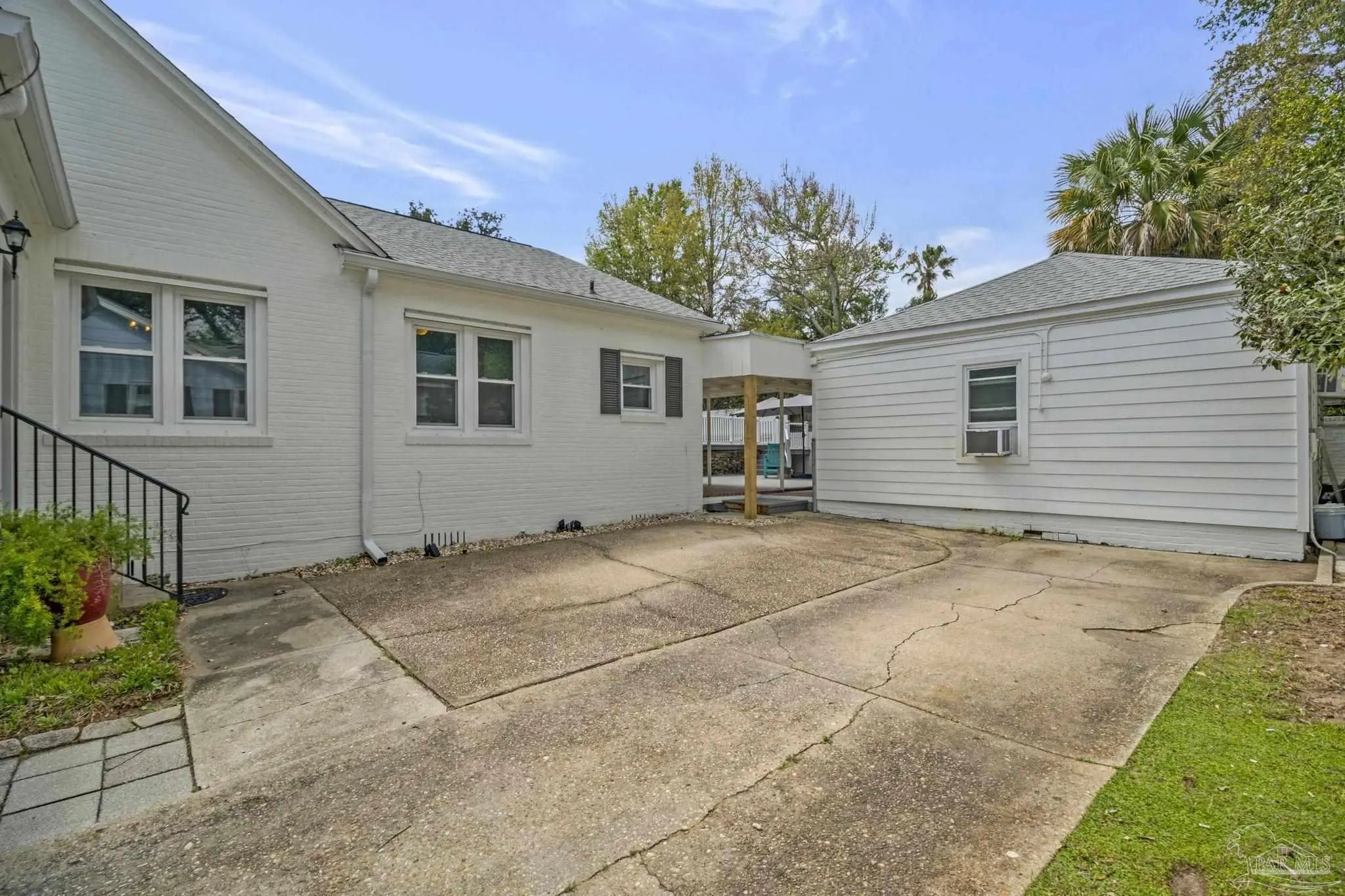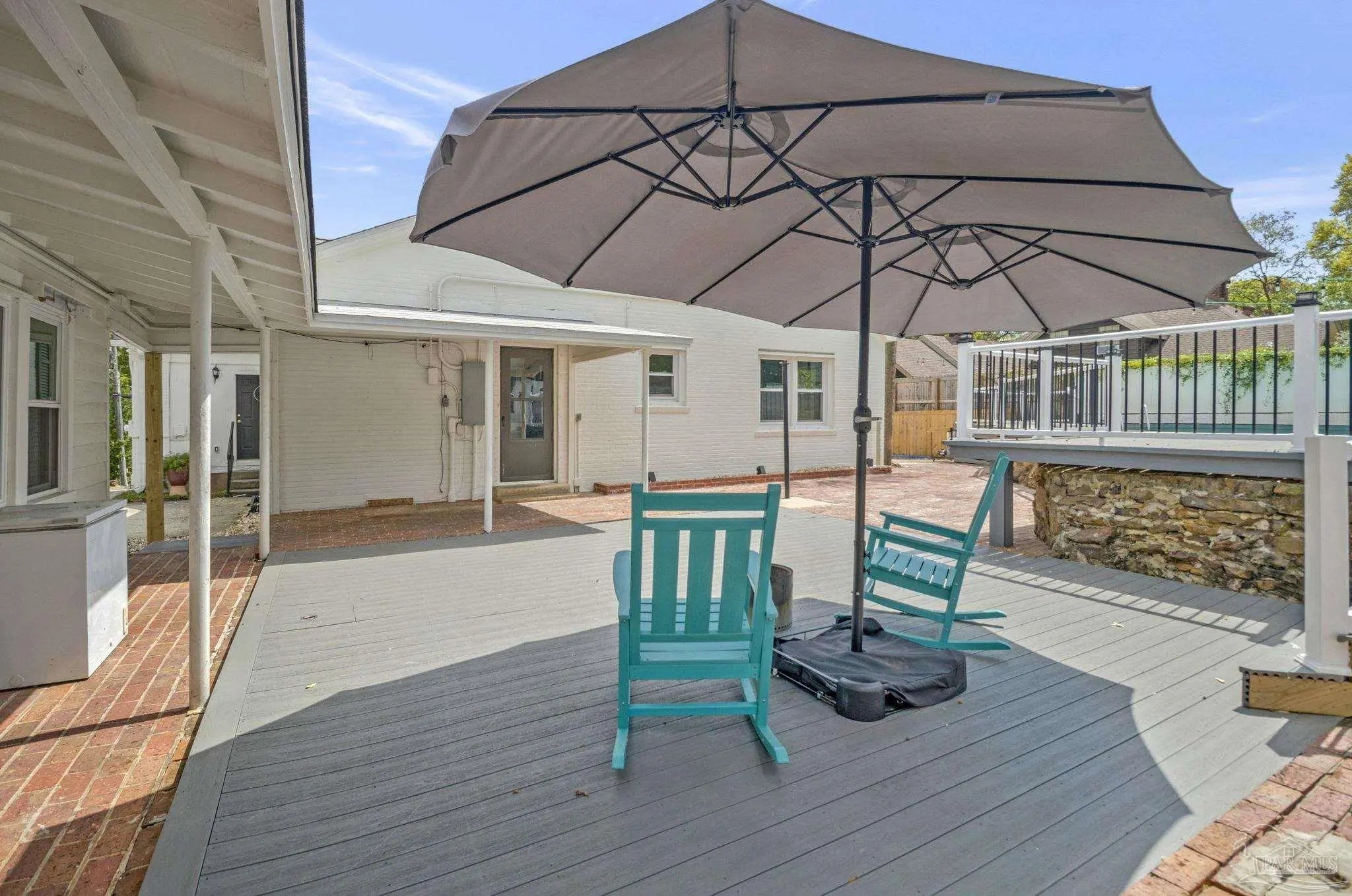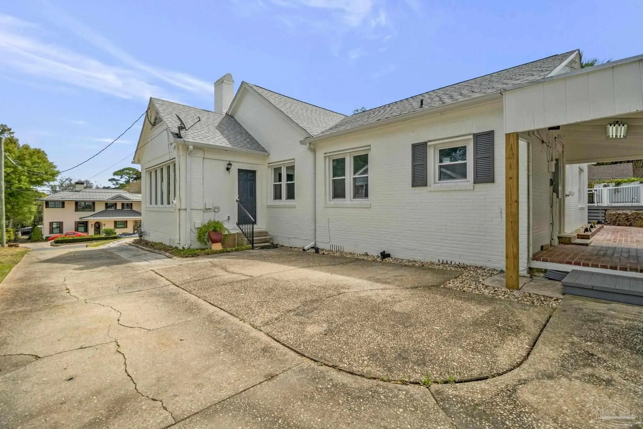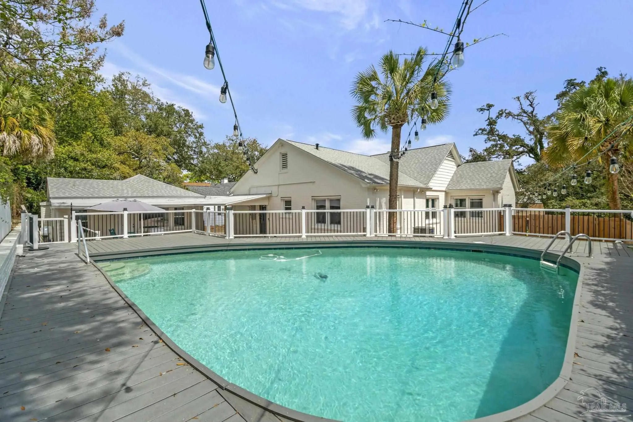 EAST HILL! MOVE-IN READY! POOL + IN-LAW SUITE! Located in one of Pensacola’s most desirable East Hill neighborhoods, this beautifully maintained 1938 home blends timeless character with modern upgrades and exceptional functionality. Perched on a spacious .28-acre lot with refreshing bayou breezes, this property offers the lifestyle buyers are looking for—just minutes from Bayview Park, featuring tennis courts, walking trails, dog parks, beaches, and a boat ramp. Inside the main home (3BR/2BA, ~1,961 SF), you’ll find refinished Red Oak hardwood floors, 9’+ ceilings, crown molding, and abundant natural light throughout. The living room showcases a large bay window and marble fireplace, while the Florida room—with built-in shelving—makes the perfect home office or flex space. The updated kitchen features granite countertops, tile flooring, pantry, and serving bar. A separate dining room adds to the home’s functionality. Step outside to a private backyard retreat designed for entertaining, complete with a covered patio, courtyard-style space, and a gated, above-grade gunite pool with new decking (2024). Wood fencing enhances privacy while maintaining an inviting outdoor atmosphere. A major bonus is the detached, heated/cooled ~500 SF in-law suite, offering a full kitchen, bathroom, laundry, cedar closet, high ceilings with exposed beams, and built-in shelving—ideal for guests, multi-generational living, or rental potential. Recent updates include a new roof (2023), HVAC (2024), high-impact energy-rated windows (2024), fresh interior paint, upgraded irrigation, and more. Additional features like hurricane shutters, roof clips, ridge vent, and a fully floored attic provide peace of mind and efficiency. Originally owned for decades by the family of Braden Ball, who served as publisher of the Pensacola News Journal during a period of growth and influence in the 1930s, the home carries a subtle connection to Pensacola!