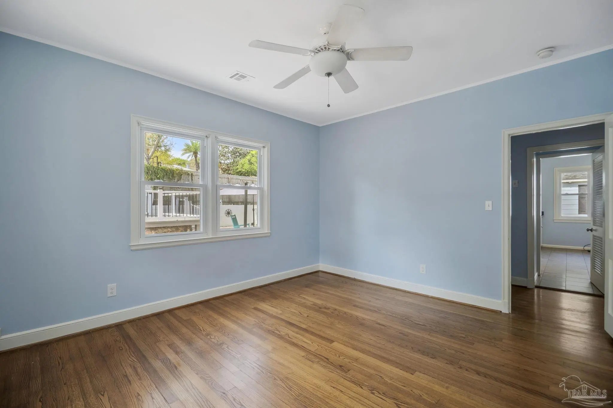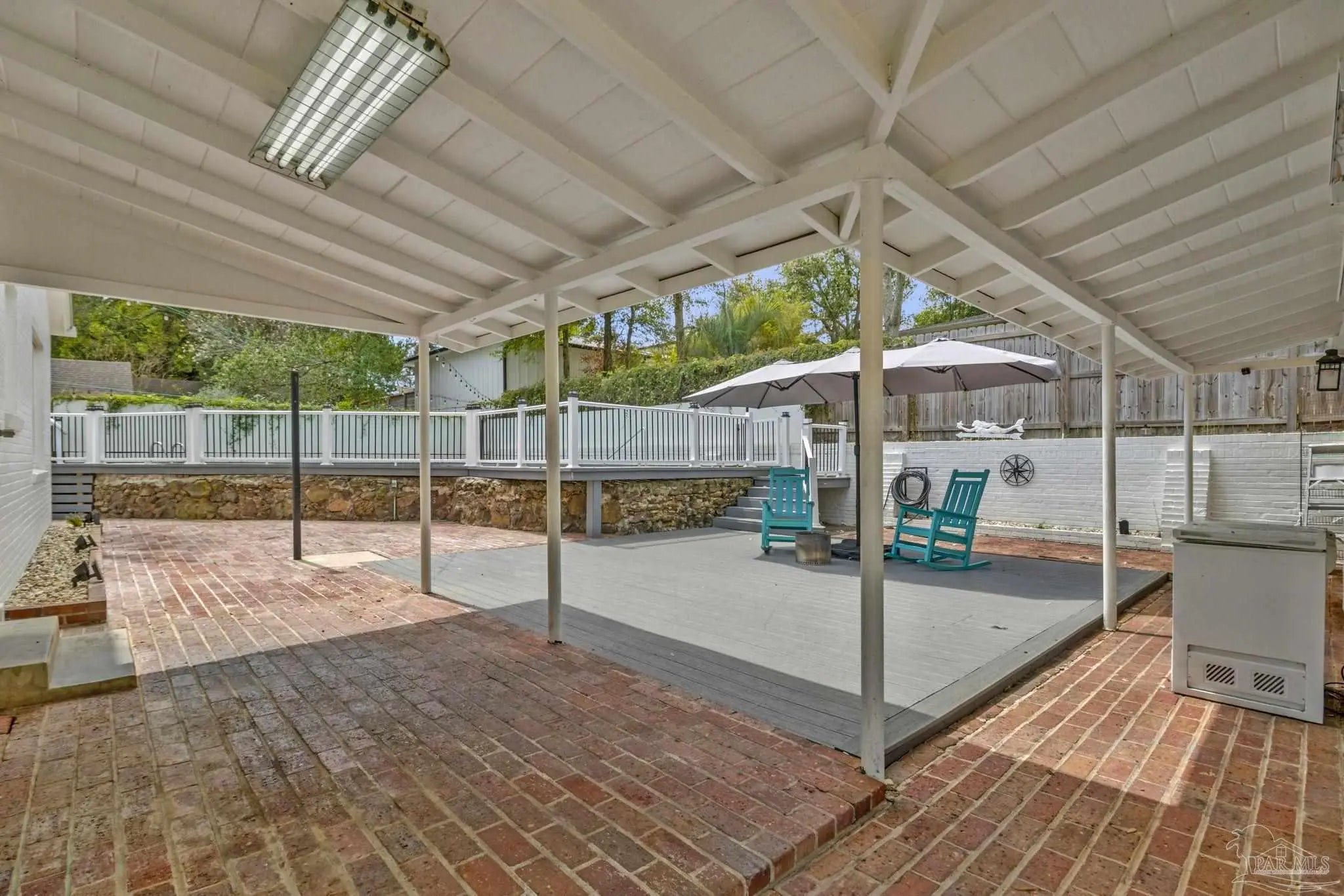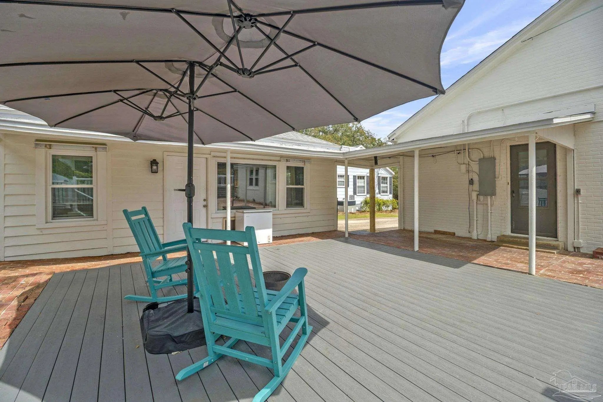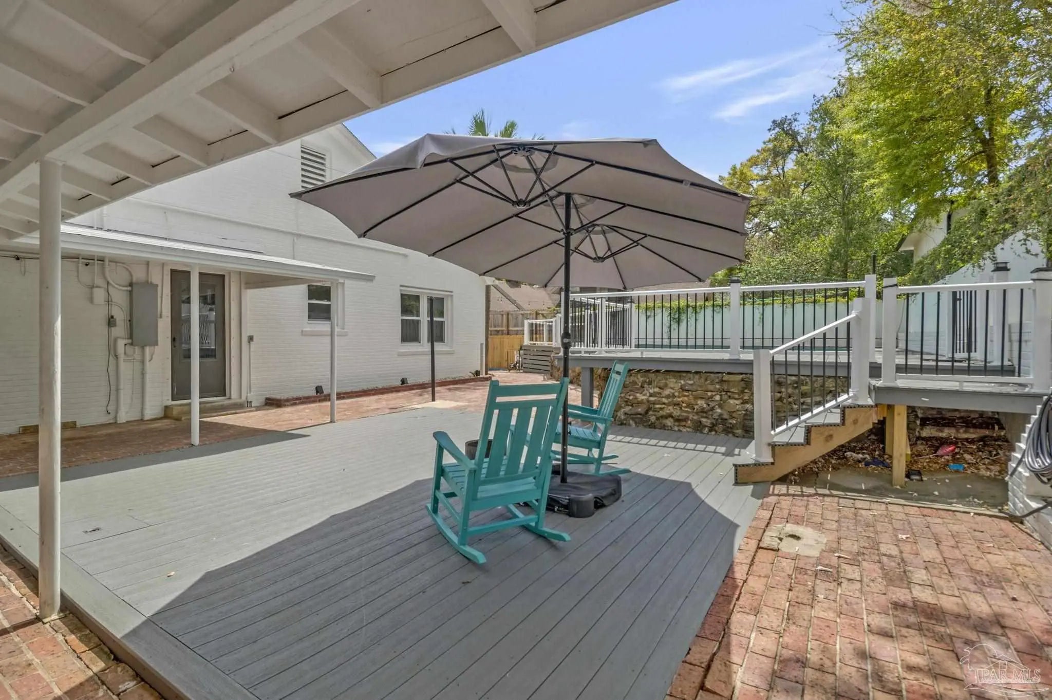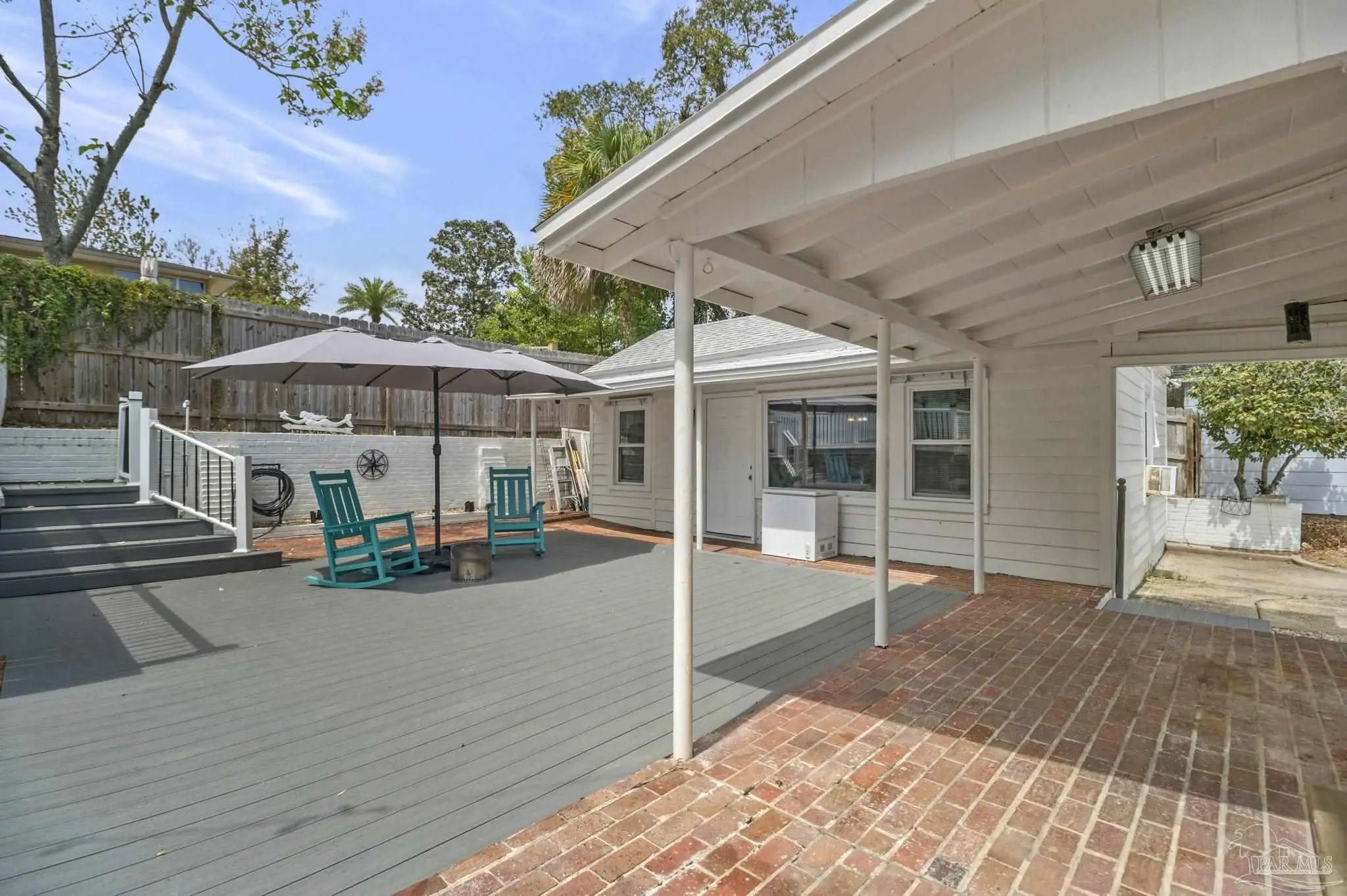 EAST HILL! MOVE-IN READY! POOL + IN-LAW SUITE! Located in one of Pensacola’s most desirable East Hill neighborhoods, this beautifully maintained 1938 home blends timeless character with modern upgrades and exceptional functionality. Perched on a spacious .28-acre lot with refreshing bayou breezes, this property offers the lifestyle buyers are looking for—just minutes from Bayview Park, featuring tennis courts, walking trails, dog parks, beaches, and a boat ramp. Inside the main home (3BR/2BA, ~1,961 SF), you’ll find refinished Red Oak hardwood floors, 9’+ ceilings, crown molding, and abundant natural light throughout. The living room showcases a large bay window and marble fireplace, while the Florida room—with built-in shelving—makes the perfect home office or flex space. The updated kitchen features granite countertops, tile flooring, pantry, and serving bar. A separate dining room adds to the home’s functionality. Step outside to a private backyard retreat designed for entertaining, complete with a covered patio, courtyard-style space, and a gated, above-grade gunite pool with new decking (2024). Wood fencing enhances privacy while maintaining an inviting outdoor atmosphere. A major bonus is the detached, heated/cooled ~500 SF in-law suite, offering a full kitchen, bathroom, laundry, cedar closet, high ceilings with exposed beams, and built-in shelving—ideal for guests, multi-generational living, or rental potential. Recent updates include a new roof (2023), HVAC (2024), high-impact energy-rated windows (2024), fresh interior paint, upgraded irrigation, and more. Additional features like hurricane shutters, roof clips, ridge vent, and a fully floored attic provide peace of mind and efficiency. Originally owned for decades by the family of Braden Ball, who served as publisher of the Pensacola News Journal during a period of growth and influence in the 1930s, the home carries a subtle connection to Pensacola!