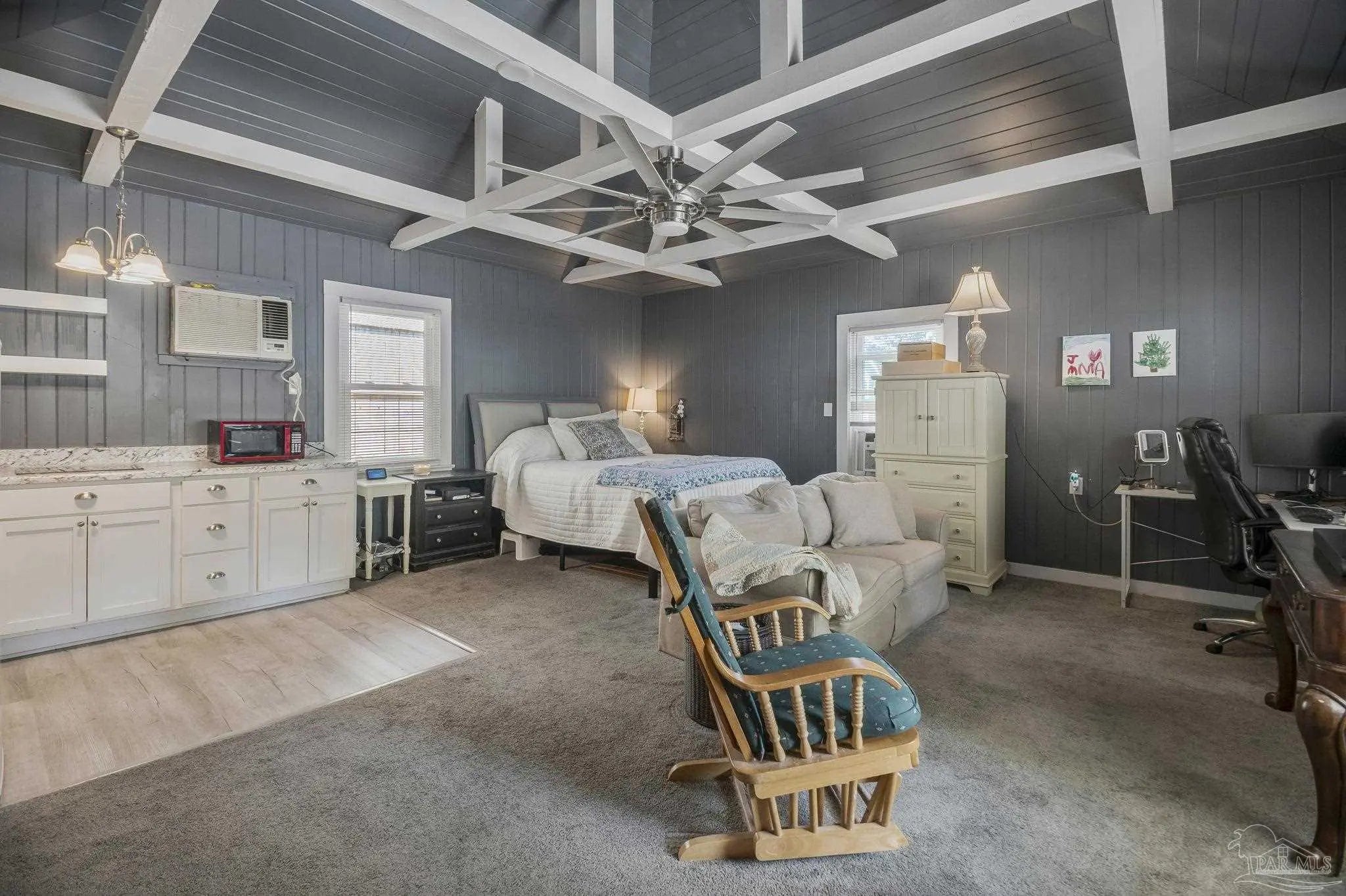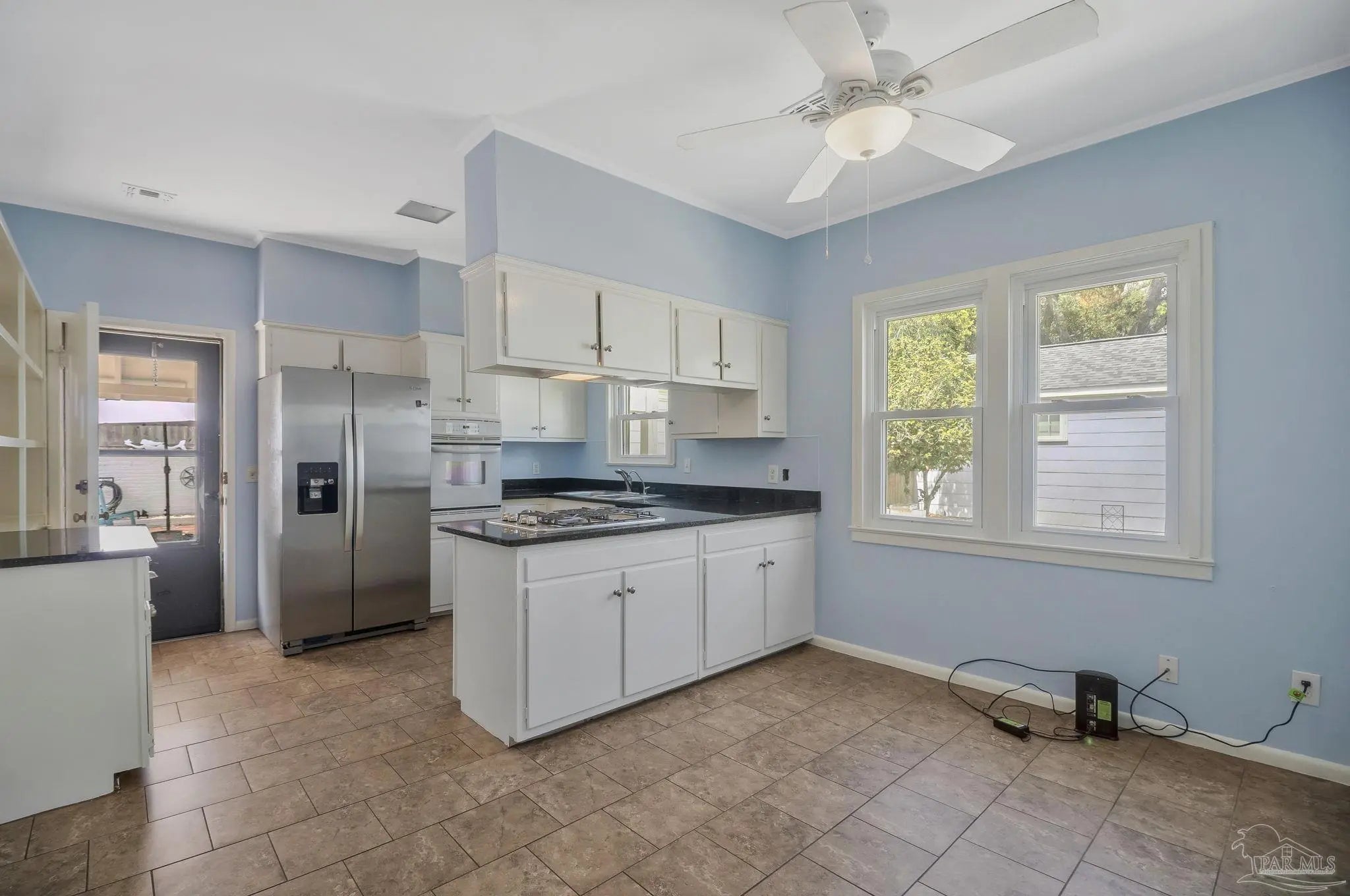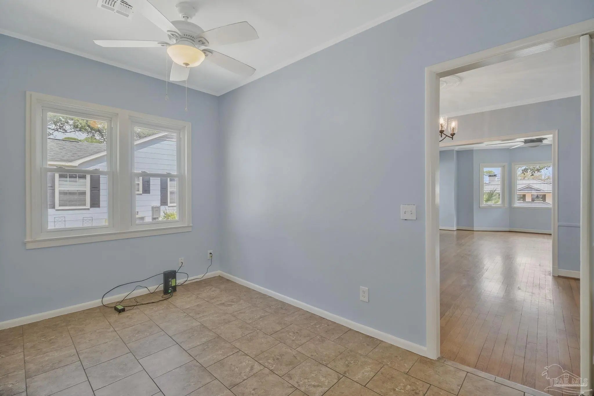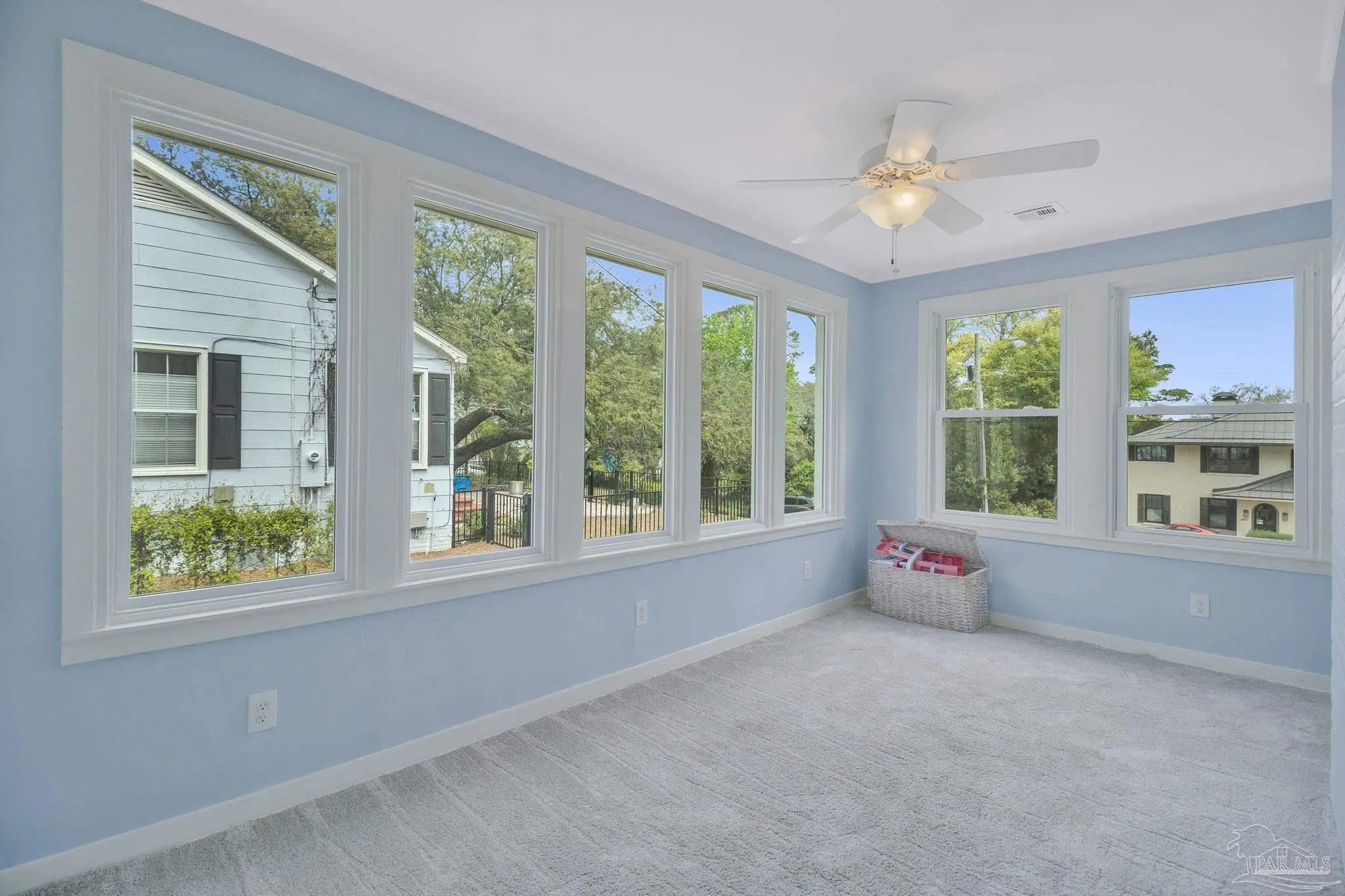 EAST HILL! MOVE-IN READY! POOL + IN-LAW SUITE! Located in one of Pensacola’s most desirable East Hill neighborhoods, this beautifully maintained 1938 home blends timeless character with modern upgrades and exceptional functionality. Perched on a spacious .28-acre lot with refreshing bayou breezes, this property offers the lifestyle buyers are looking for—just minutes from Bayview Park, featuring tennis courts, walking trails, dog parks, beaches, and a boat ramp. Inside the main home (3BR/2BA, ~1,961 SF), you’ll find refinished Red Oak hardwood floors, 9’+ ceilings, crown molding, and abundant natural light throughout. The living room showcases a large bay window and marble fireplace, while the Florida room—with built-in shelving—makes the perfect home office or flex space. The updated kitchen features granite countertops, tile flooring, pantry, and serving bar. A separate dining room adds to the home’s functionality. Step outside to a private backyard retreat designed for entertaining, complete with a covered patio, courtyard-style space, and a gated, above-grade gunite pool with new decking (2024). Wood fencing enhances privacy while maintaining an inviting outdoor atmosphere. A major bonus is the detached, heated/cooled ~500 SF in-law suite, offering a full kitchen, bathroom, laundry, cedar closet, high ceilings with exposed beams, and built-in shelving—ideal for guests, multi-generational living, or rental potential. Recent updates include a new roof (2023), HVAC (2024), high-impact energy-rated windows (2024), fresh interior paint, upgraded irrigation, and more. Additional features like hurricane shutters, roof clips, ridge vent, and a fully floored attic provide peace of mind and efficiency. Originally owned for decades by the family of Braden Ball, who served as publisher of the Pensacola News Journal during a period of growth and influence in the 1930s, the home carries a subtle connection to Pensacola!