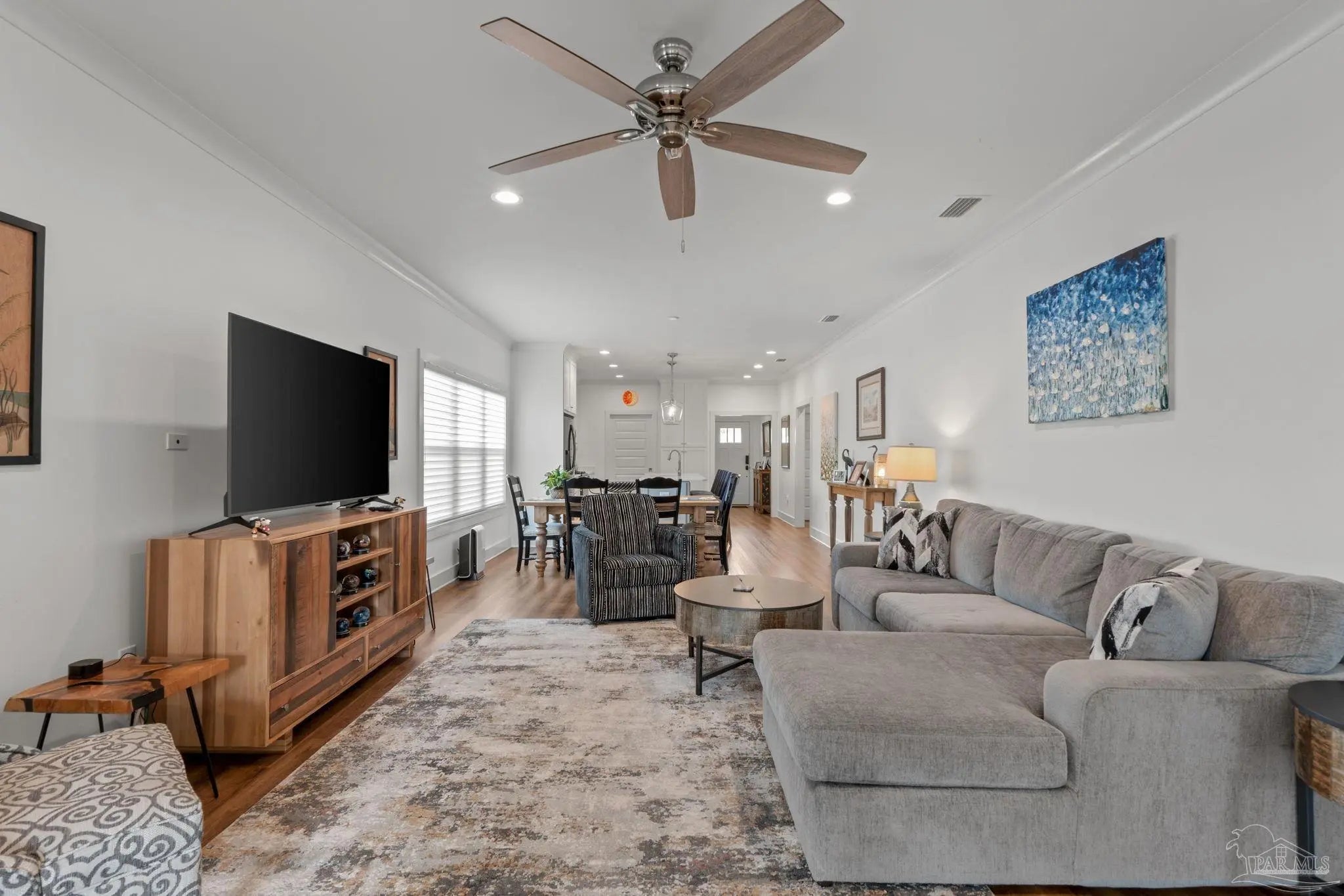 - Baseboards, Ceiling Fan(s), Crown Molding, High Ceilings
