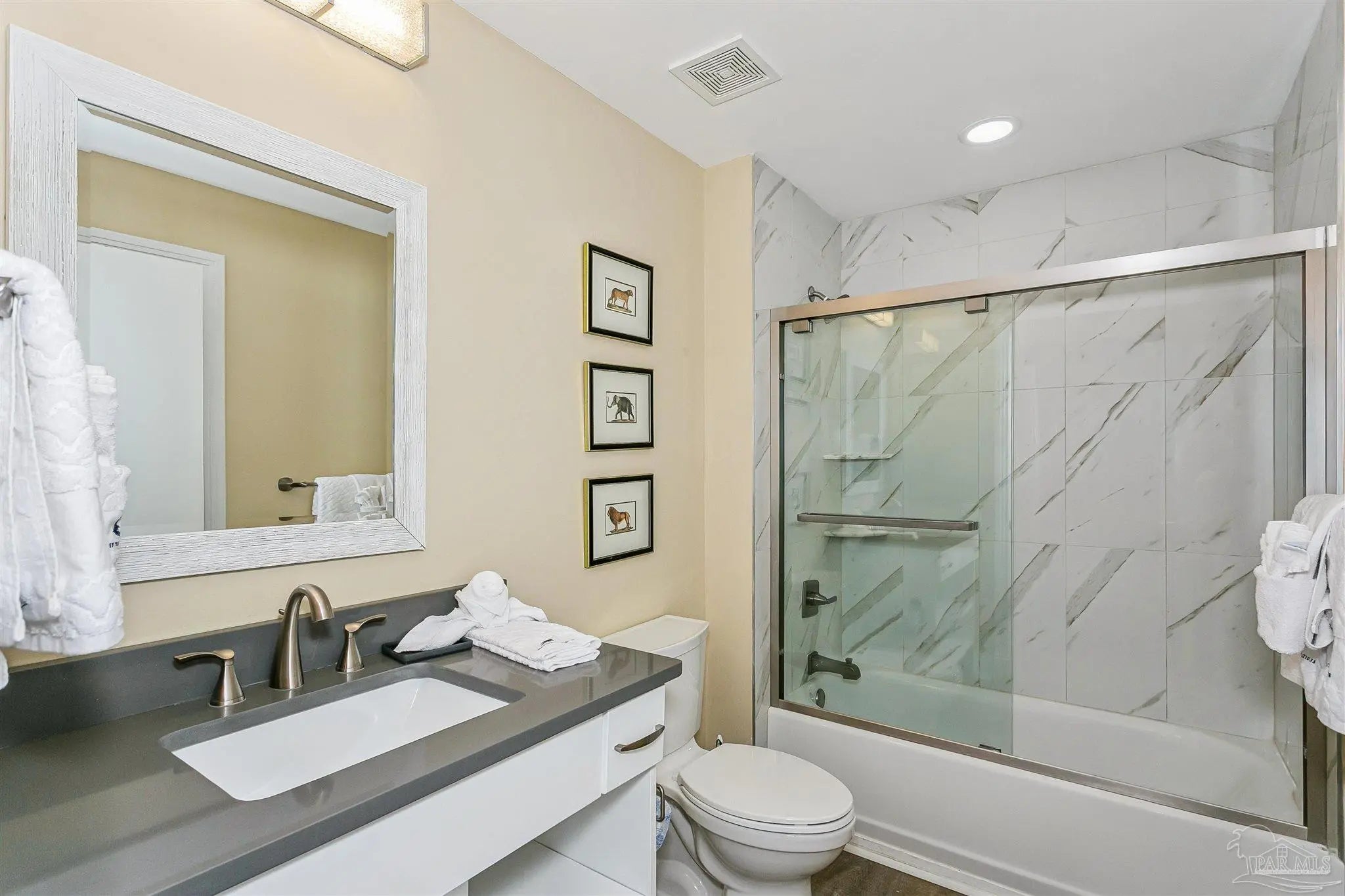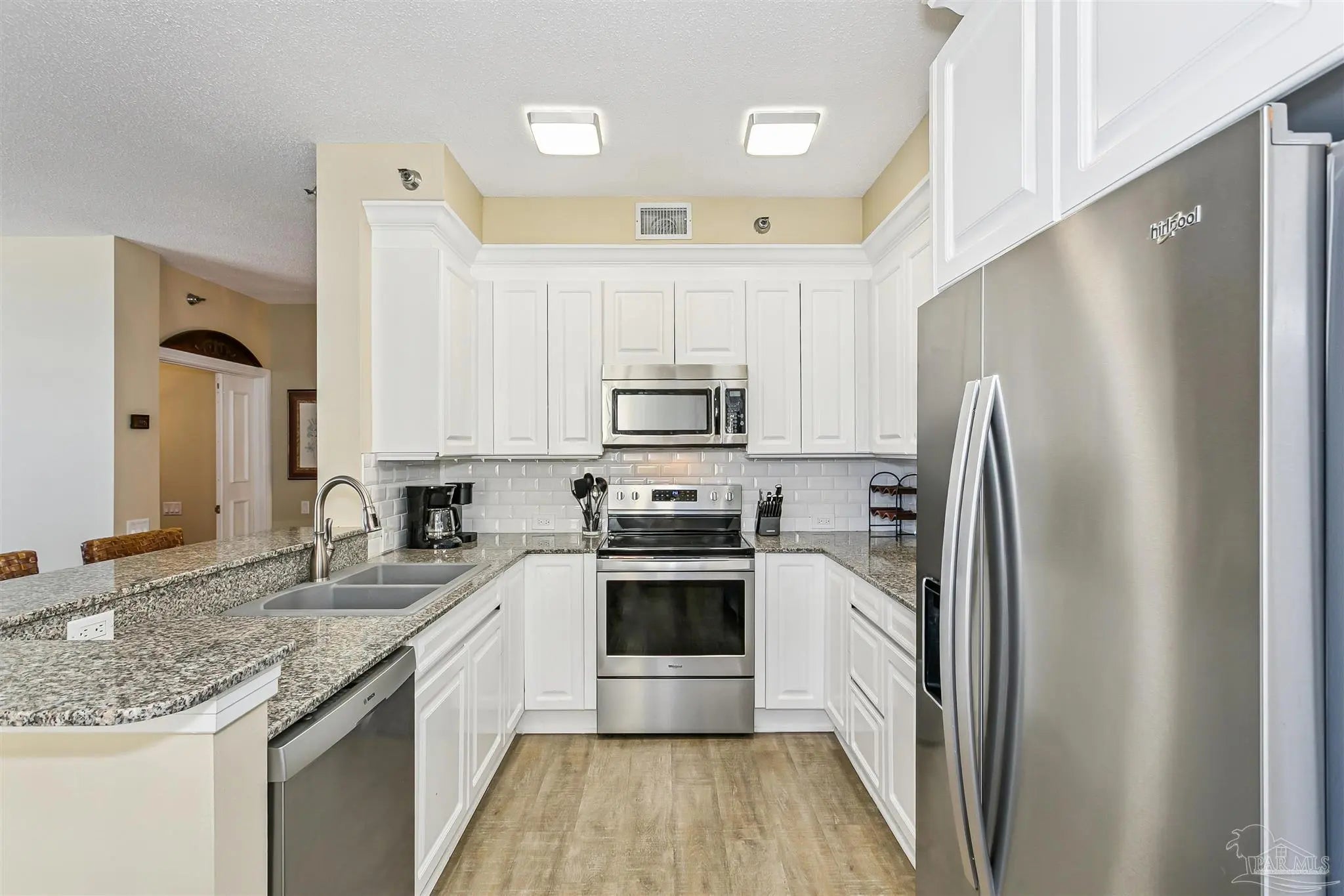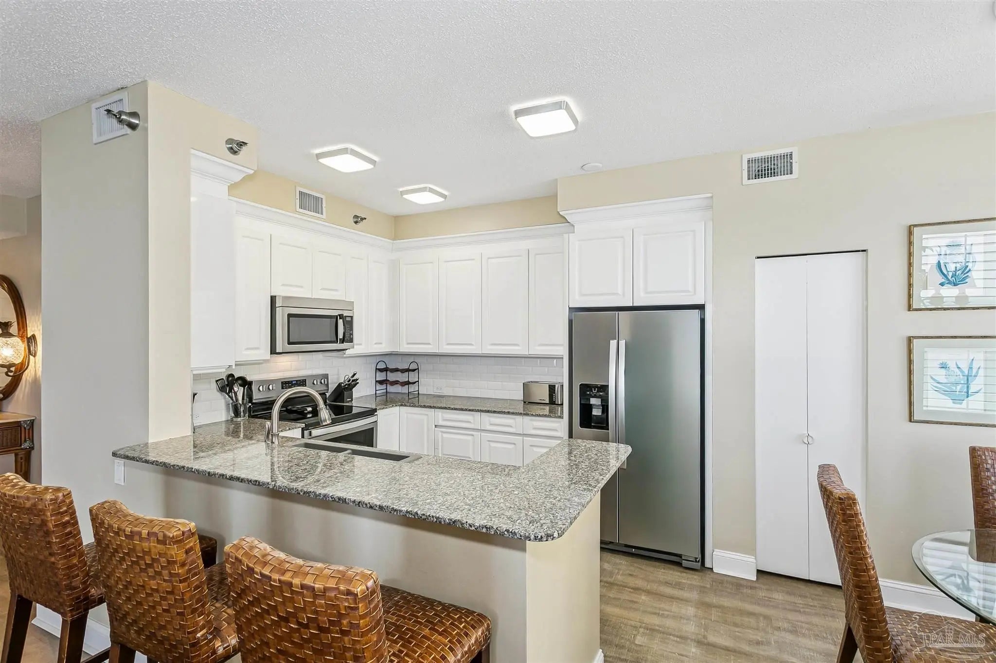 MUST-SEE 3-BEDROOM, 3 BATHROOM RESIDENCE IN BEACH COLONY TOWER WITH CURVED COVERED BALCONY AND SWEEPING GULF VIEWS! BOASTING A FANTASTIC RENTAL HISTORY OF OVER $70,000; THIS CONDO IS AS MUCH A SAVVY INVESTMENT AS IT IS A BREATHTAKING RETREAT. This bright & airy 1,756 sqft residence features wood look LVP flooring throughout and plantation shutters. Whisk up your favorite meals in this modern kitchen featuring white cabinetry, granite countertops, classic subway tile backsplash, stainless appliances, and eat-in bar, or enjoy the dining nook—the ultimate spot to enjoy your morning coffee! The large Gulf-front primary suite has sliding doors leading to the balcony, as well as a large primary bathroom with double vanity, oversized custom-tiled shower, and a perfectly placed picture window. Two additional guest bedrooms and bathrooms are located down a separate hallway for added privacy. Enjoy conveniences such as a full laundry room and spacious owner storage closet to store all your beach chairs, fishing gear, and more. This is a perfect vacation home, investment property, or primary residence. All residences in the tower building have hurricane shutters on the balcony plus heavy-duty sliding glass doors in the living room and primary bedroom to protect your investment. Beach Colony is a gated community with exceptional on-site management and one of the best amenity packages on the island complete with indoor heated pool, 2 outdoor pools, tennis courts, state-of-the-art fitness center, security-coded elevators, community rooms and ample parking for owners and guests. Situated in the heart of Perdido Key and within close proximity to restaurants, shops, multi-use path & The National Seashore.