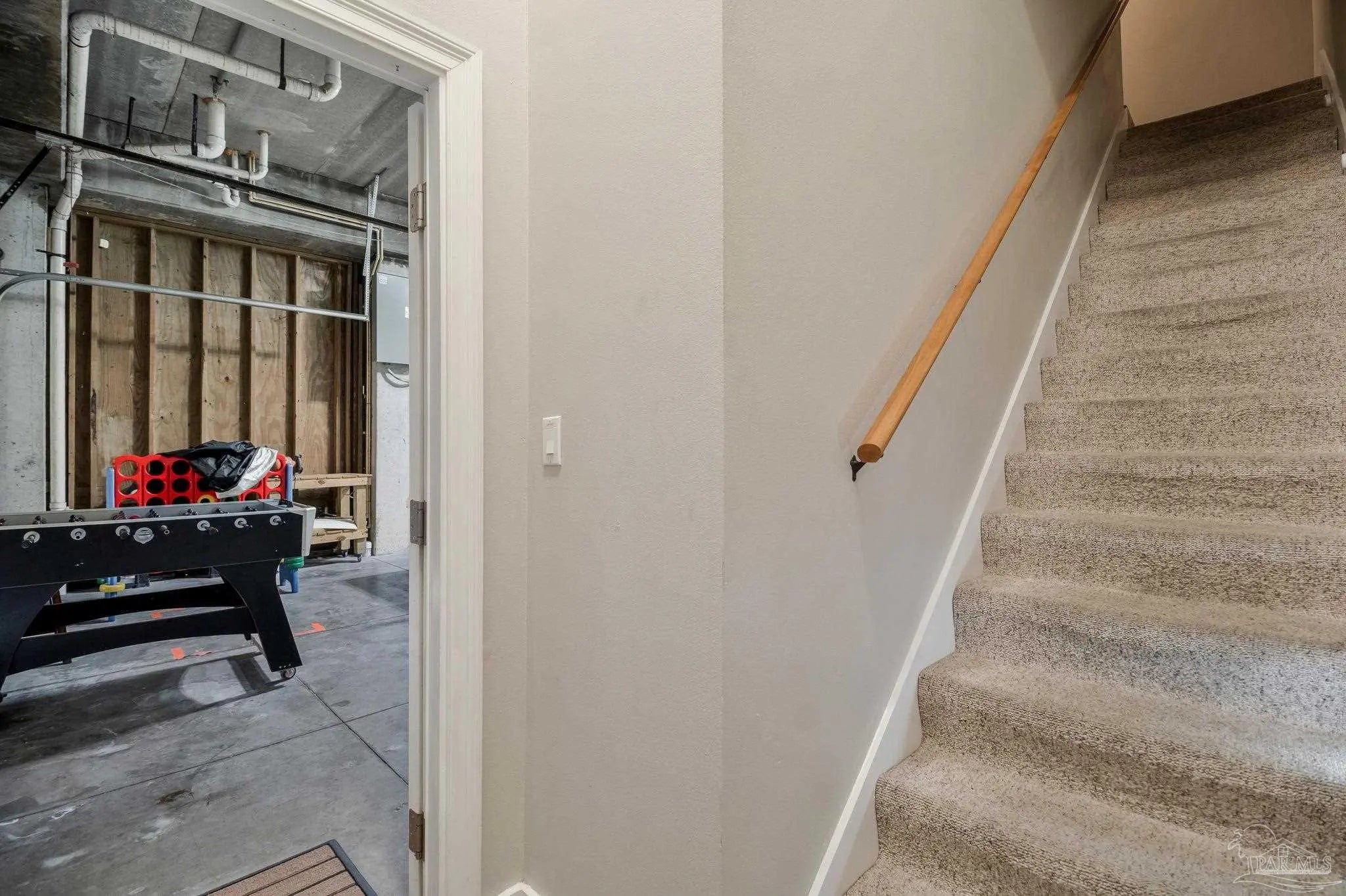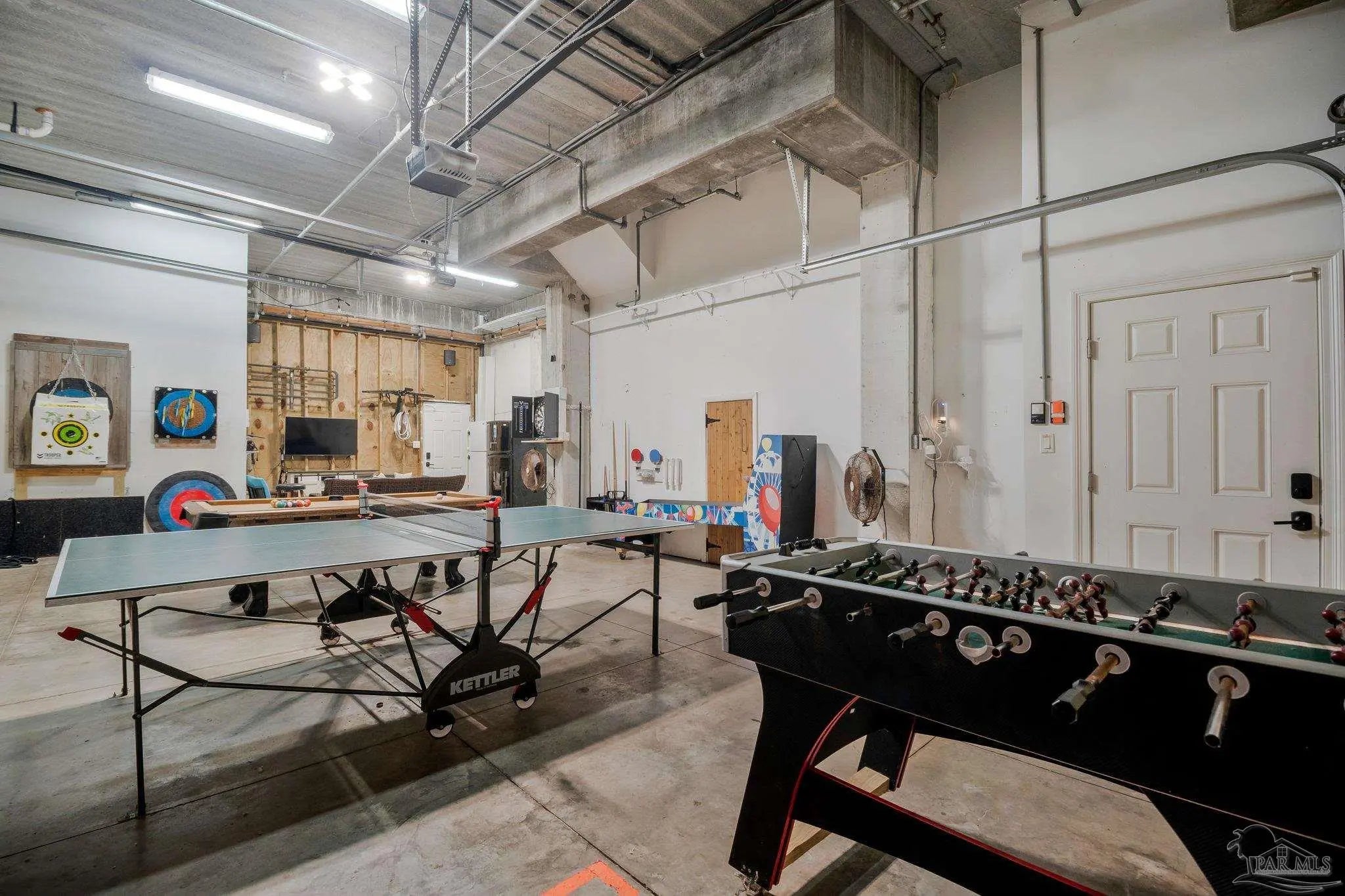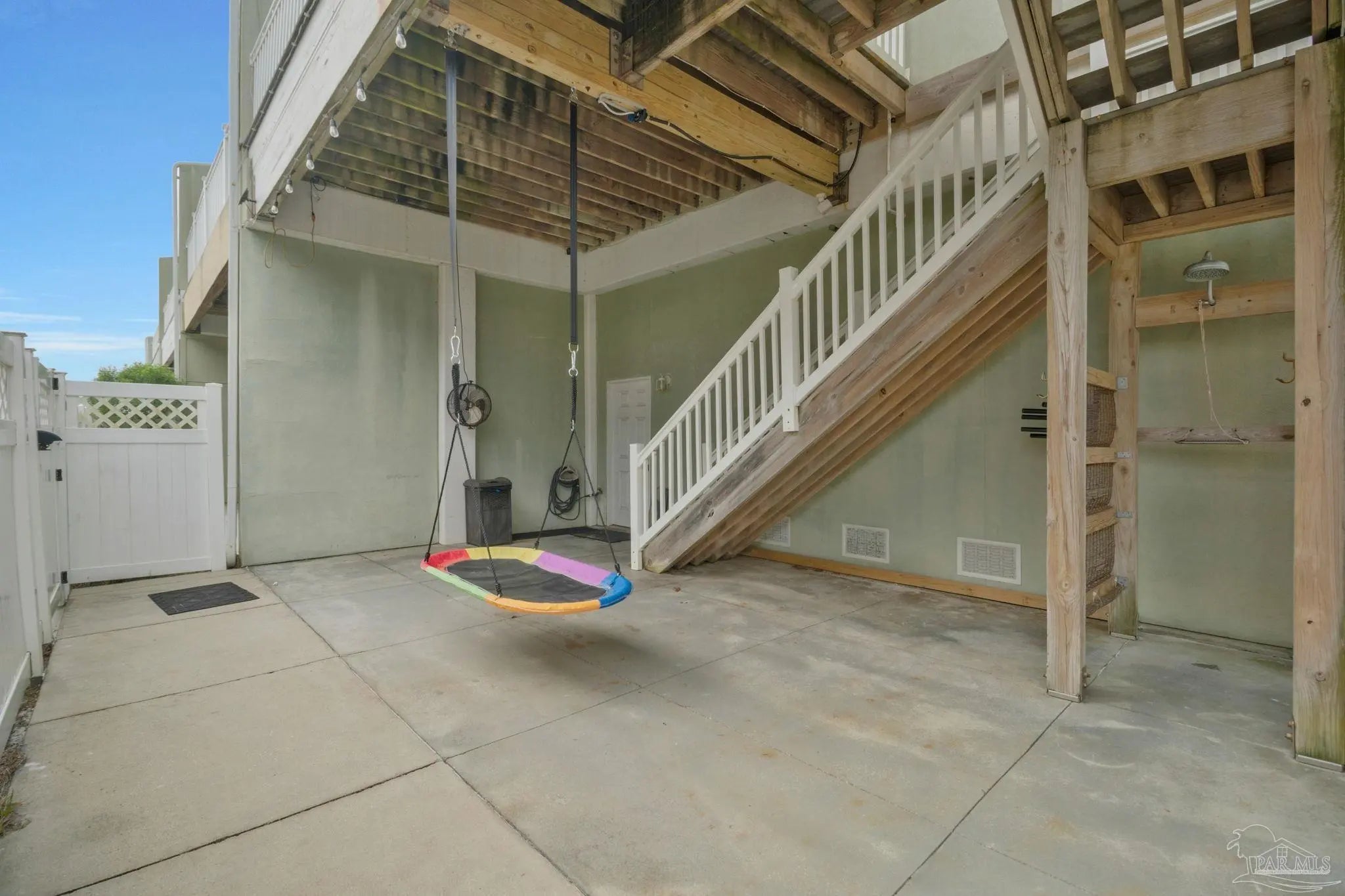 Just steps away from the white sandy beaches of the Gulf, this rare 3-story end-unit townhome on Pensacola Beach offers exceptional space, views, and coastal living. Featuring 4 bedrooms, 3 bathrooms, and an oversized 4+ car garage, this property provides ample room for vehicles, jet skis, golf carts, and beach gear. The main living level includes a spacious guest bedroom, full bathroom, large laundry room, and an open-concept kitchen/living/dining area. The kitchen features mahogany-tone cabinetry, granite countertops, tile backsplash, and stainless steel appliances. A triple-sliding storm door opens to a private balcony with beautiful water views. Australian Cypress hardwood floors and abundant natural light create a warm, inviting atmosphere. The top floor is home to the private master suite with recessed lighting, crown molding, ceiling fan, and its own balcony perfect for sunrise and moonrise views. The master bathroom includes a double vanity, separate shower, and soaking tub. Two additional guest bedrooms on this level feature crown molding, ceiling fans, and plantation shutters, along with a well-appointed guest bathroom with a private commode and shower/tub area. This spacious, well-designed townhome offers comfort, style, and an unbeatable beachside location.