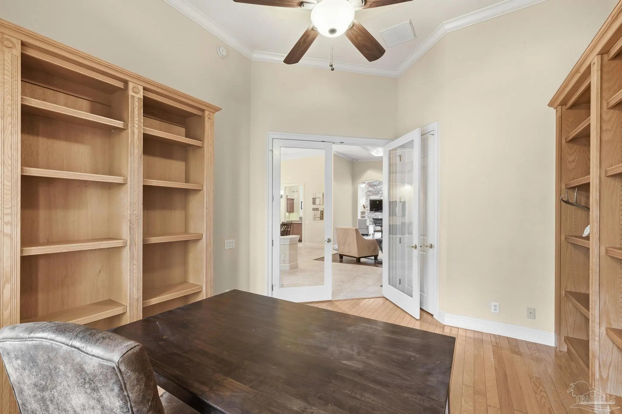 Nestled in the well-established River Gardens neighborhood, this stunning 4-bedroom, 3-bathroom home offers a perfect blend of elegance, comfort, and thoughtful design. From the moment you step into the grand foyer, you’re welcomed by an open and inviting formal dining and living space, ideal for entertaining or enjoying quiet evenings at home. Just off the main entry, a private office provides a refined workspace, complete with French doors, rich hardwood floors, and custom built-in bookshelves. The heart of the home is the beautifully appointed kitchen, featuring granite countertops, abundant cabinetry, a center island with an additional sink, a pantry, and a bar-top seating area. A cozy breakfast nook overlooks the living space, creating a seamless flow for everyday living. The kitchen opens into a spacious main living area highlighted by a striking stone fireplace, flanked by built-in shelving perfect for displaying art or treasured pieces. Step outside to enjoy a screened-in back porch that leads to a paved patio with a custom-built gas fire pit, an ideal setting for gatherings and outdoor entertaining year-round. The expansive primary suite offers a true retreat, complete with dual walk-in closets and private access to the back patio. The luxurious en-suite bath features separate granite vanities, a large garden tub, a walk-in tile shower, and a linen closet for added convenience. Additional highlights include soaring 12-foot ceilings, plantation shutters throughout, a whole-home generator, and an oversized 3-car garage. The spacious laundry room is equally impressive, equipped with cabinetry, granite countertops, and a utility sink. This exceptional home combines timeless style with modern amenities in one of the area’s most desirable neighborhoods, and is conveniently located near shopping, restaurants, hospitals, and more. Don’t miss your opportunity to make it yours.