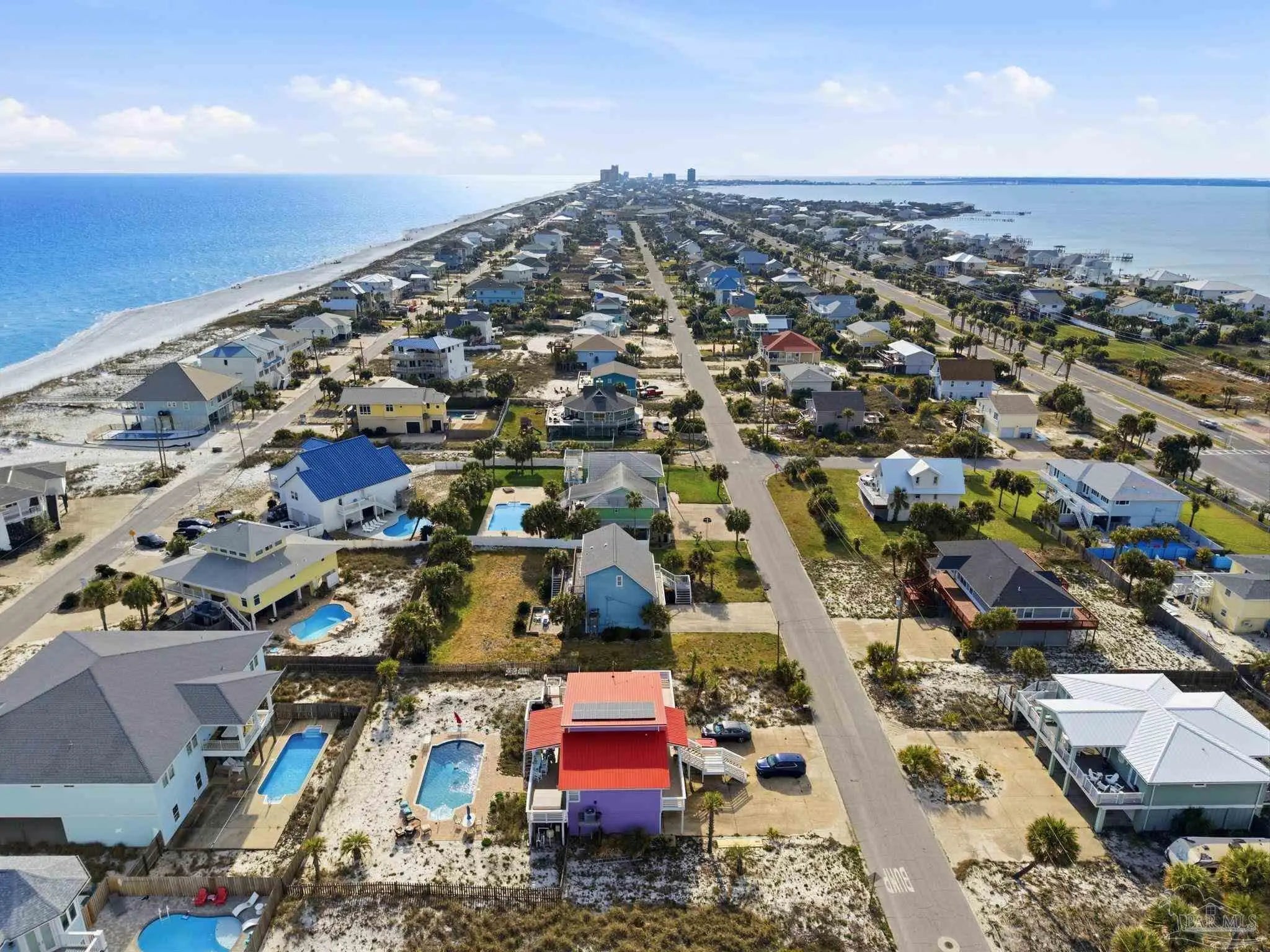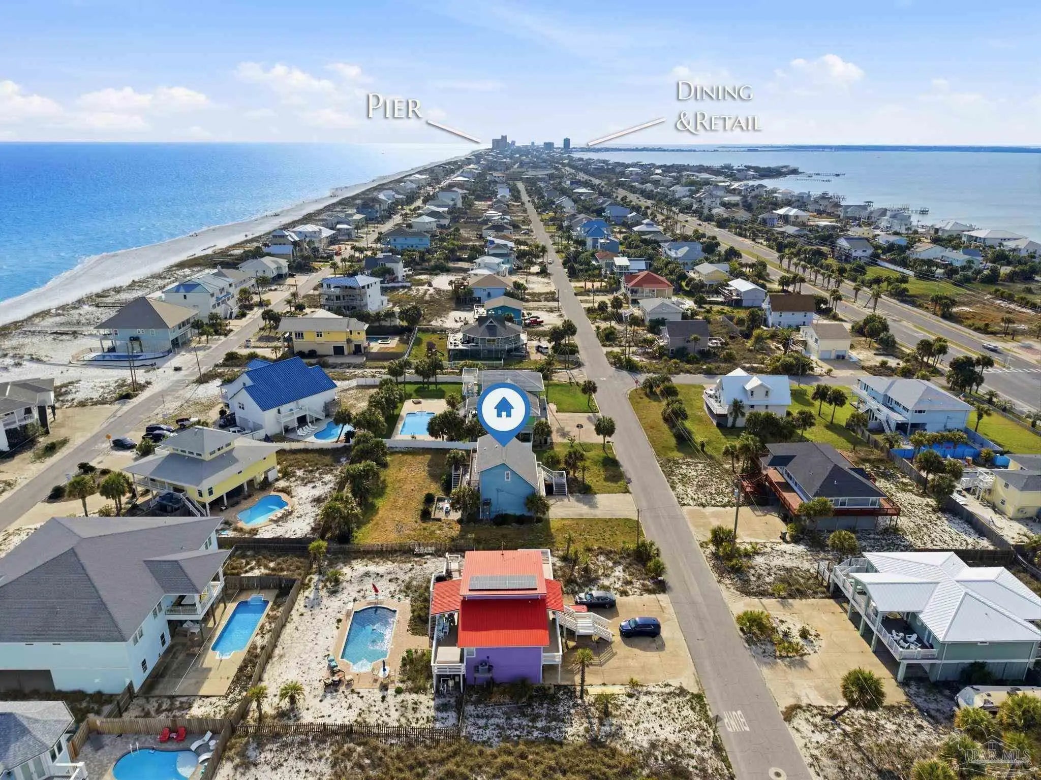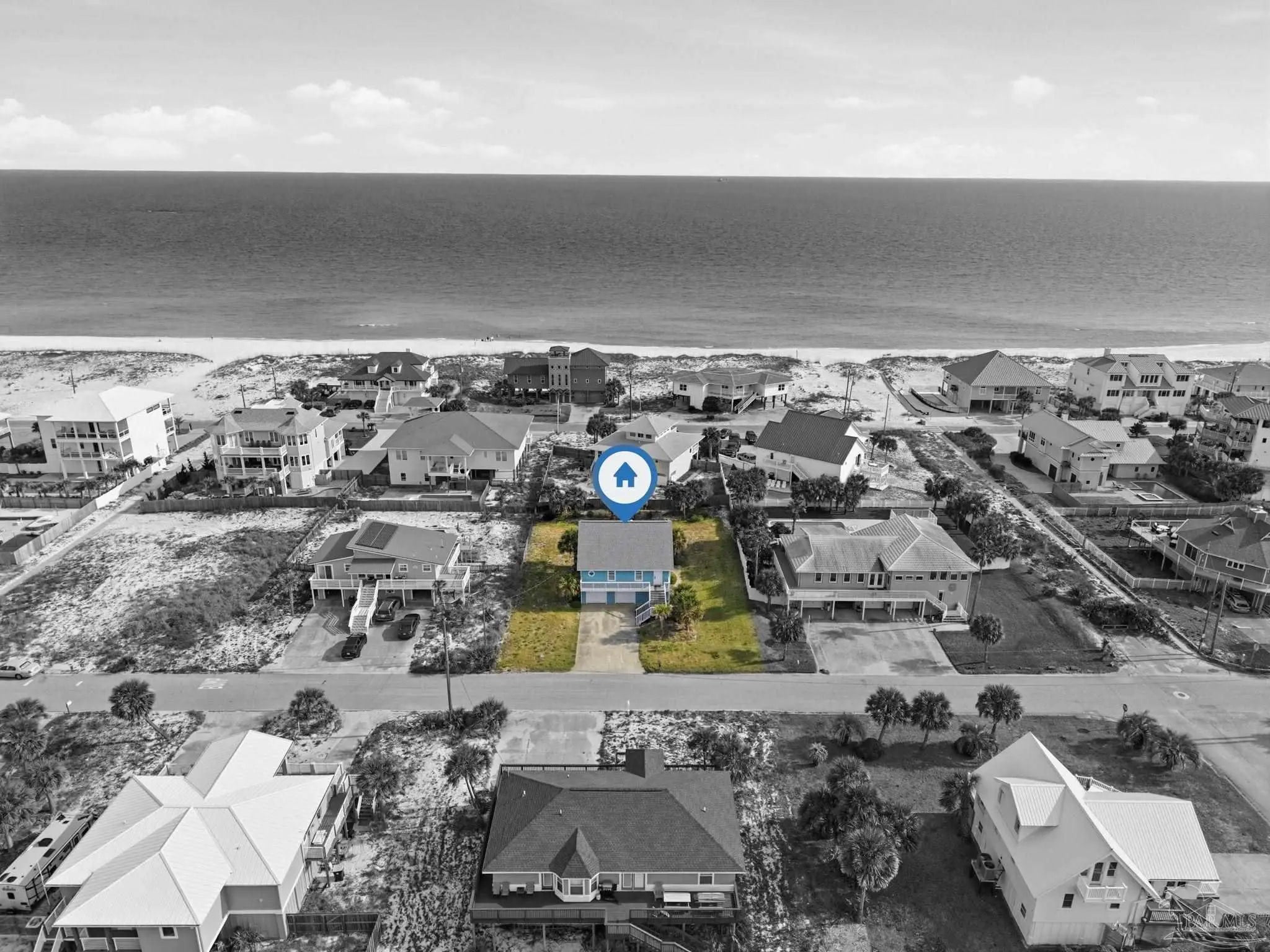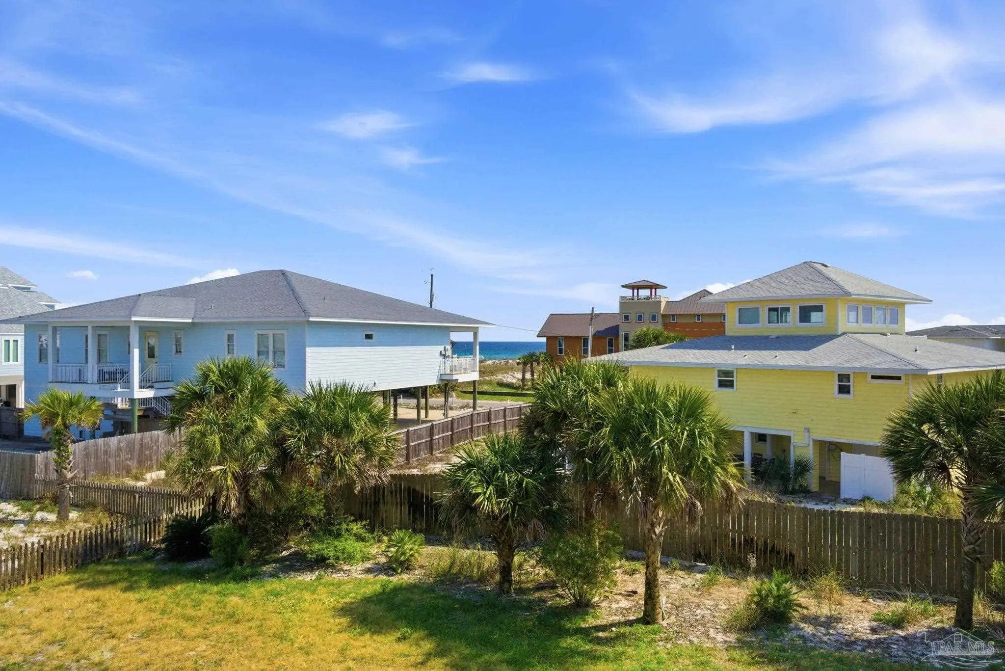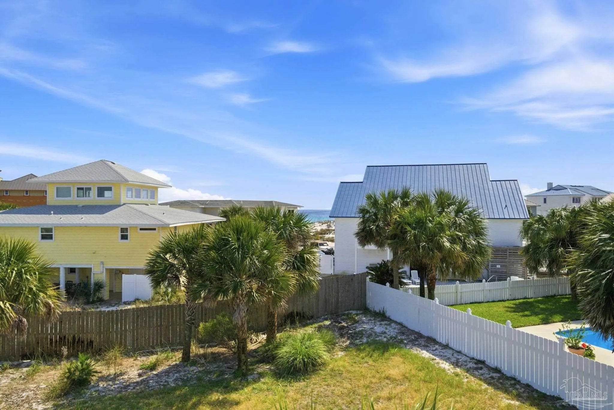 Coastal living at its best on Pensacola Beach, Gulf views, and just one block to the sand set the tone for this relaxed, beachside retreat. Full of classic coastal character, this home offers an easy, open layout designed for both everyday living and laid-back entertaining. The main level features a bright open-concept living, dining, and kitchen area with tile flooring throughout and a modern kitchen with stainless steel appliances. The primary suite is conveniently located on the main floor, complete with a private bath and direct access to the balcony, perfect for enjoying morning coffee with a coastal breeze. Upstairs, two additional bedrooms are connected by a Jack-and-Jill bathroom, and each opens onto a private upper deck, creating the perfect space to unwind after a day at the beach. Outdoor living truly shines with full-length balconies on both levels, offering inviting spaces to take in the views and coastal air. The oversized lot provides room for a future pool, while the backyard is ideal for gatherings, cookouts, and easy beach living. Additional highlights include an oversized two-car garage with plenty of space for beach gear, bikes, and extra storage, or the potential to create additional recreational space. Centrally located on Pensacola Beach with convenient access to dining, shopping, and local attractions, this property is well-suited as a primary residence, second home, or investment opportunity.