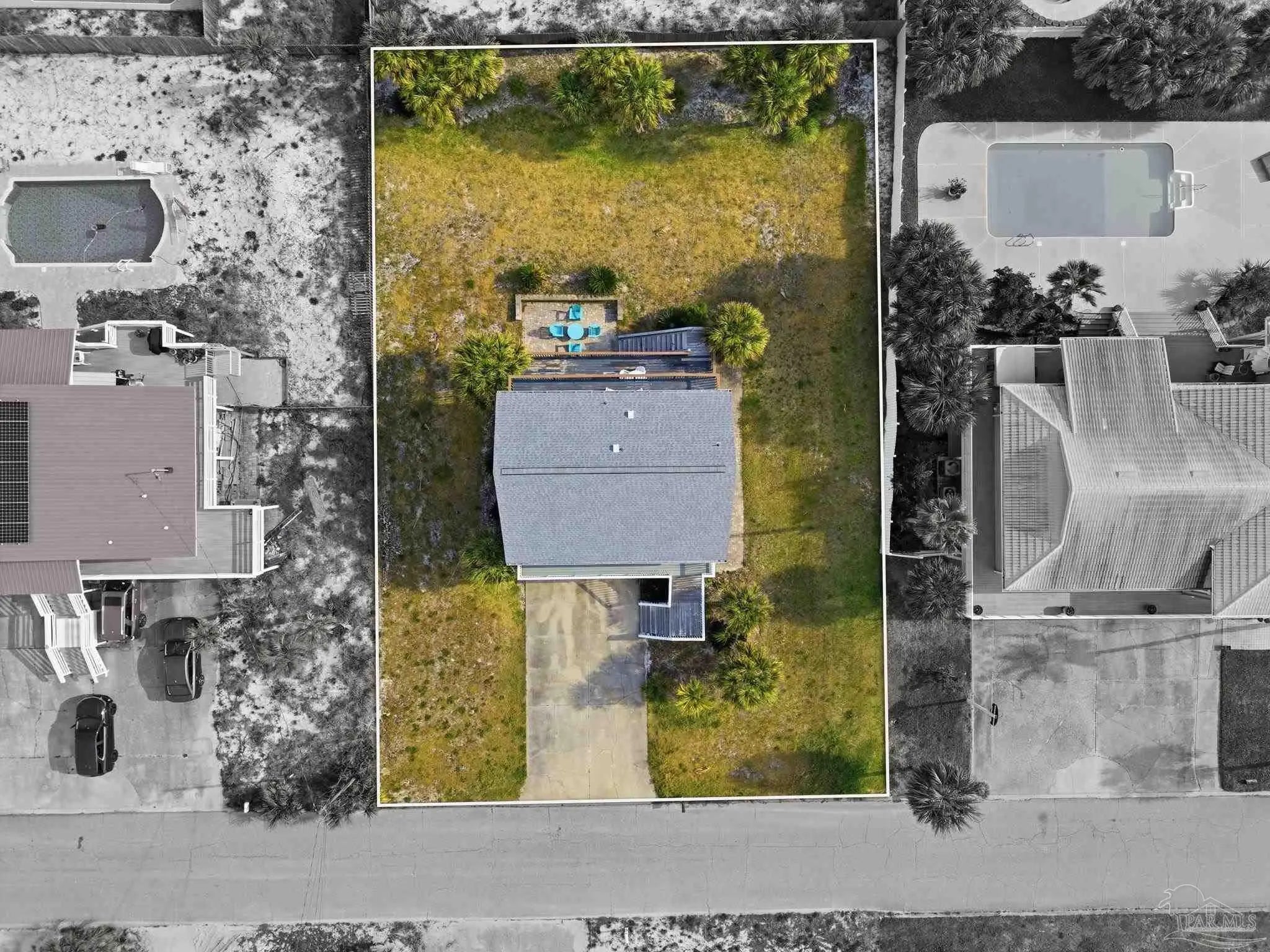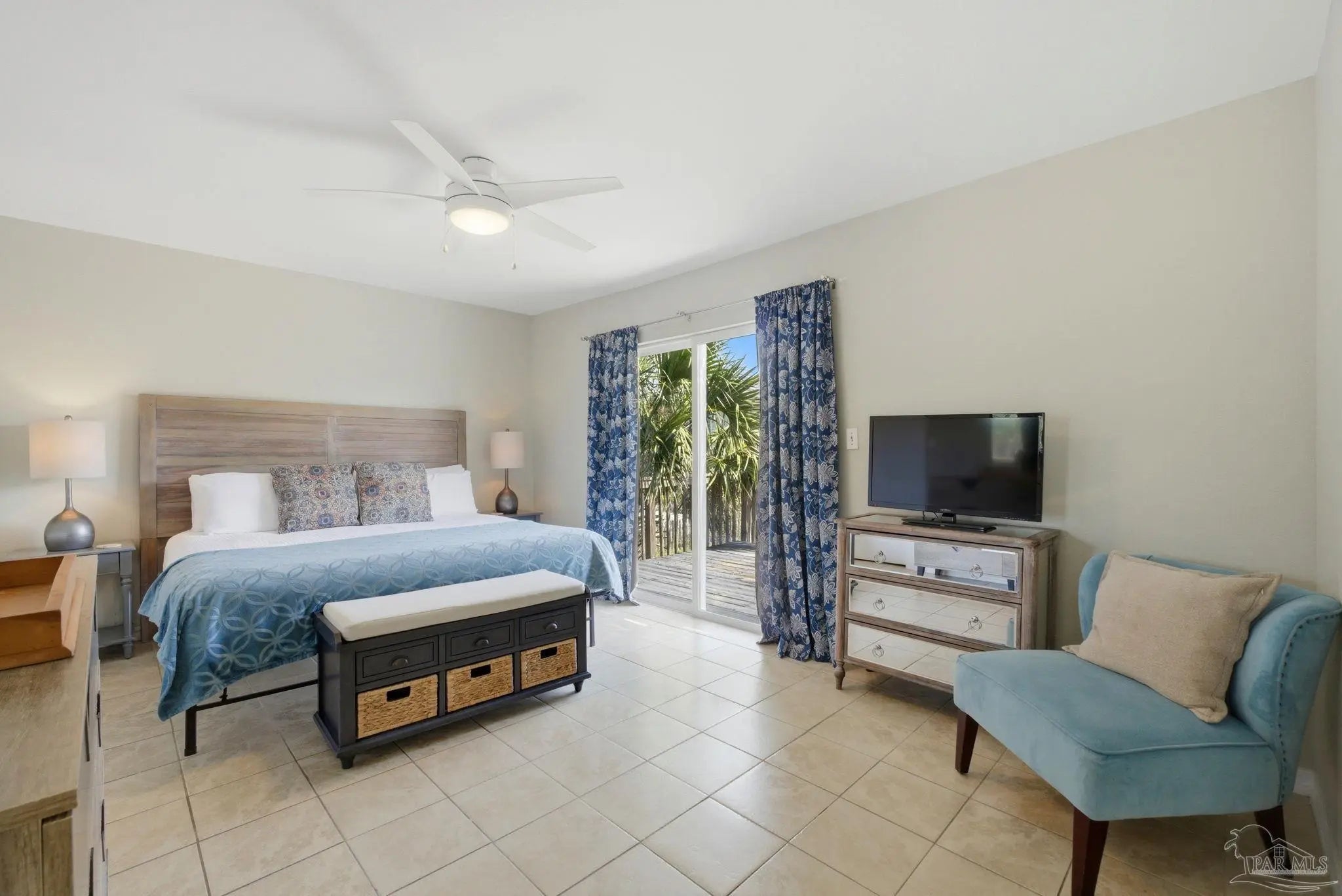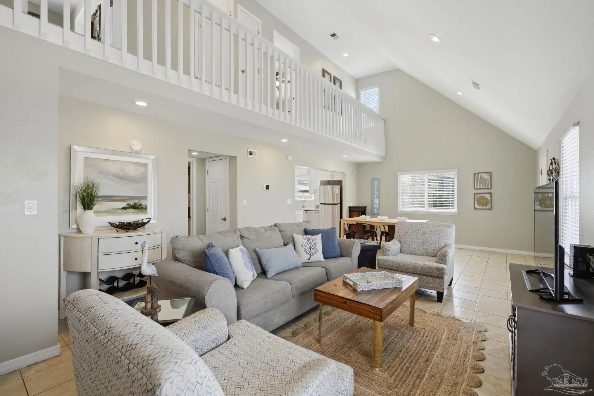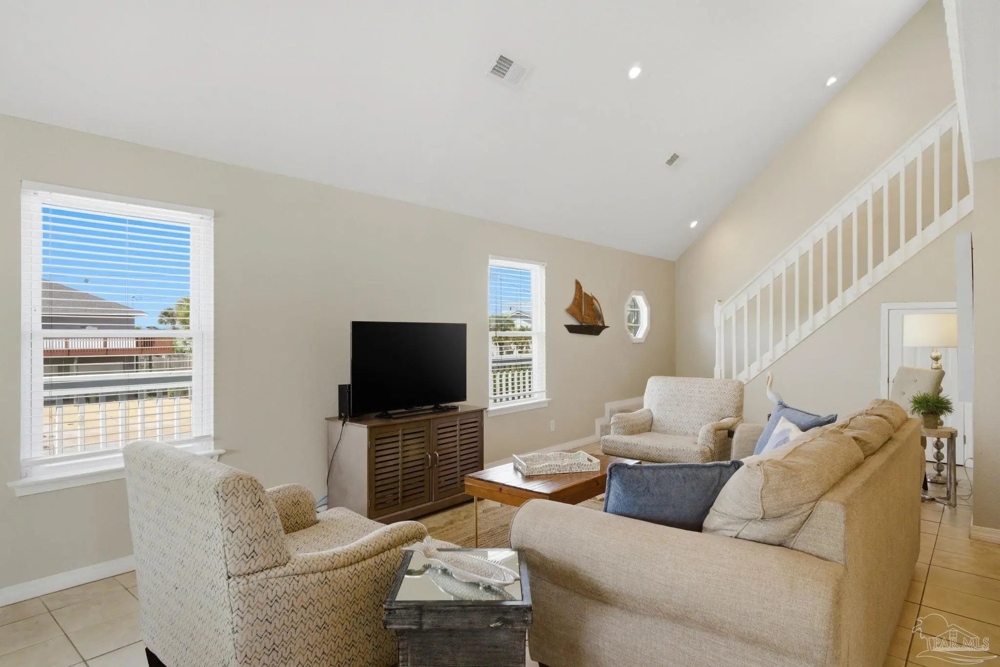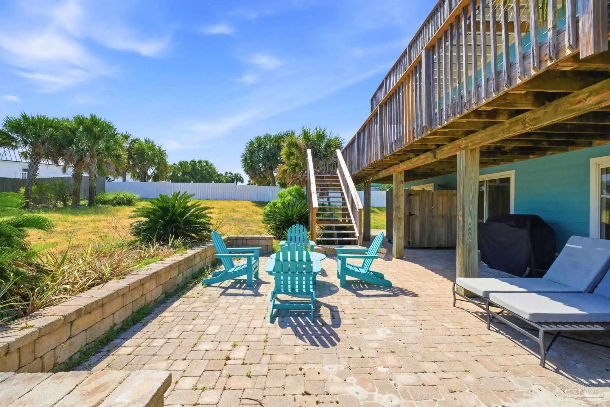 Coastal living at its best on Pensacola Beach, Gulf views, and just one block to the sand set the tone for this relaxed, beachside retreat. Full of classic coastal character, this home offers an easy, open layout designed for both everyday living and laid-back entertaining. The main level features a bright open-concept living, dining, and kitchen area with tile flooring throughout and a modern kitchen with stainless steel appliances. The primary suite is conveniently located on the main floor, complete with a private bath and direct access to the balcony, perfect for enjoying morning coffee with a coastal breeze. Upstairs, two additional bedrooms are connected by a Jack-and-Jill bathroom, and each opens onto a private upper deck, creating the perfect space to unwind after a day at the beach. Outdoor living truly shines with full-length balconies on both levels, offering inviting spaces to take in the views and coastal air. The oversized lot provides room for a future pool, while the backyard is ideal for gatherings, cookouts, and easy beach living. Additional highlights include an oversized two-car garage with plenty of space for beach gear, bikes, and extra storage, or the potential to create additional recreational space. Centrally located on Pensacola Beach with convenient access to dining, shopping, and local attractions, this property is well-suited as a primary residence, second home, or investment opportunity.