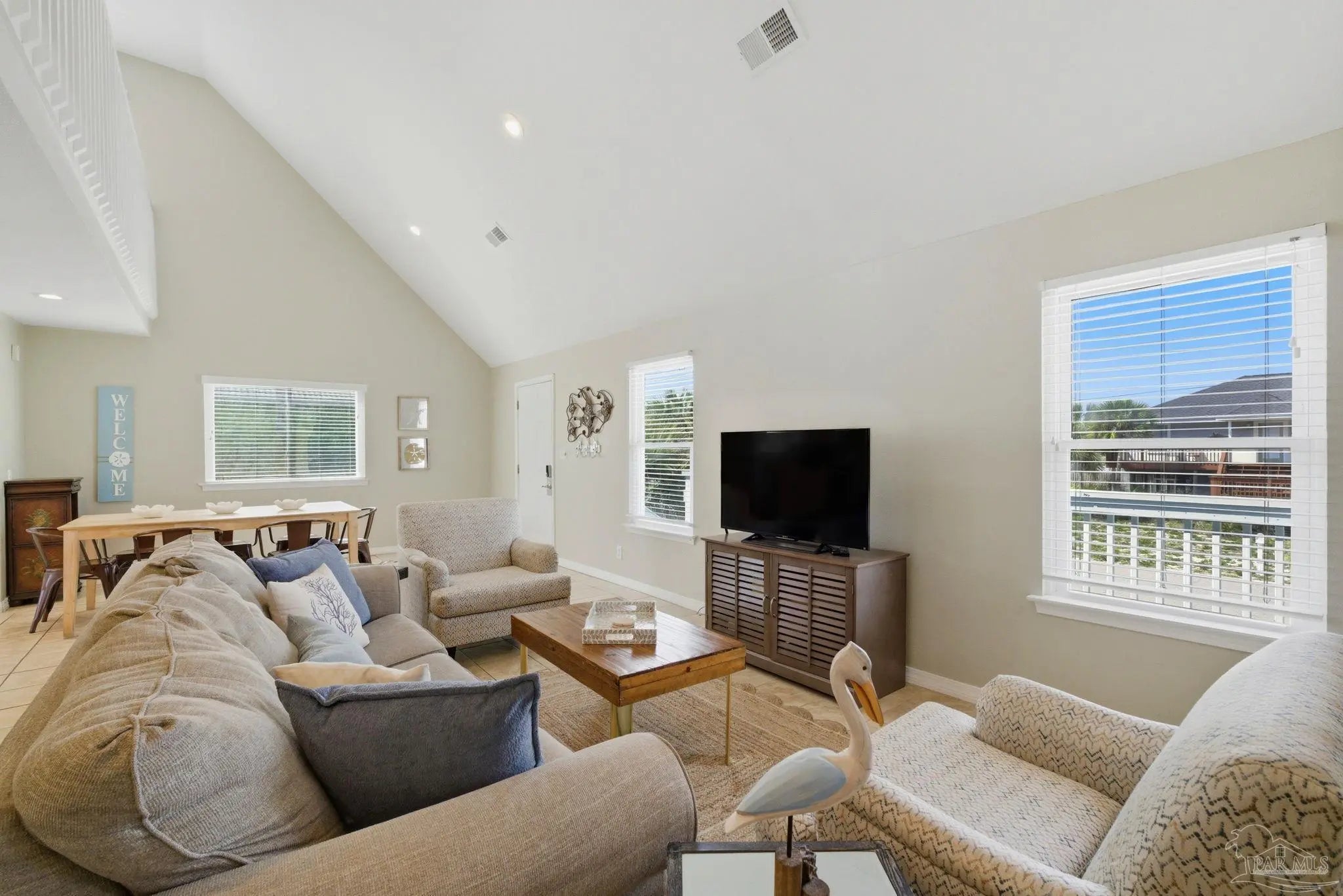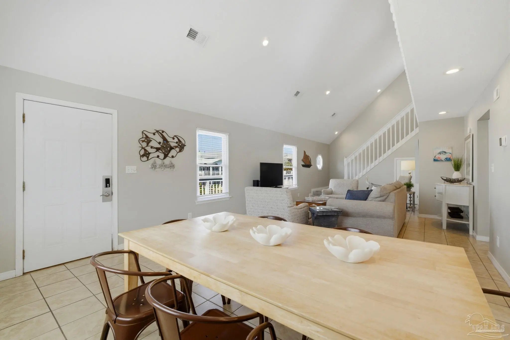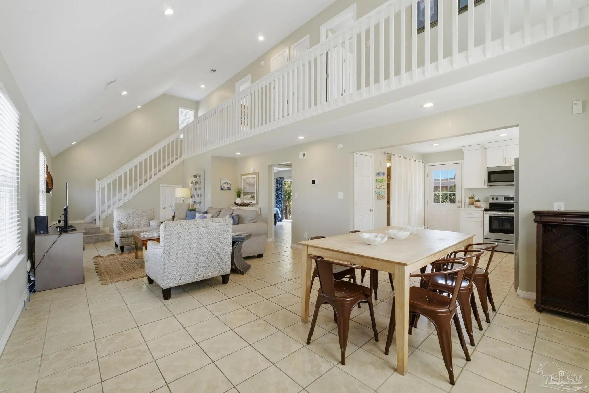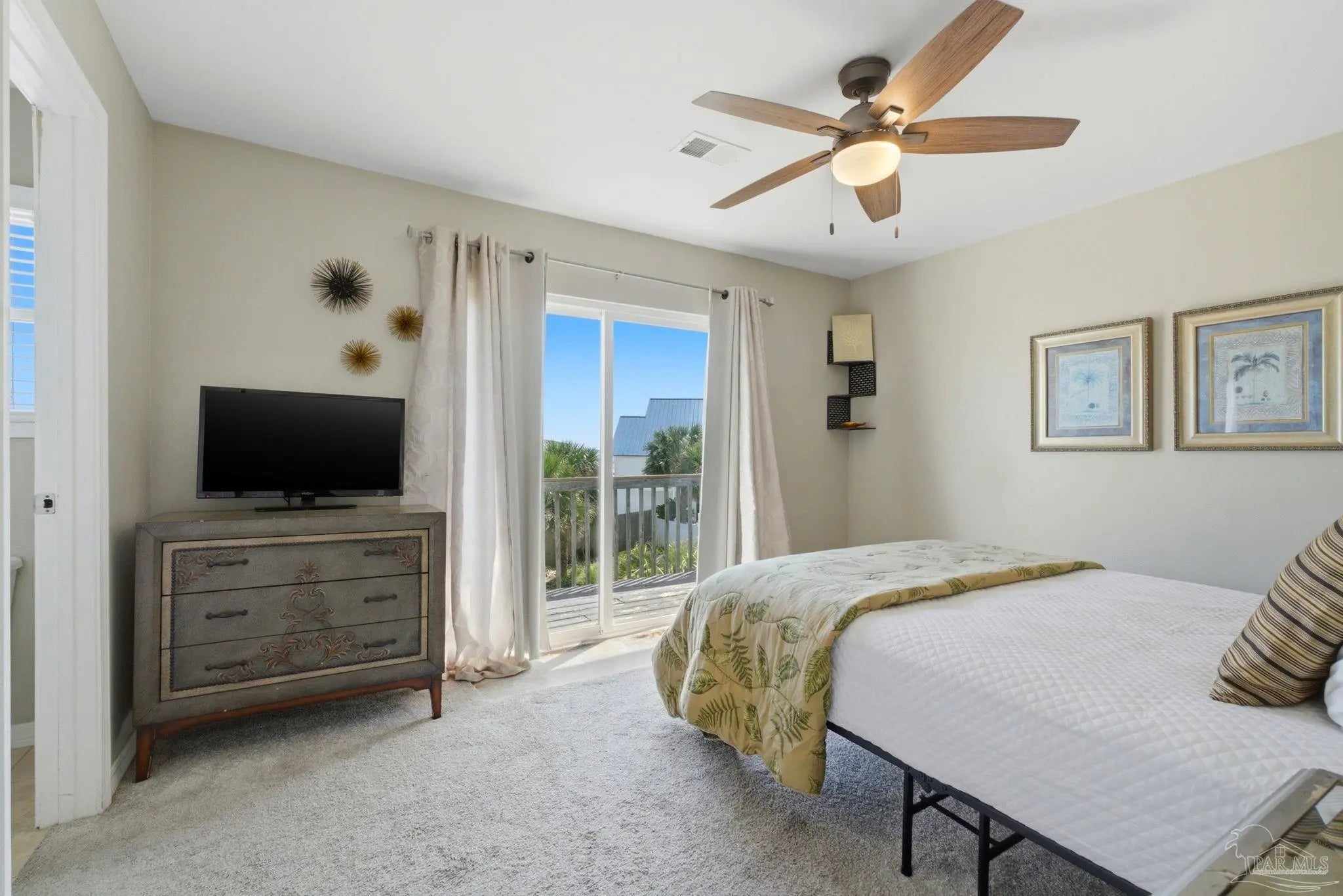Coastal living at its best on Pensacola Beach, Gulf views, and just one block to the sand set the tone for this relaxed, beachside retreat. Full of classic coastal character, this home offers an easy, open layout designed for both everyday living and laid-back entertaining. The main level features a bright open-concept living, dining, and kitchen area with tile flooring throughout and a modern kitchen with stainless steel appliances. The primary suite is conveniently located on the main floor, complete with a private bath and direct access to the balcony, perfect for enjoying morning coffee with a coastal breeze. Upstairs, two additional bedrooms are connected by a Jack-and-Jill bathroom, and each opens onto a private upper deck, creating the perfect space to unwind after a day at the beach. Outdoor living truly shines with full-length balconies on both levels, offering inviting spaces to take in the views and coastal air. The oversized lot provides room for a future pool, while the backyard is ideal for gatherings, cookouts, and easy beach living. Additional highlights include an oversized two-car garage with plenty of space for beach gear, bikes, and extra storage, or the potential to create additional recreational space. Centrally located on Pensacola Beach with convenient access to dining, shopping, and local attractions, this property is well-suited as a primary residence, second home, or investment opportunity.