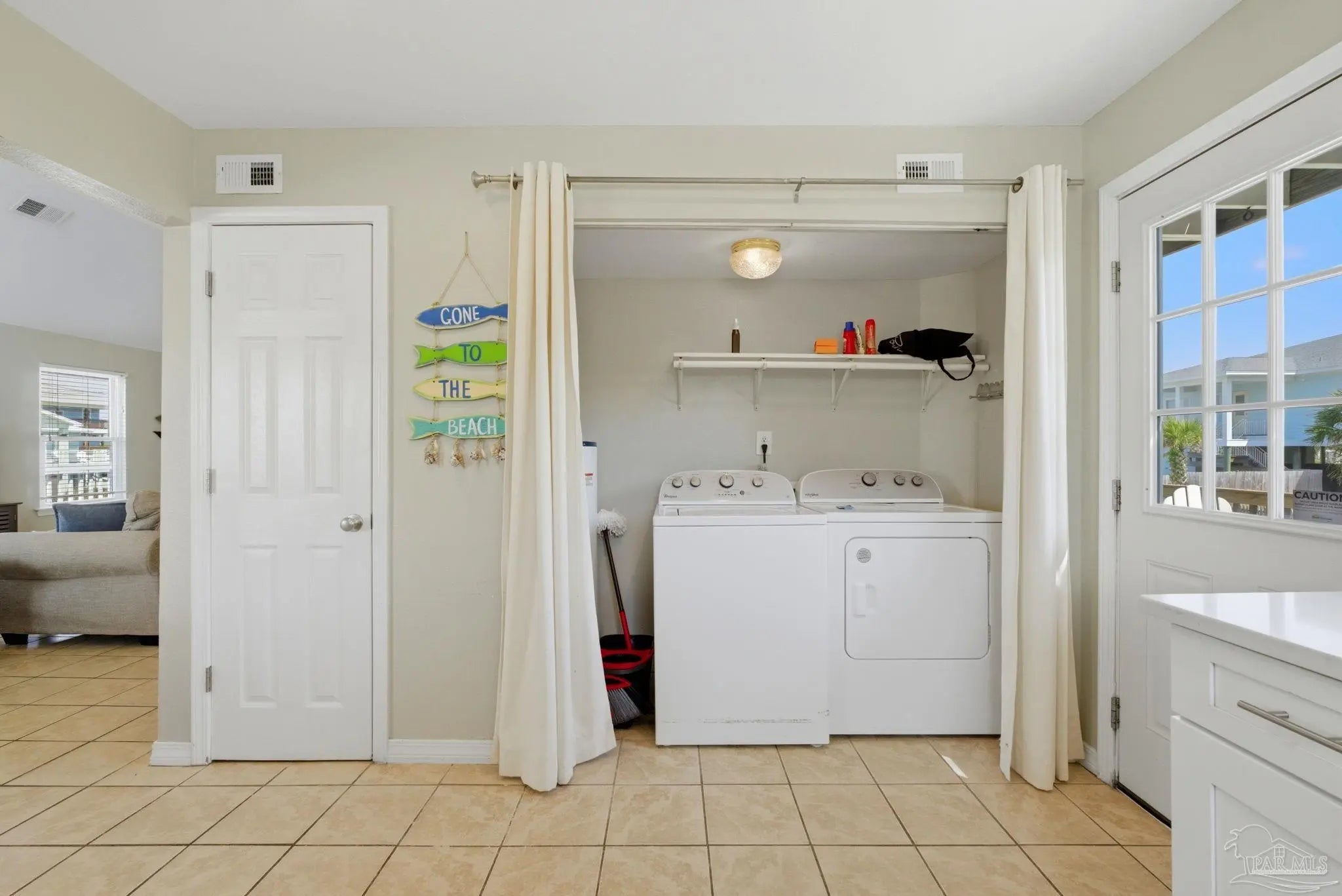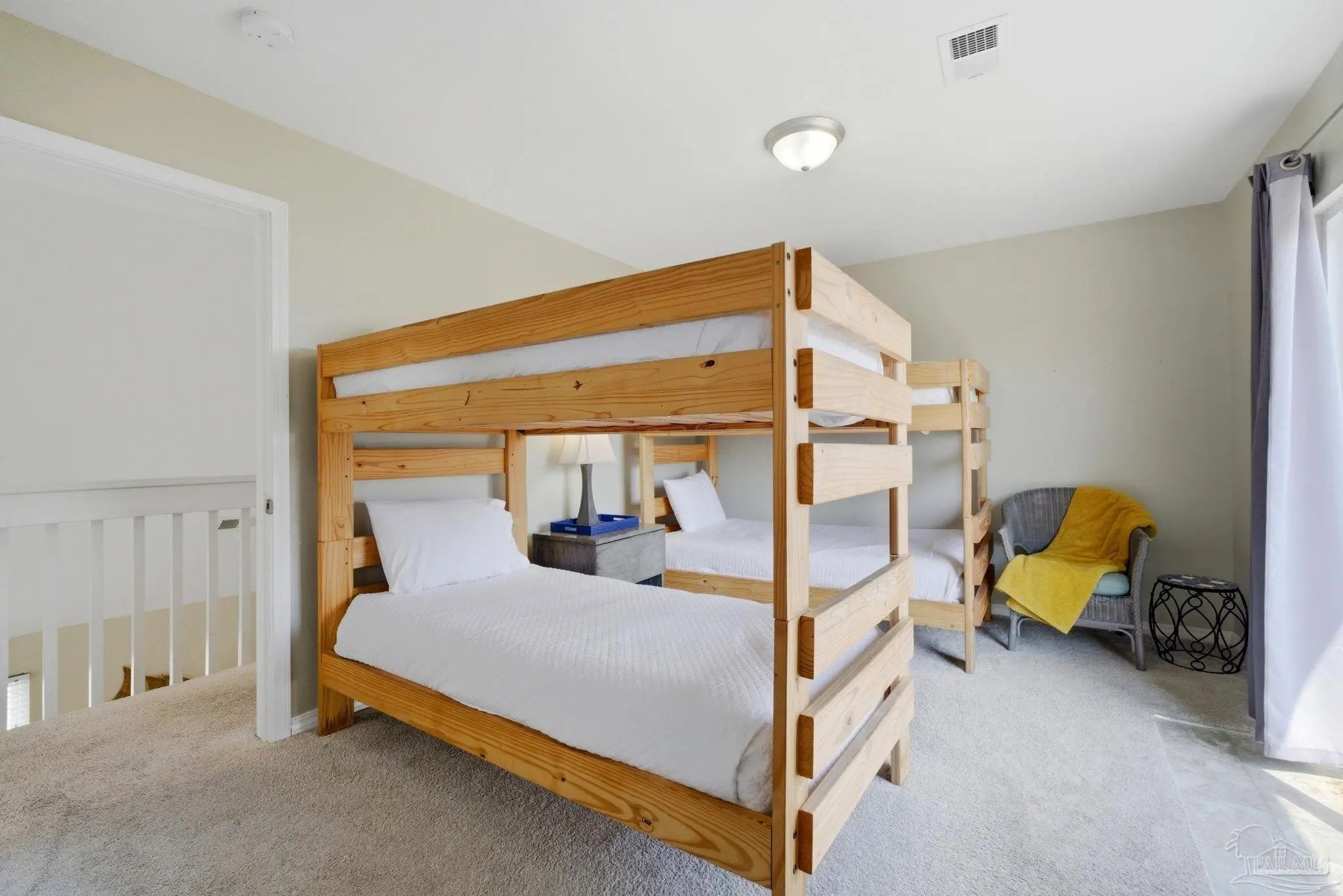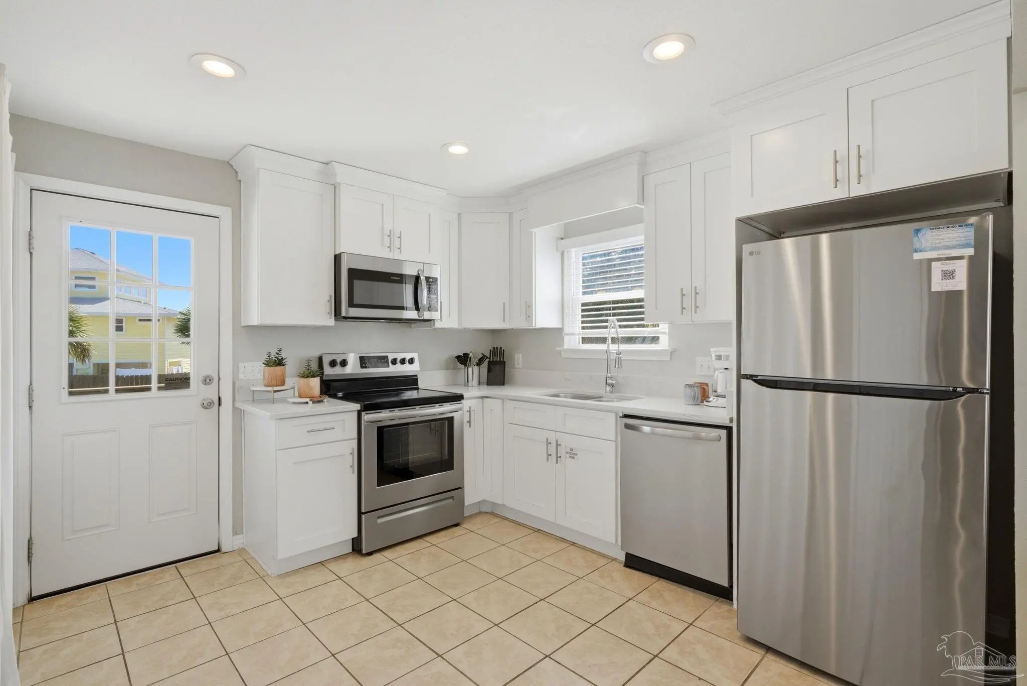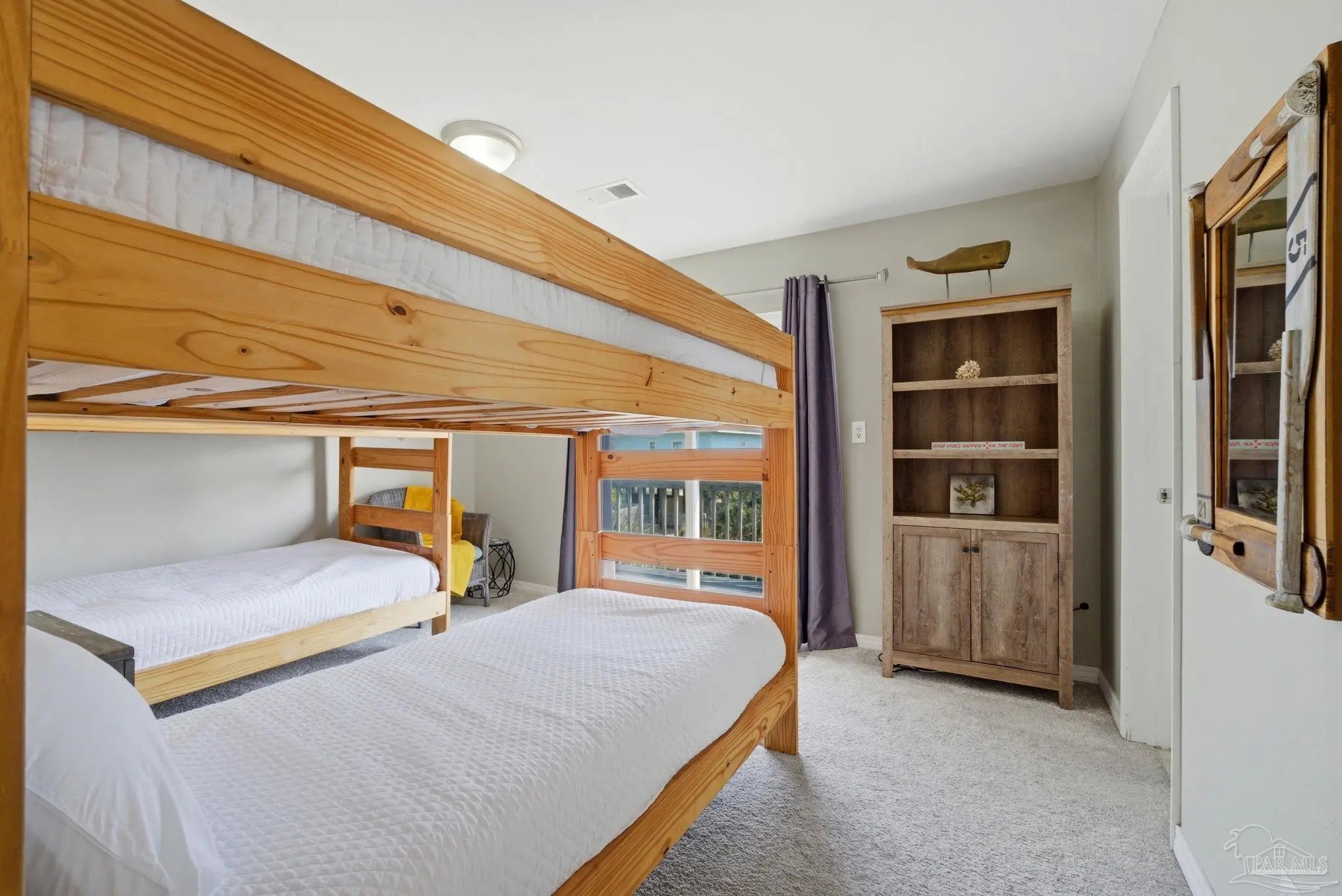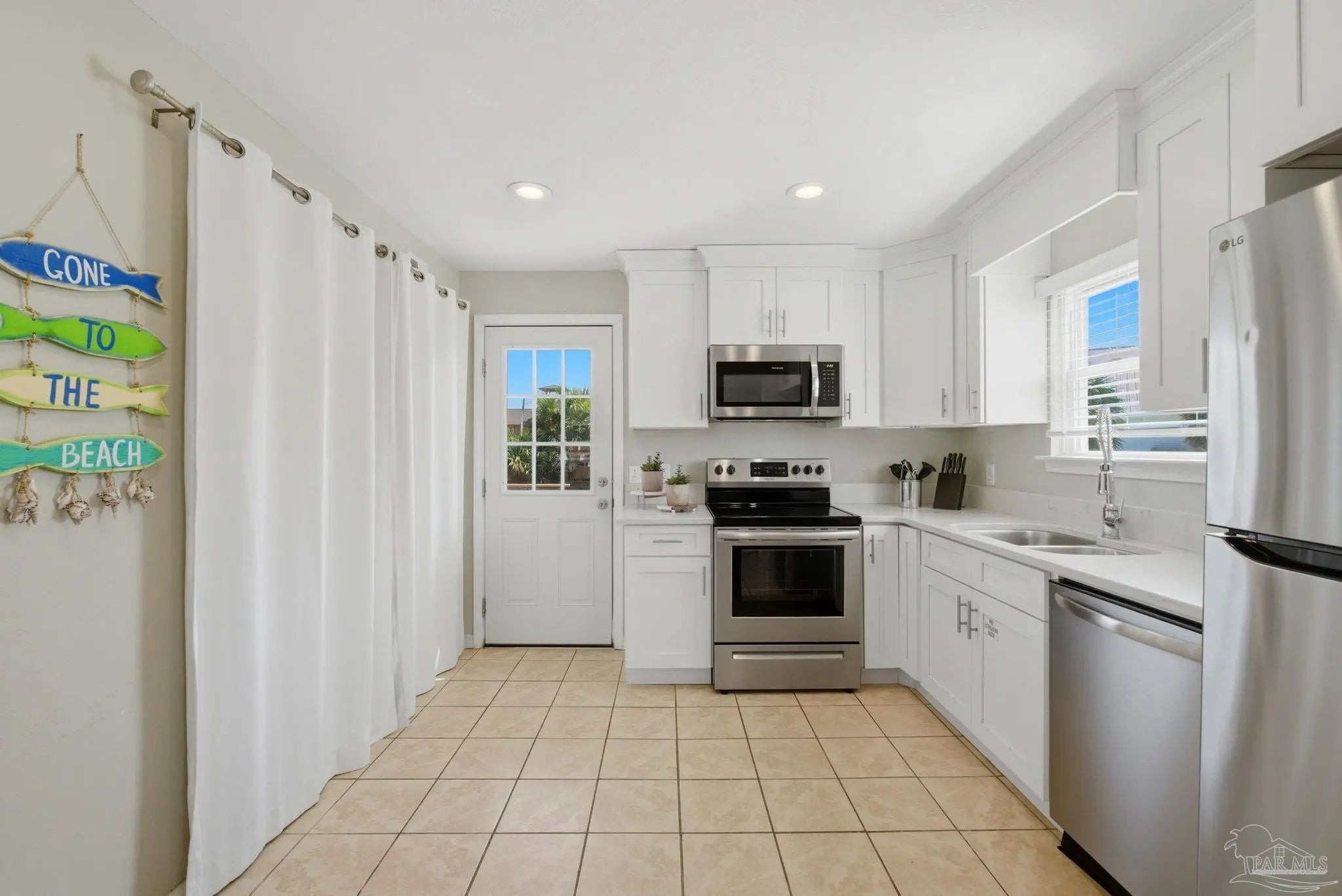 Coastal living at its best on Pensacola Beach, Gulf views, and just one block to the sand set the tone for this relaxed, beachside retreat. Full of classic coastal character, this home offers an easy, open layout designed for both everyday living and laid-back entertaining. The main level features a bright open-concept living, dining, and kitchen area with tile flooring throughout and a modern kitchen with stainless steel appliances. The primary suite is conveniently located on the main floor, complete with a private bath and direct access to the balcony, perfect for enjoying morning coffee with a coastal breeze. Upstairs, two additional bedrooms are connected by a Jack-and-Jill bathroom, and each opens onto a private upper deck, creating the perfect space to unwind after a day at the beach. Outdoor living truly shines with full-length balconies on both levels, offering inviting spaces to take in the views and coastal air. The oversized lot provides room for a future pool, while the backyard is ideal for gatherings, cookouts, and easy beach living. Additional highlights include an oversized two-car garage with plenty of space for beach gear, bikes, and extra storage, or the potential to create additional recreational space. Centrally located on Pensacola Beach with convenient access to dining, shopping, and local attractions, this property is well-suited as a primary residence, second home, or investment opportunity.