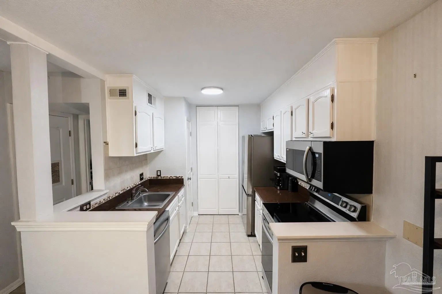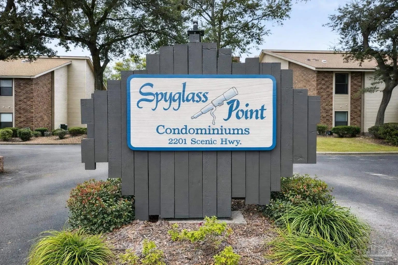 Welcome to Spyglass Point Condominiums! Pull in to your two assigned parking spots right outside the front door, step inside 651 square feet of comfortable living space, and you'll find like-new appliances already waiting for you, including an electric oven, refrigerator, washer, and dryer. Step out onto your private porch and you're sitting right across the street from Pensacola Bay. Take a peek over the fence, you might just catch a glimpse of that gorgeous water! The community pool is ready for those hot Florida afternoons when the beach just isn't in the cards. The HOA keeps life simple by handling groundskeeping and trash disposal, and they already replaced the roof in 2022, so the big exterior stuff is taken care of. Come take a look!