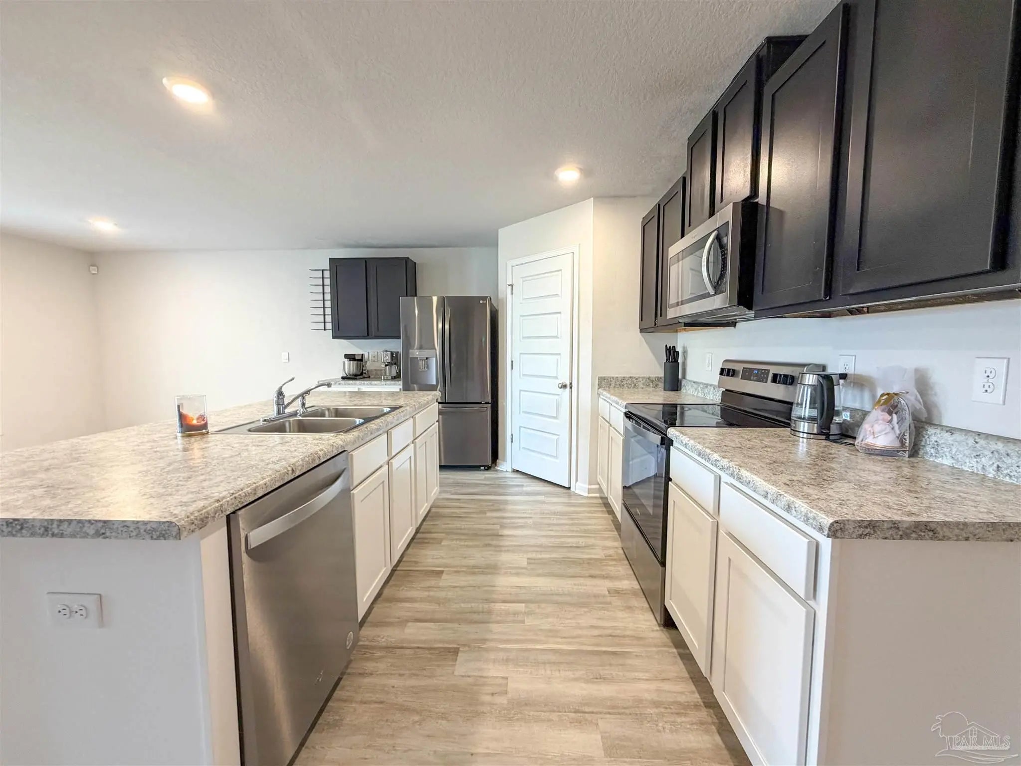 Four-bedroom, two-bath long-term rental home in the Woodlands subdivision with attached two-car garage. The Cali floorplan features three front guest bedrooms with ample closets and an open-concept kitchen/living area with granite countertops, stainless steel appliances, and a large pantry. The primary bedroom includes a spacious walk-in closet and a beautiful bathroom. The home has LVP flooring and carpeted bedrooms. The kitchen offers a microwave, stove/oven, dishwasher, and refrigerator. The backyard is fully fenced. Convenient location with a neighborhood park and splashpad! Pets considered: up to 2 under 100 lbs, age 1+, prior approval, third-party screening; aggressive breeds not considered. Additional deposit required for pets. All Hometown Properties of the Gulf Coast residents are enrolled in the Resident Benefits Package (RBP). RBP is $50 per month and includes liability insurance, credit building for on-time rent, up to $1M ID theft protection, HVAC filter delivery (where applicable), resident rewards, and on-demand pest control. More details provided with application.