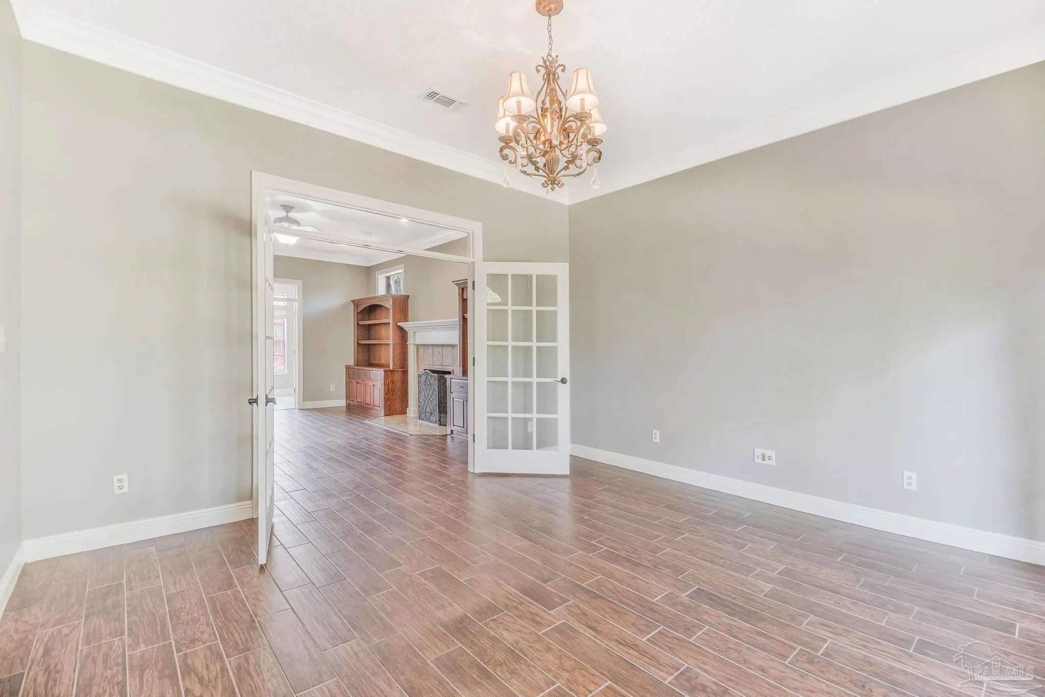 This beautiful Southern traditional home is ready for new owners to plant their roots. As you arrive, you’ll be welcomed by serene surroundings, mature trees, and charming covered front porches, perfect for enjoying any Florida weather. Step inside, an inviting foyer with high ceilings that lead into the spacious living room, featuring tile-look flooring, built-in bookcases, and a decorative fireplace. To the right of the foyer is a cozy den, and to the left, a formal dining room, setting the tone for the home’s impressive layout and charm. Just off the living room is a quiet sitting area, perfect for relaxing with a good book. The kitchen offers plenty of white cabinetry, granite countertops, travertine tile flooring, stainless steel appliances, a separate oven, and a breakfast nook, making it both functional and inviting for everyday living and entertaining. Down the hallway, you’ll find a full bedroom with brand-new carpet and a full bathroom, along with an oversized laundry room offering additional storage. The screened-in porch is ideal for entertaining, complete with tiled flooring, an outdoor bar/grilling area, and plenty of room in the backyard for a future pool. Also on the main level is a private guest suite with its own bathroom and access to an upstairs bonus room via a separate staircase, which can also serve as a fire escape. Upstairs, the primary suite is a true retreat, featuring access to the balcony, adding even more Southern charm. The ensuite bathroom offers double vanities, tile flooring, an oversized walk-in shower, a soaking tub, a water closet, and two large walk-in closets. An adjoining office space makes working from home a breeze. Two additional generously sized bedrooms are located upstairs, each with its own bathroom featuring a single vanity and a tub/shower combo. You’ll also find extra storage closets and a versatile bonus room with a mini-split system, perfect for a media room, gym, homeschool space, or hobby area.