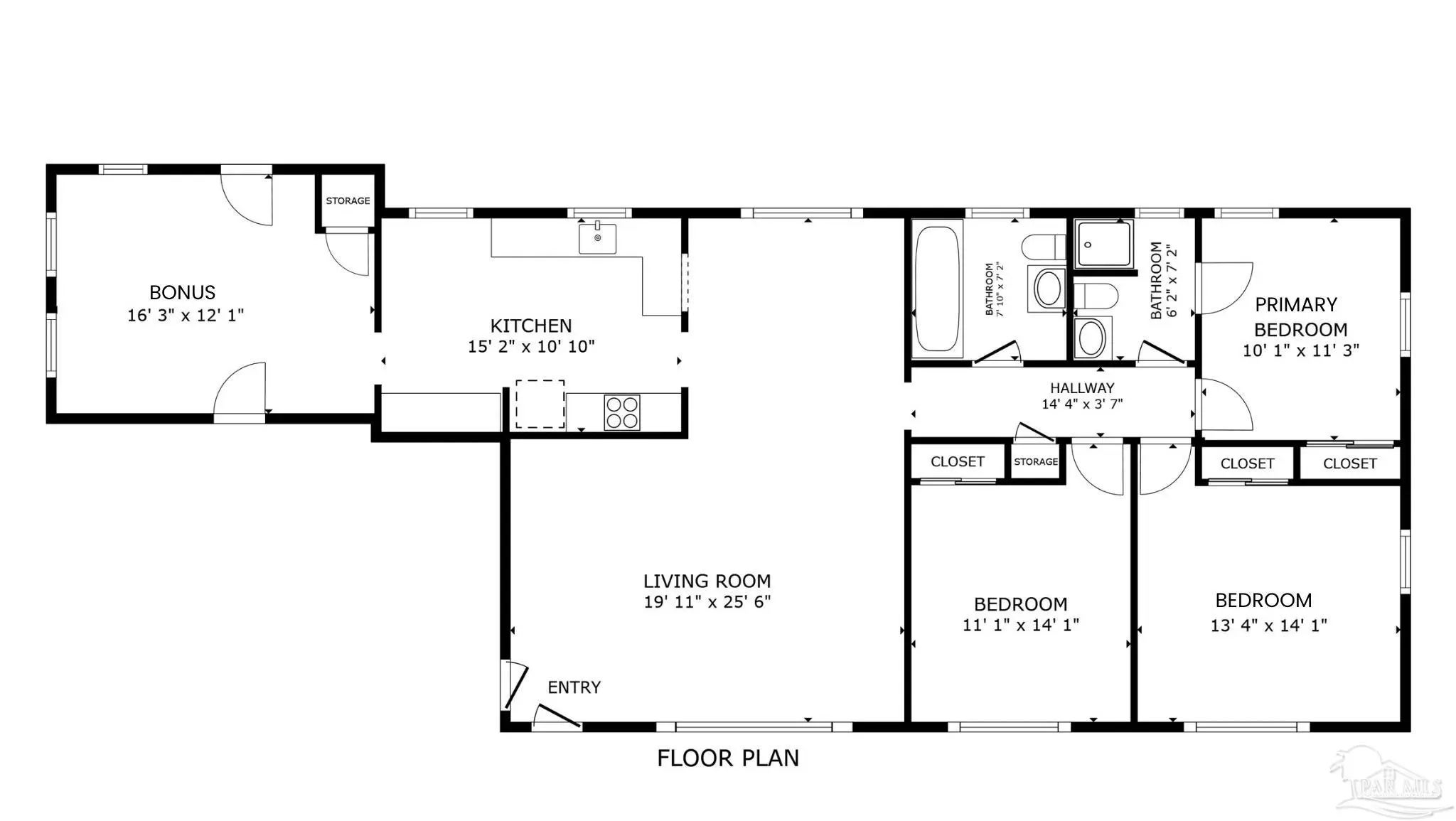 Welcome to 115 W Jordan Street, a classic brick home offering timeless character, functional space, and a location that keeps you connected to everything Pensacola has to offer. Set just minutes from downtown, this property blends everyday convenience with the charm of an established neighborhood filled with mature trees and inviting streets. Inside, real hardwood floors run throughout the main living areas, bringing warmth and continuity to the home. The spacious living room is filled with natural light and offers flexibility for both relaxing and entertaining. Just beyond, the kitchen provides generous cabinet and countertop space, stainless appliances, and a gas stove, creating a layout that works well for daily living and hosting. The layout offers privacy, with a primary bedroom that includes its own full bathroom, while additional bedrooms are positioned along the hallway. A separate bonus room adds even more versatility and can easily function as a home office, second living area, or creative space. Step outside to a large fenced backyard surrounded by mature trees, offering shade, space to spread out, and room to enjoy outdoor living. A covered back porch extends the usable space and creates a comfortable place to unwind. This home also features an oversized two-car garage and additional parking, providing both convenience and storage. With its durable metal roof, classic brick construction, hardwood floors, flexible layout, and proximity to downtown Pensacola, this property offers a unique combination of character, space, and location. Schedule your showing today.