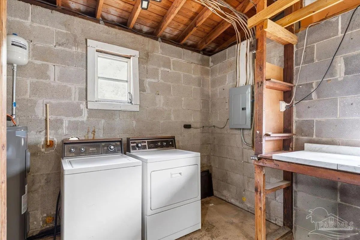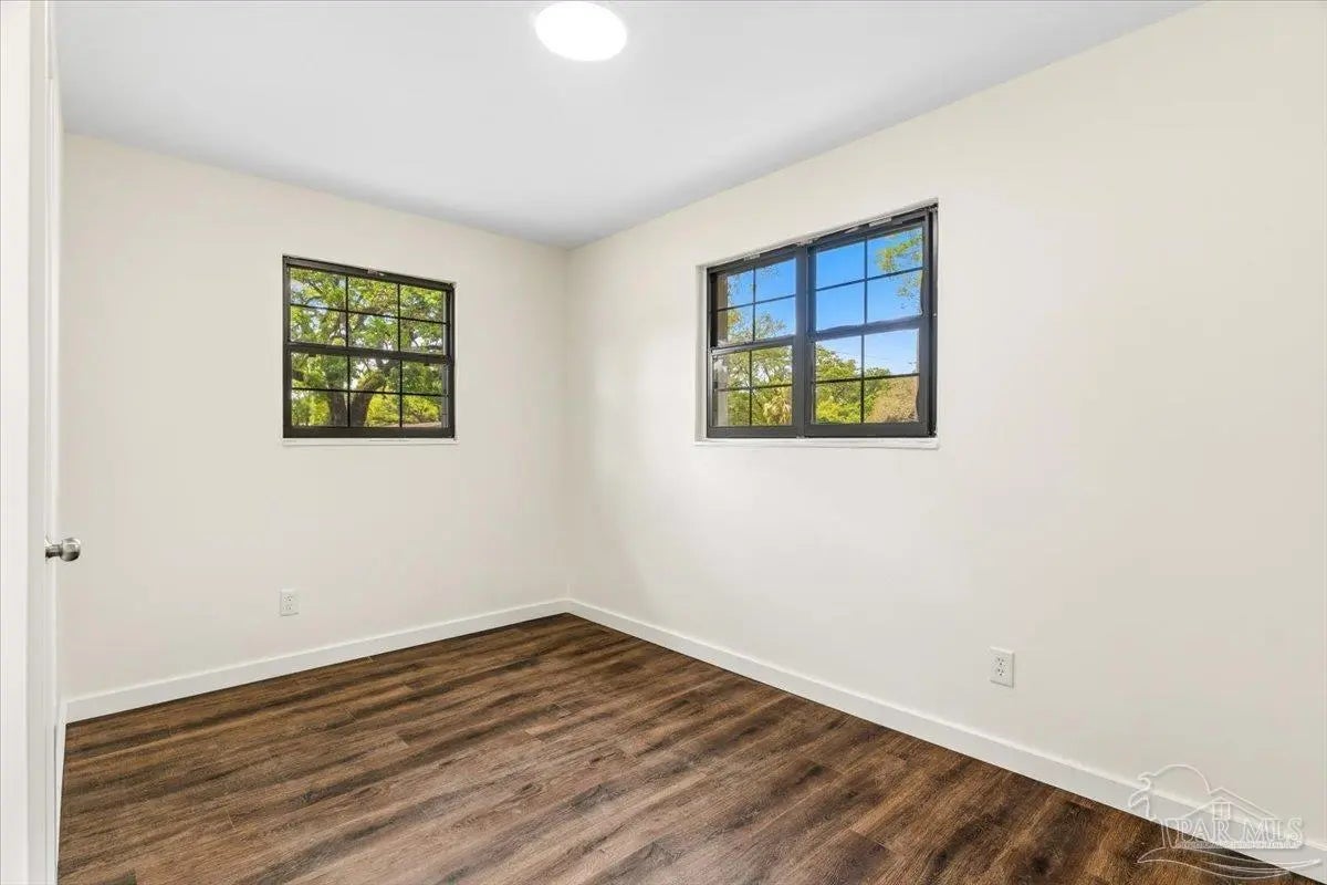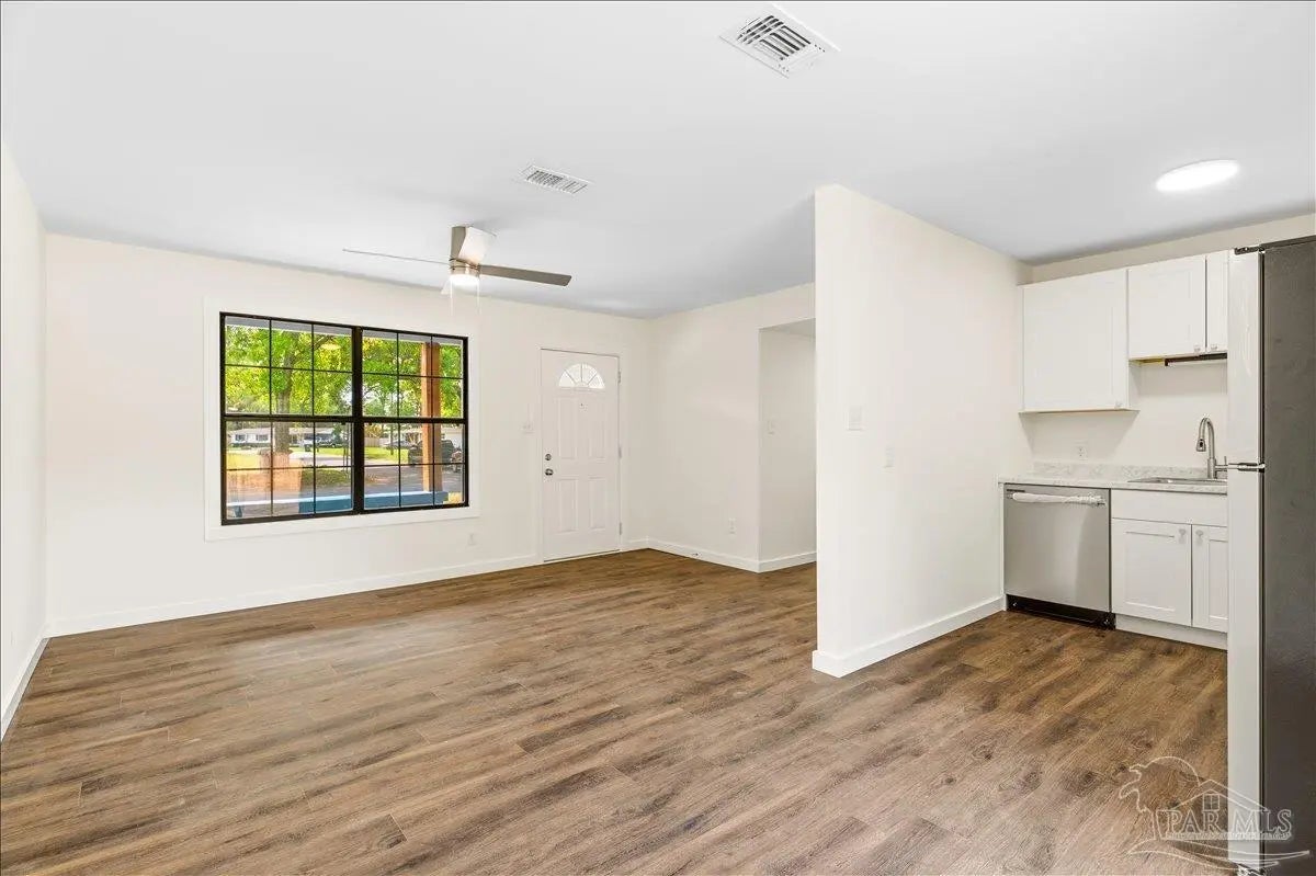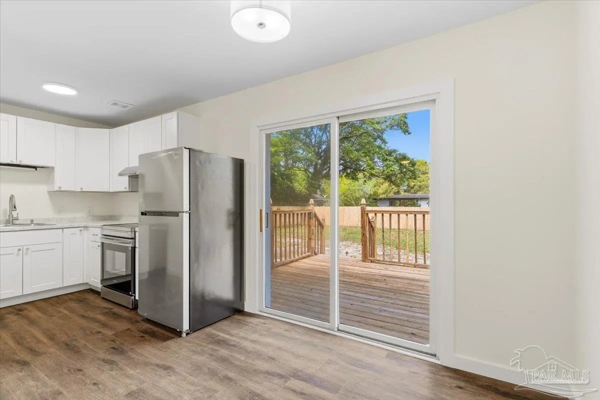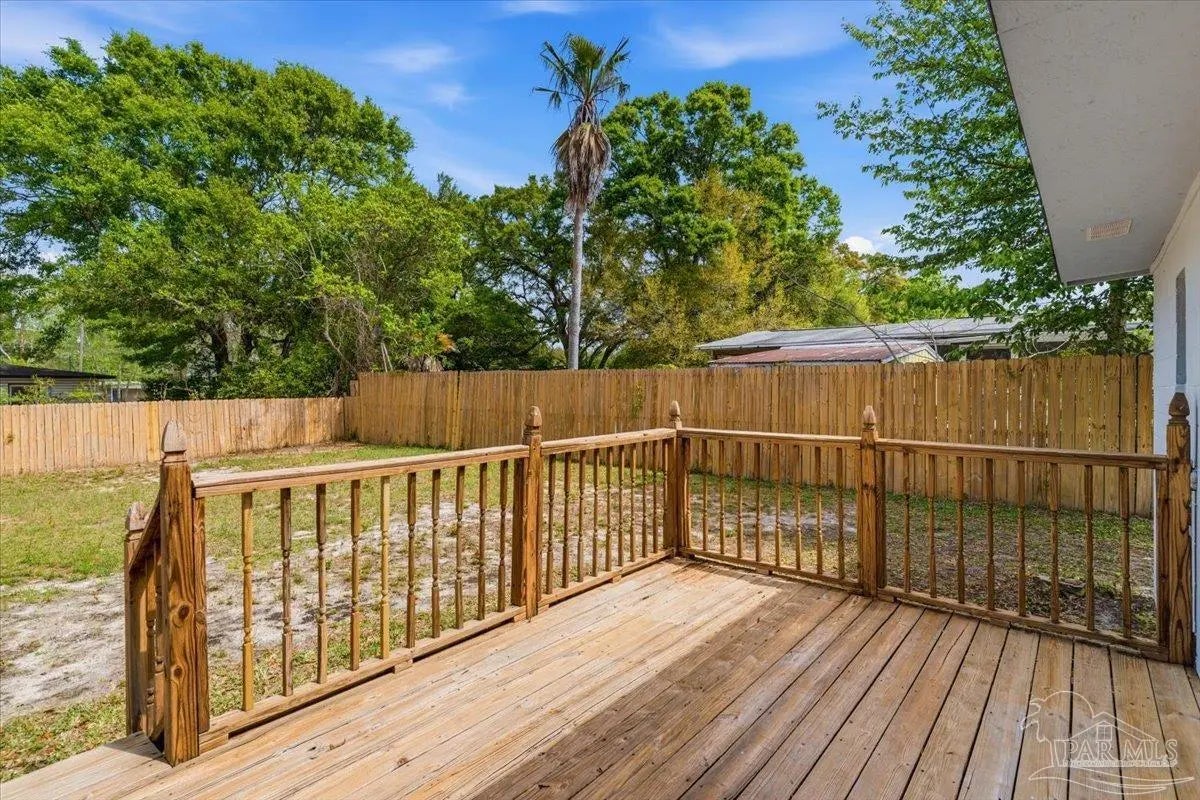Tucked beneath mature naval oaks, this fully renovated 3-bedroom, 1-bath block home stands out with its coastal “surf cottage” vibe and clean, modern interior. Built in 1959 and completely redone, it offers solid construction with a fresh, move-in ready feel. The curb appeal is immediate, from the bold exterior to the shaded lot, and inside you’ll find an open living space with updated flooring, fresh paint, and great natural light. The layout is simple and functional, ideal for a single buyer, first-time homeowner, or anyone looking for low-maintenance living without sacrificing style. The kitchen has been updated with new cabinetry, countertops, and stainless appliances, with plenty of storage and workspace. Bedrooms are comfortably sized, and the bathroom has been refreshed with clean, modern finishes. Out back, a new deck overlooks a large, fully fenced yard with space to relax, entertain, or let pets roam. The setting feels private and quiet, especially under the canopy of mature trees. Additional features include complete rewire, new roof, new water heater, newer windows, a one-car garage, durable block construction, and a full renovation that minimizes immediate maintenance concerns. At this price point, it’s hard to find something this clean, updated, and move-in ready in Pensacola. If you’ve been waiting for something simple, affordable, and done right, this is it.
