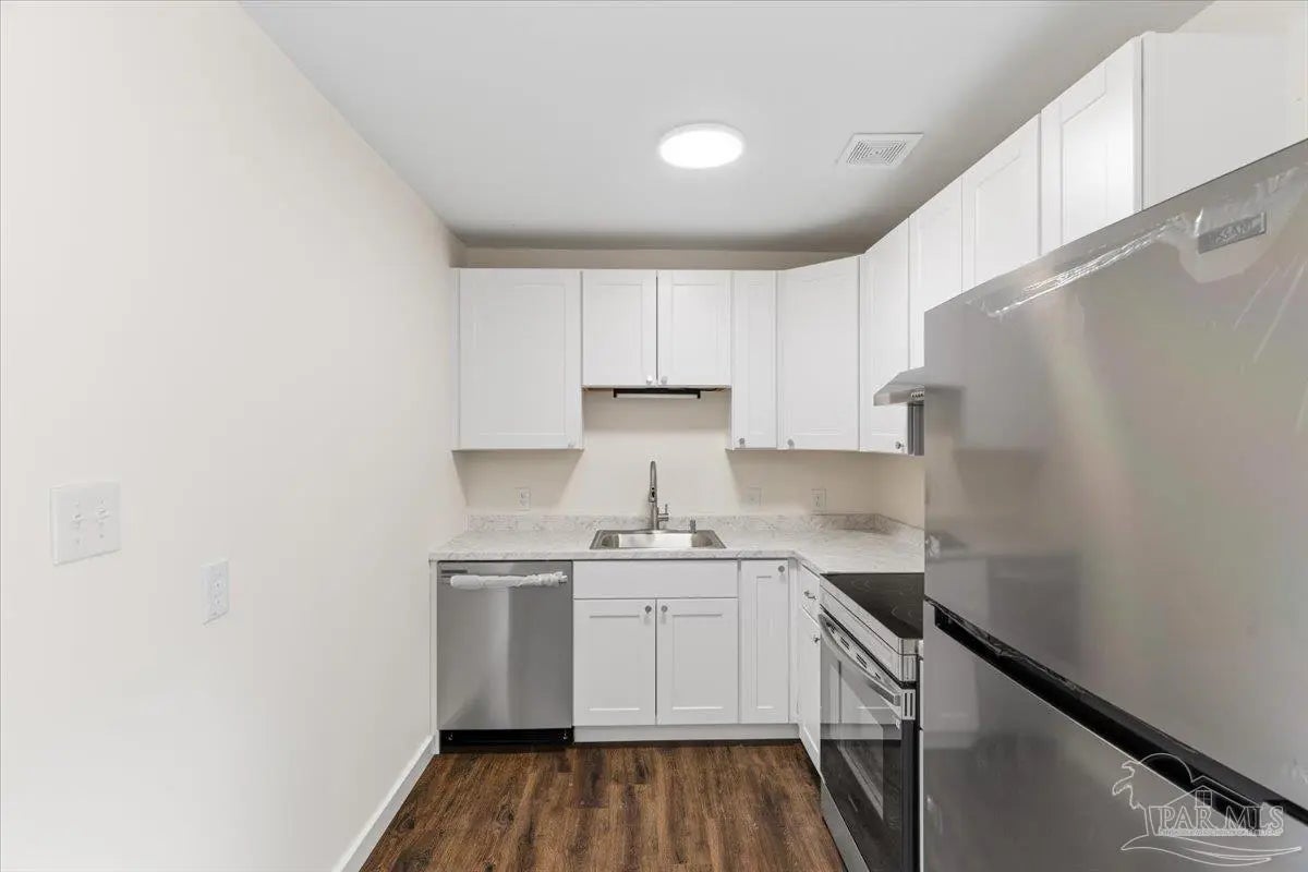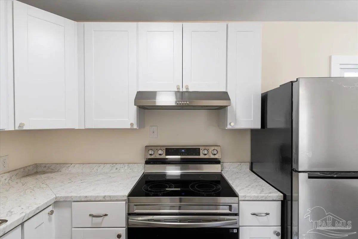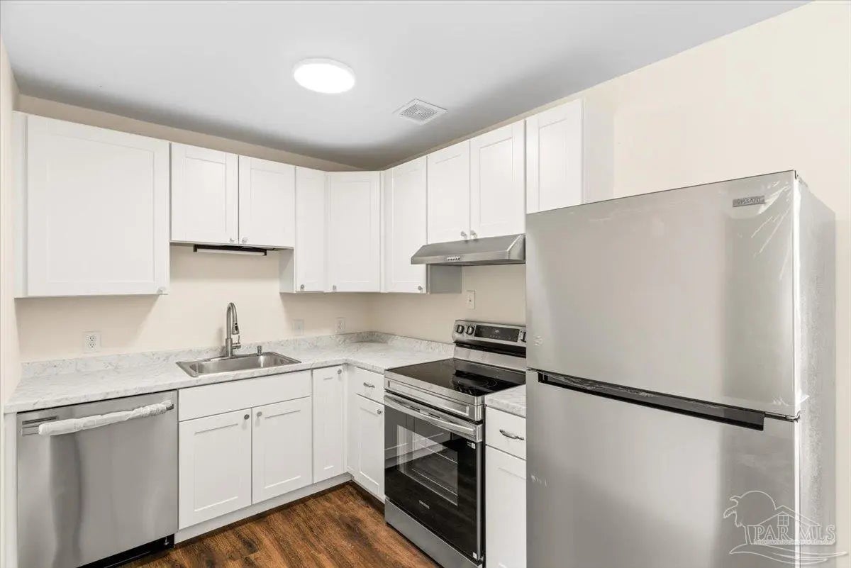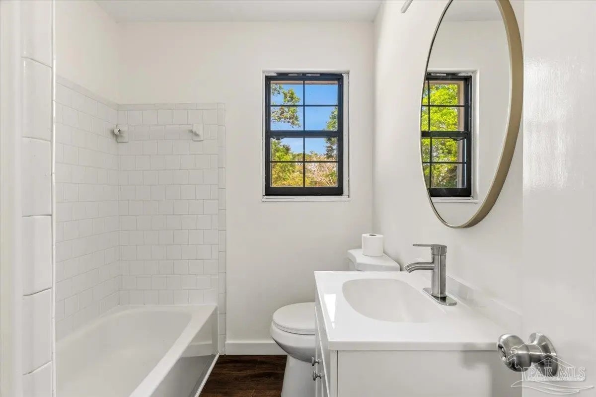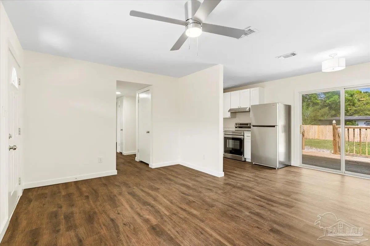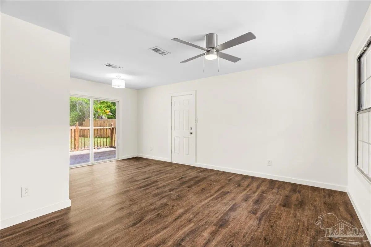 Tucked beneath mature naval oaks, this fully renovated 3-bedroom, 1-bath block home stands out with its coastal “surf cottage” vibe and clean, modern interior. Built in 1959 and completely redone, it offers solid construction with a fresh, move-in ready feel. The curb appeal is immediate, from the bold exterior to the shaded lot, and inside you’ll find an open living space with updated flooring, fresh paint, and great natural light. The layout is simple and functional, ideal for a single buyer, first-time homeowner, or anyone looking for low-maintenance living without sacrificing style. The kitchen has been updated with new cabinetry, countertops, and stainless appliances, with plenty of storage and workspace. Bedrooms are comfortably sized, and the bathroom has been refreshed with clean, modern finishes. Out back, a new deck overlooks a large, fully fenced yard with space to relax, entertain, or let pets roam. The setting feels private and quiet, especially under the canopy of mature trees. Additional features include complete rewire, new roof, new water heater, newer windows, a one-car garage, durable block construction, and a full renovation that minimizes immediate maintenance concerns. At this price point, it’s hard to find something this clean, updated, and move-in ready in Pensacola. If you’ve been waiting for something simple, affordable, and done right, this is it.